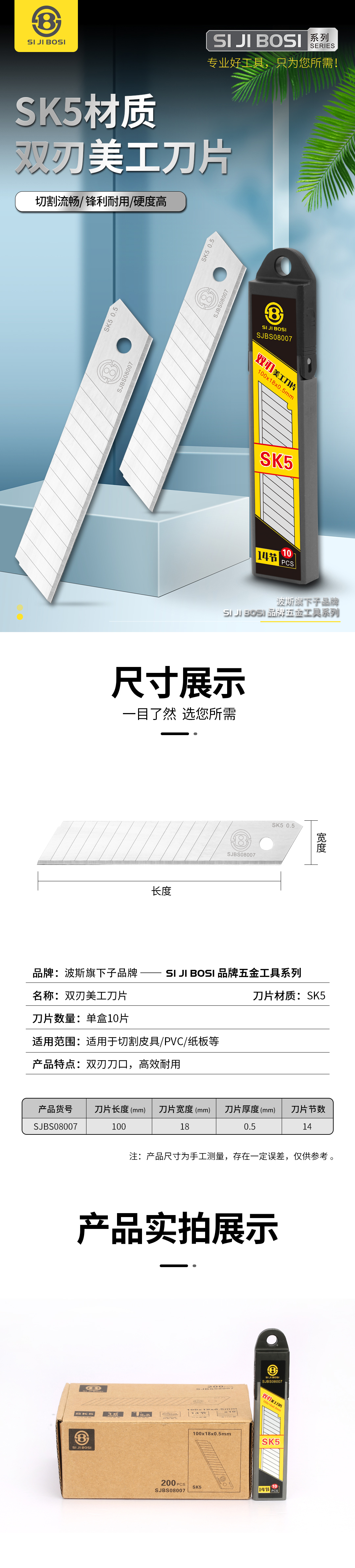 波斯 双刃美工刀刀片 100*18*0.5mm 14节 SJBS08007