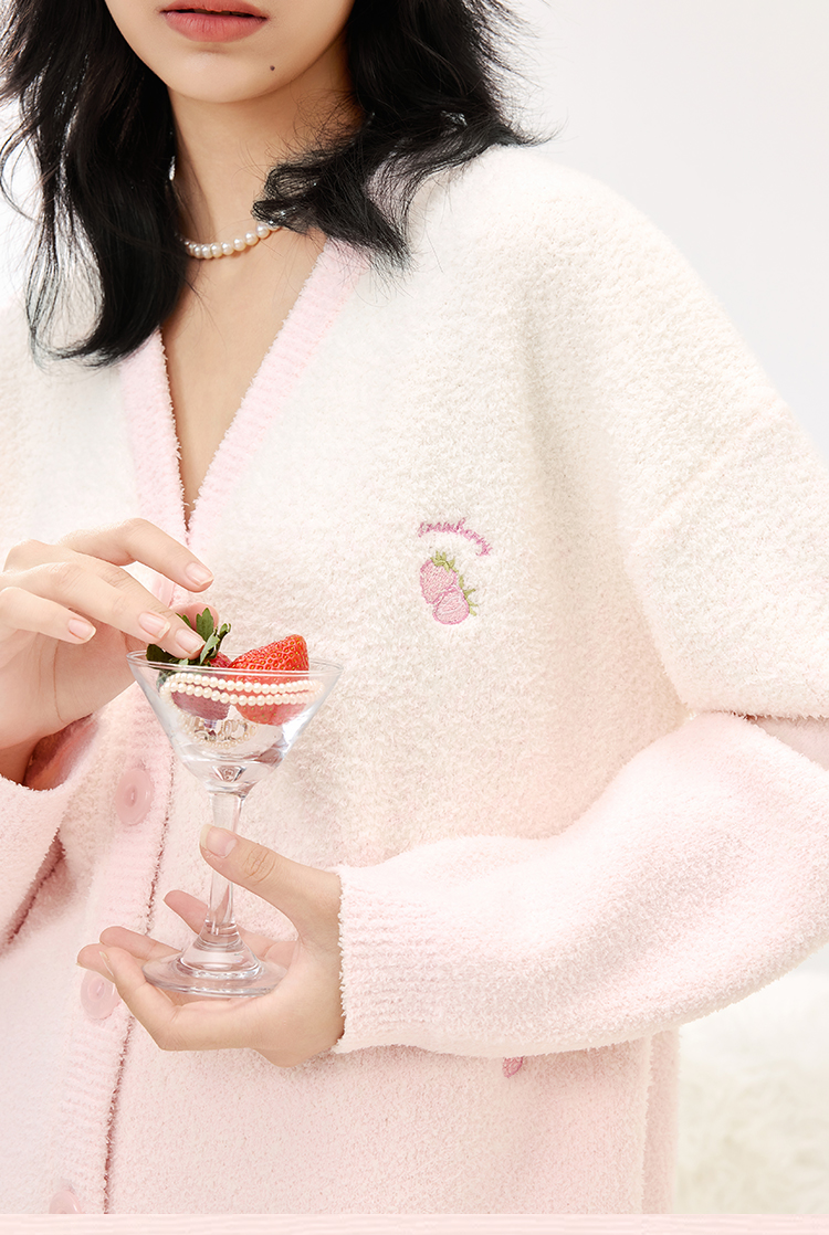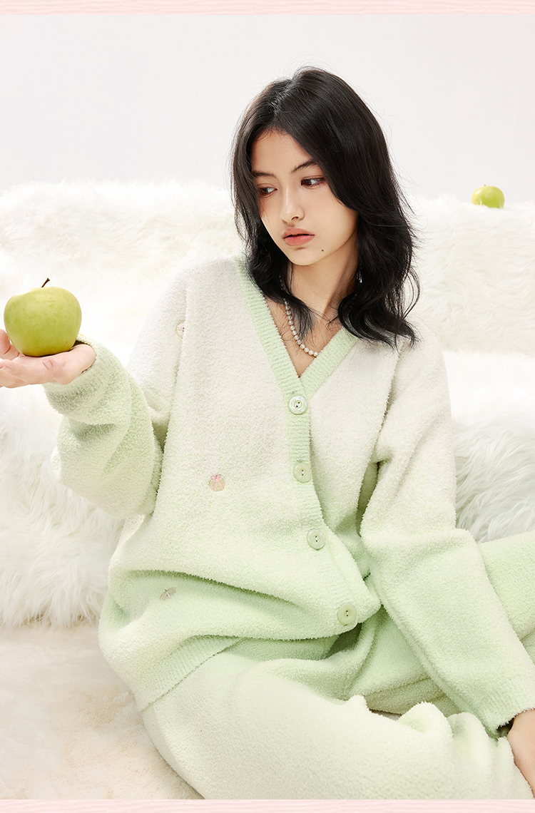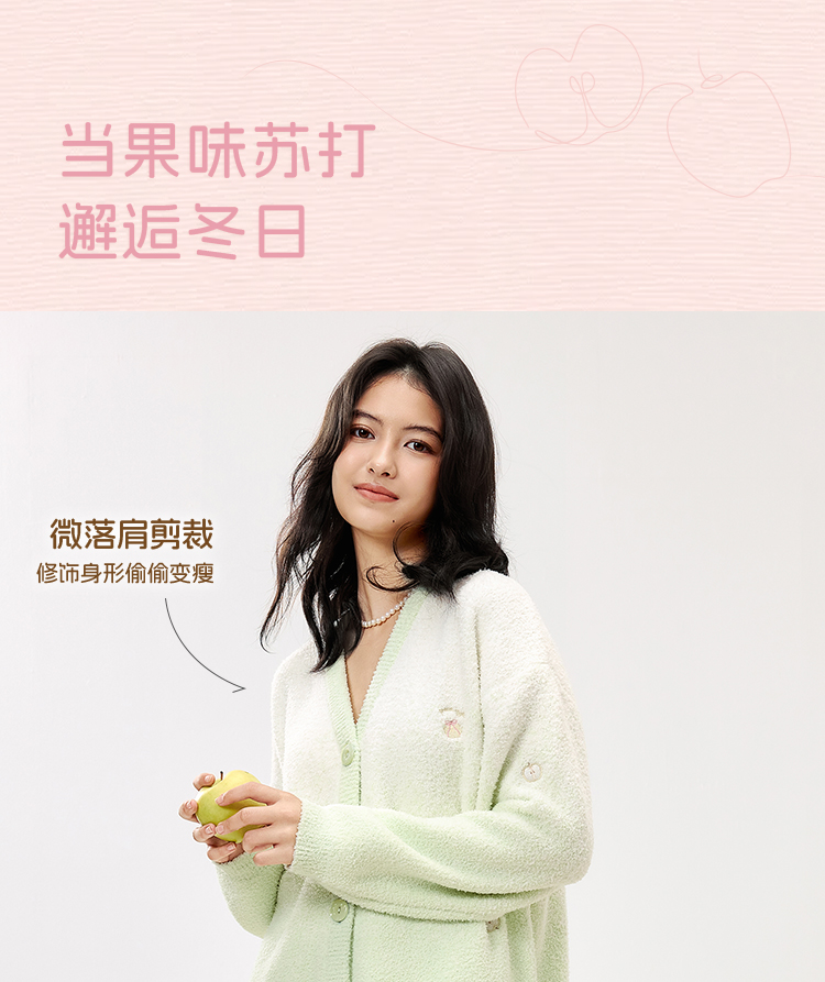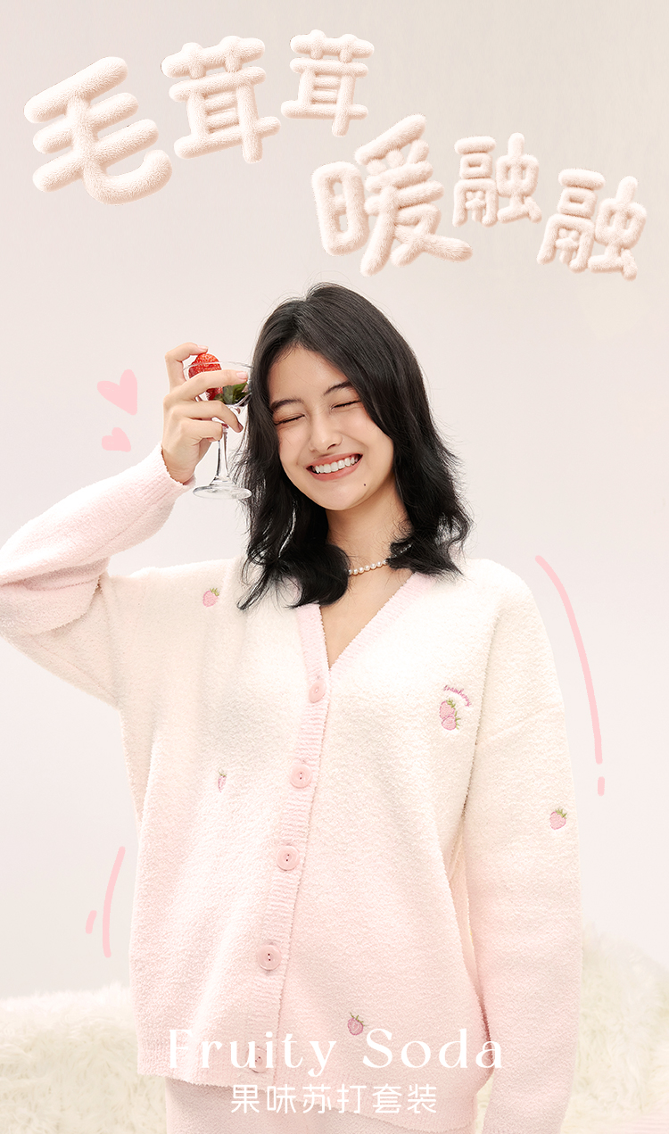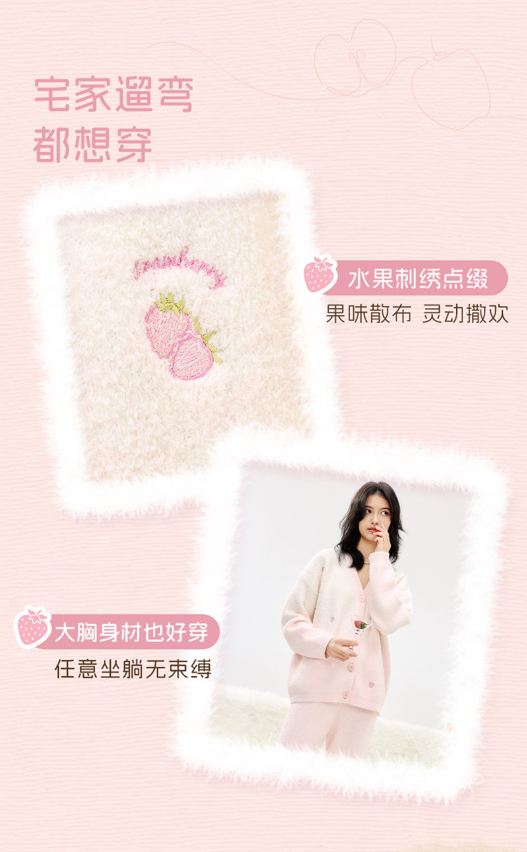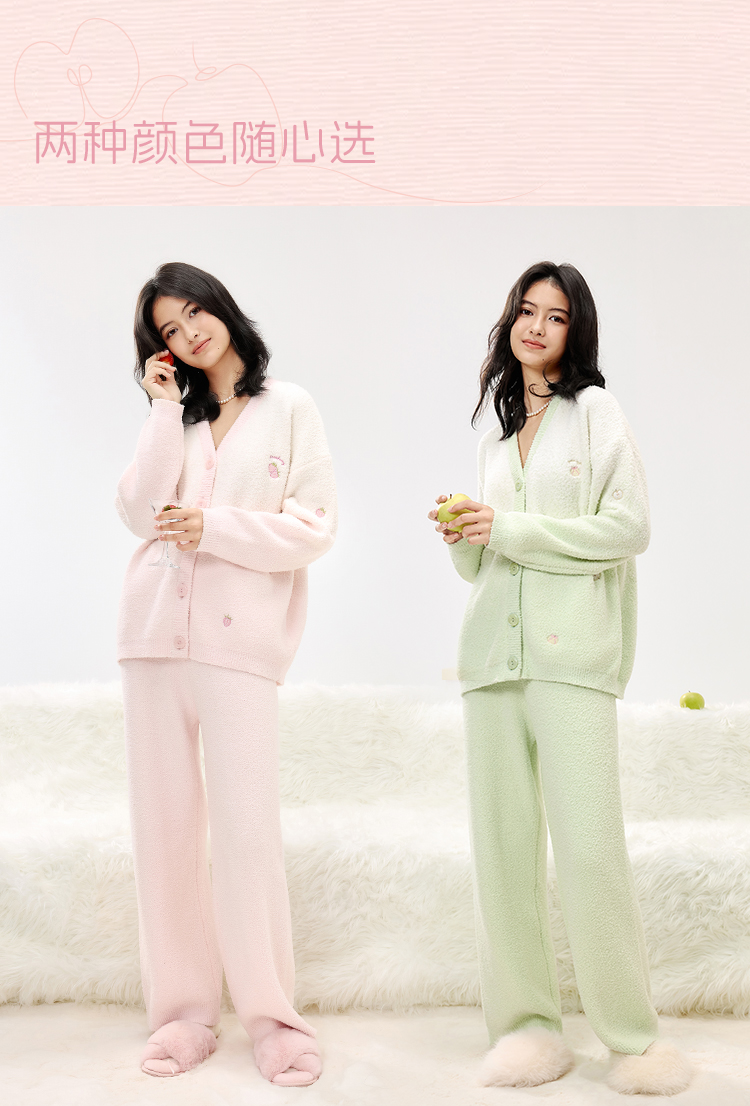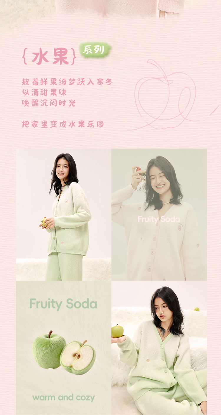 奶糖派水果系列果味苏打开襟睡衣可爱毛绒保暖可外穿秋冬家居服女