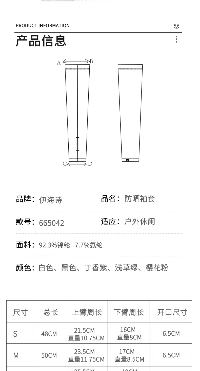 EX2伊海诗夏新高弹护臂防晒袖套户外运动骑行钓鱼袖套男女665042