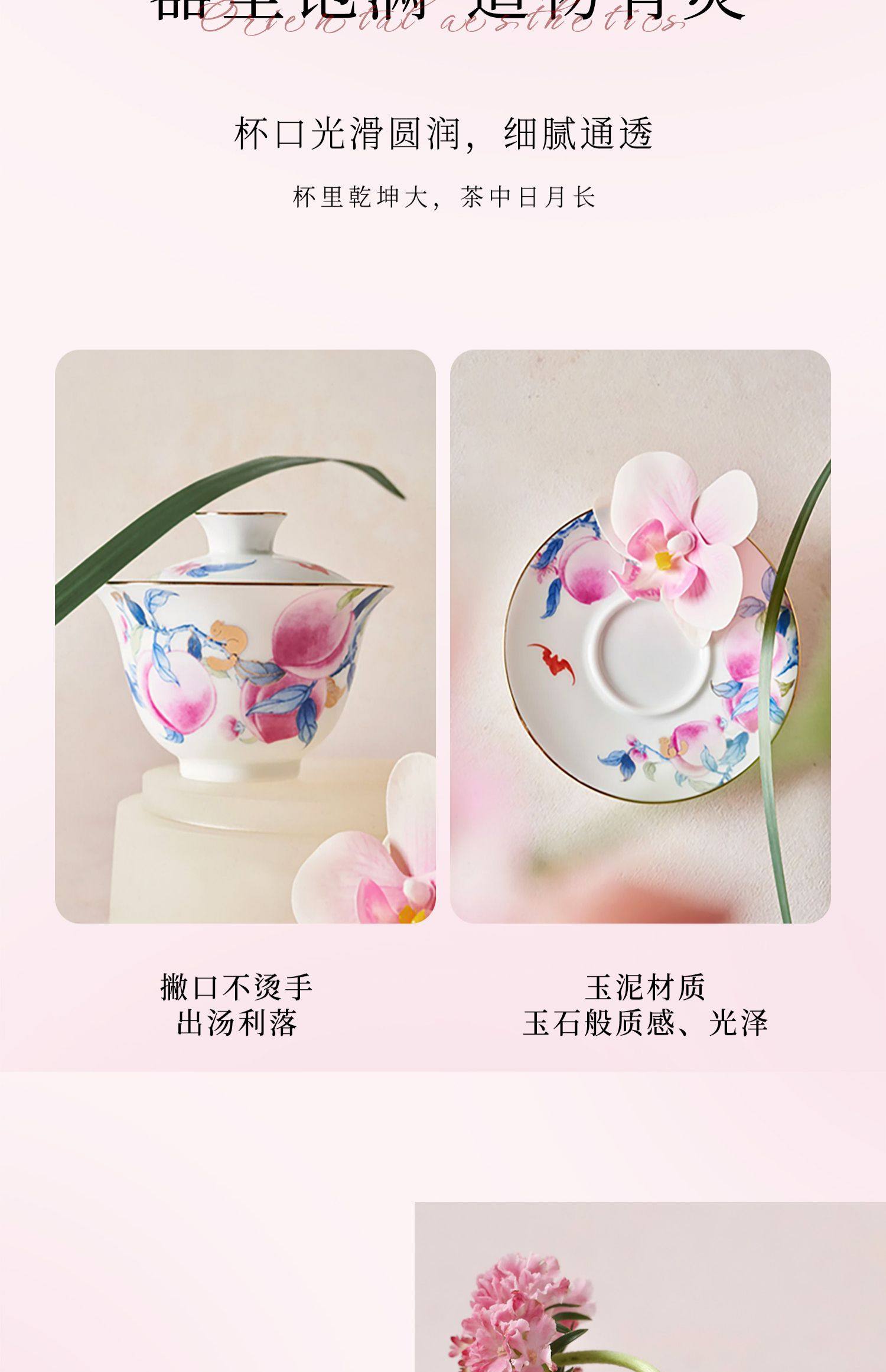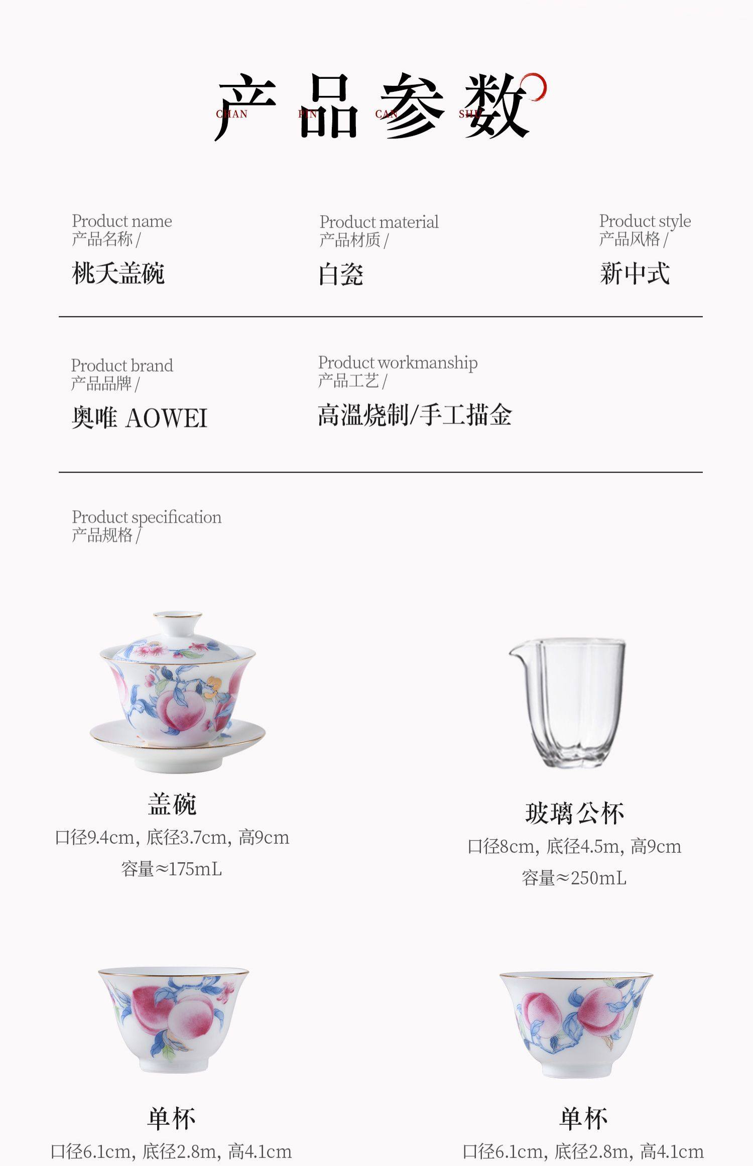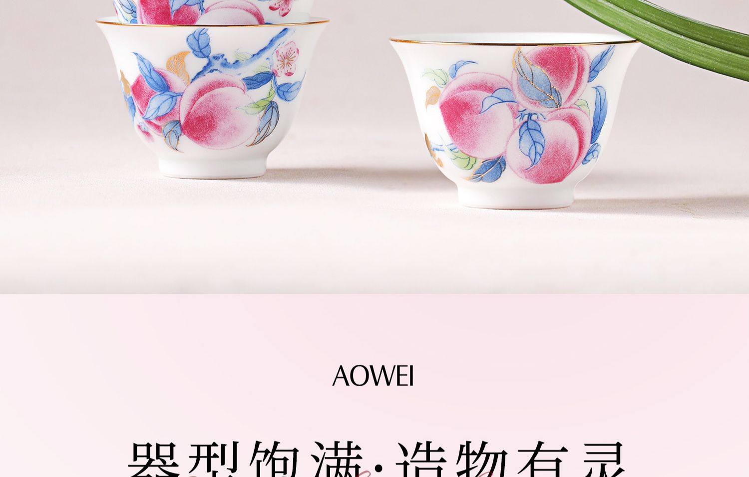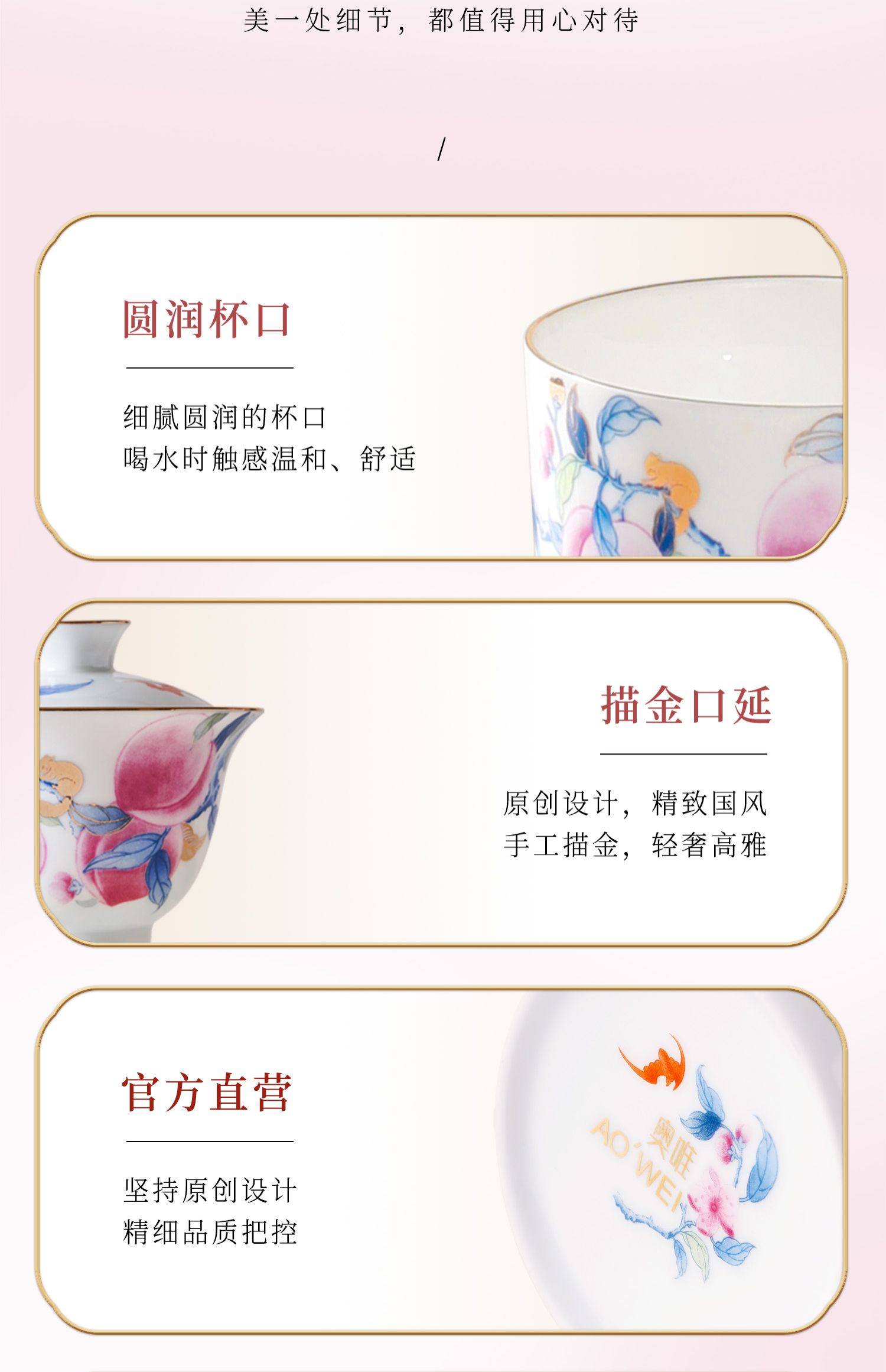 【桃之夭夭】景德镇礼物 奥唯 桃夭茶杯套装公道杯盖碗组合家用客厅泡茶喝茶高档礼盒