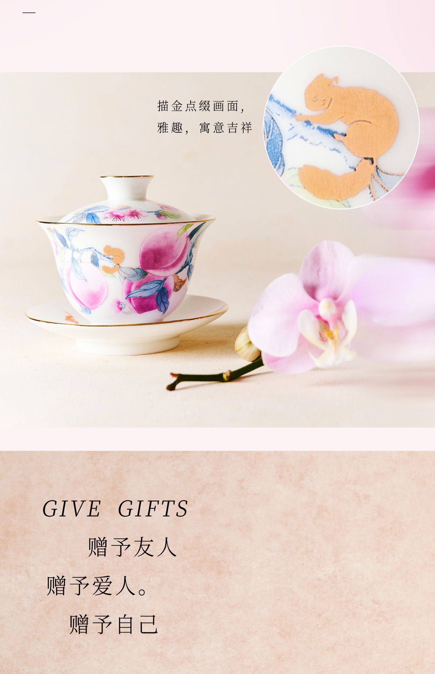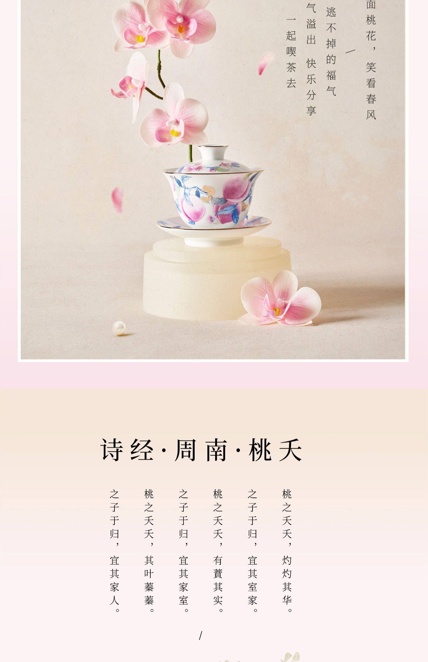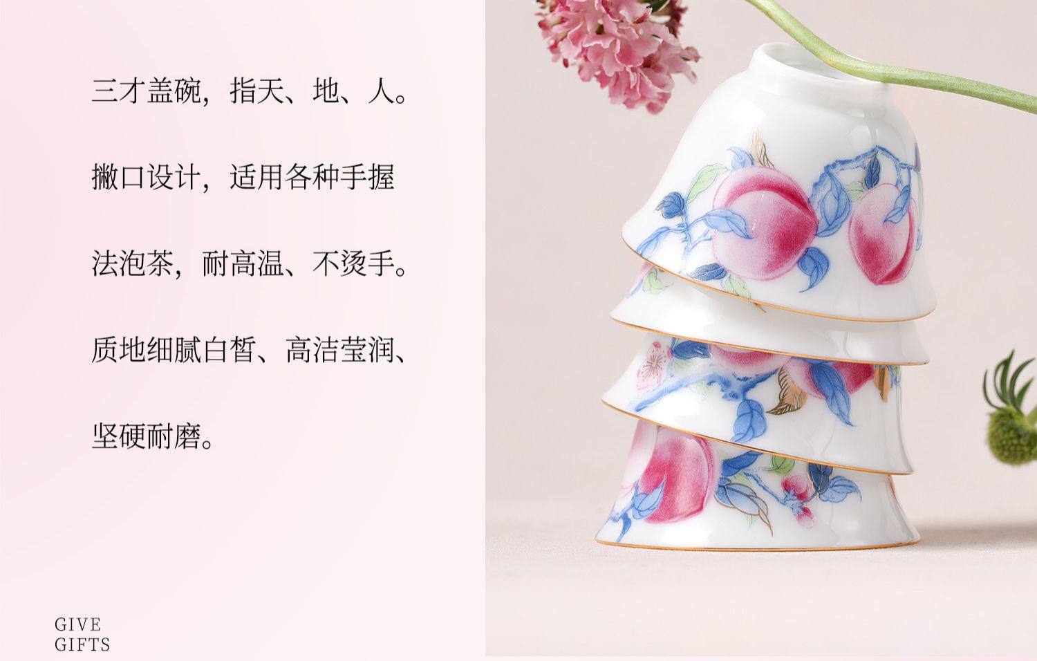 【桃之夭夭】景德镇礼物 奥唯 桃夭茶杯套装公道杯盖碗组合家用客厅泡茶喝茶高档礼盒