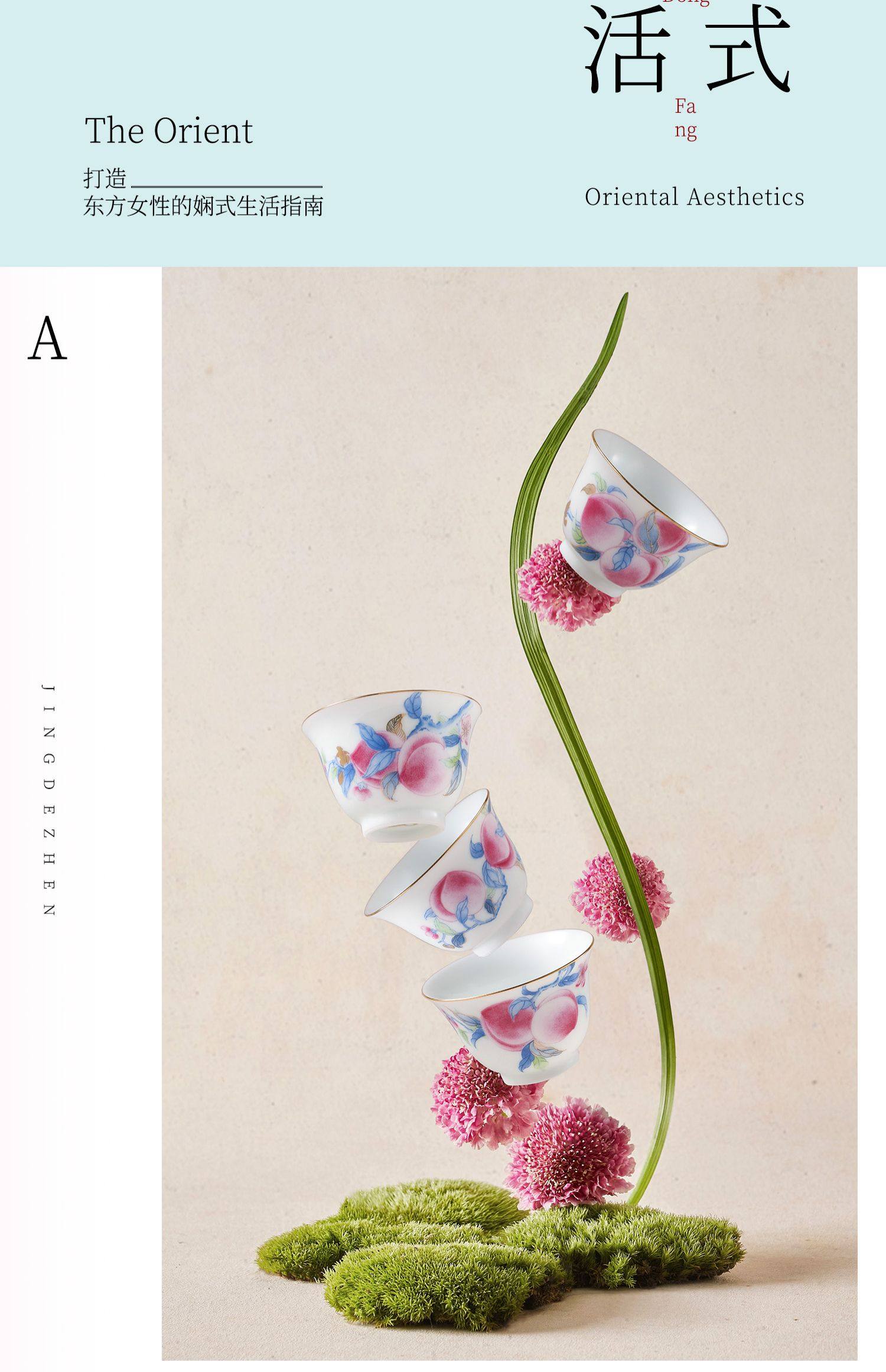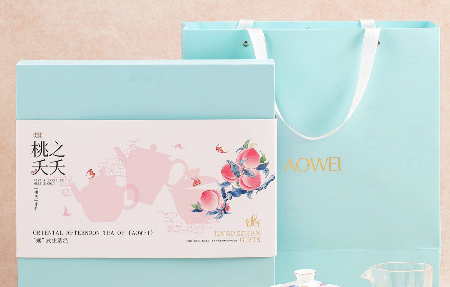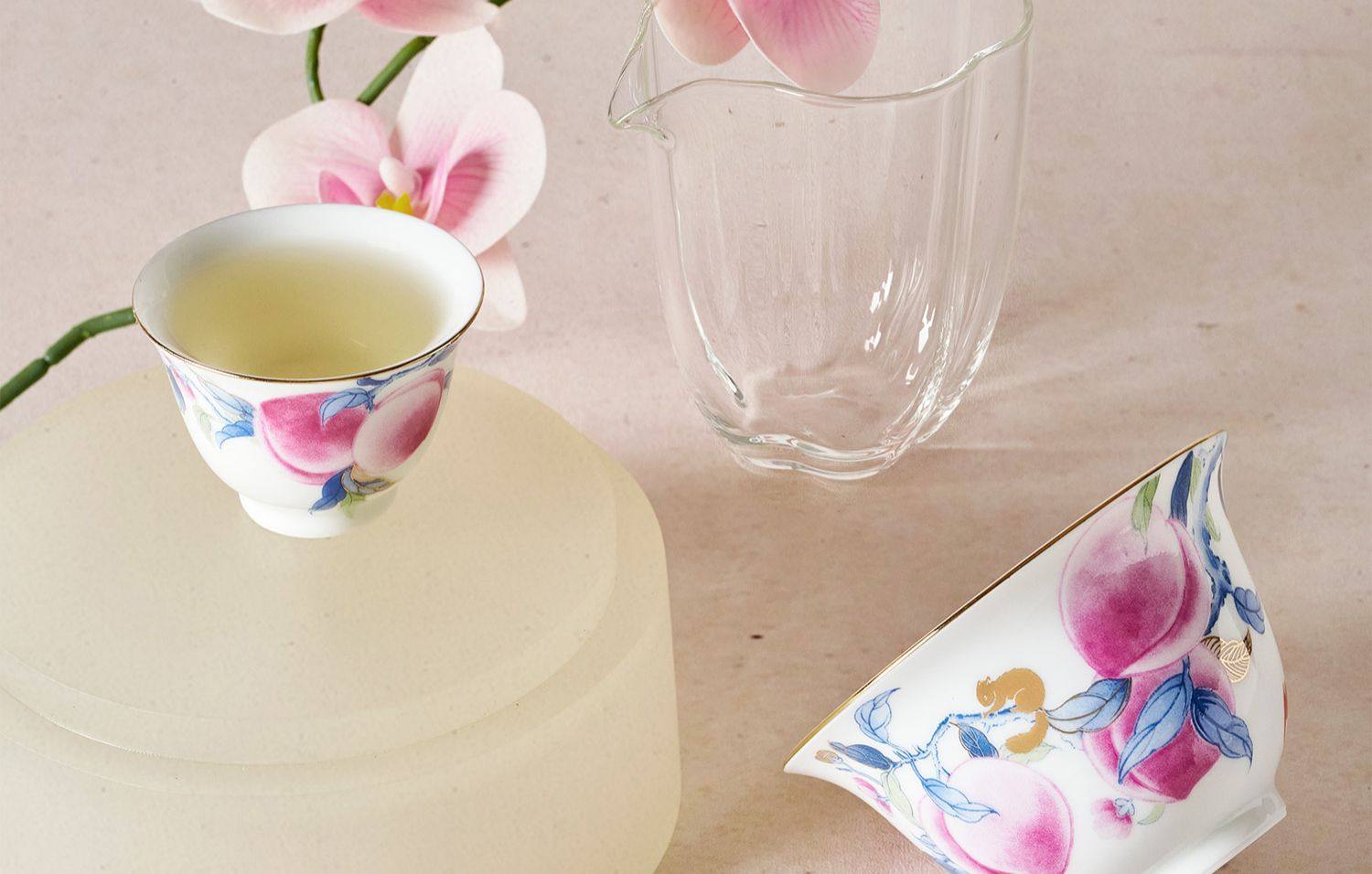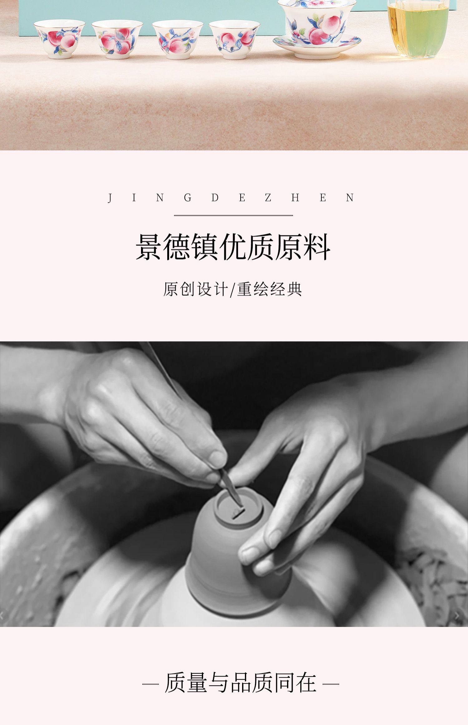 【桃之夭夭】景德镇礼物 奥唯 桃夭茶杯套装公道杯盖碗组合家用客厅泡茶喝茶高档礼盒