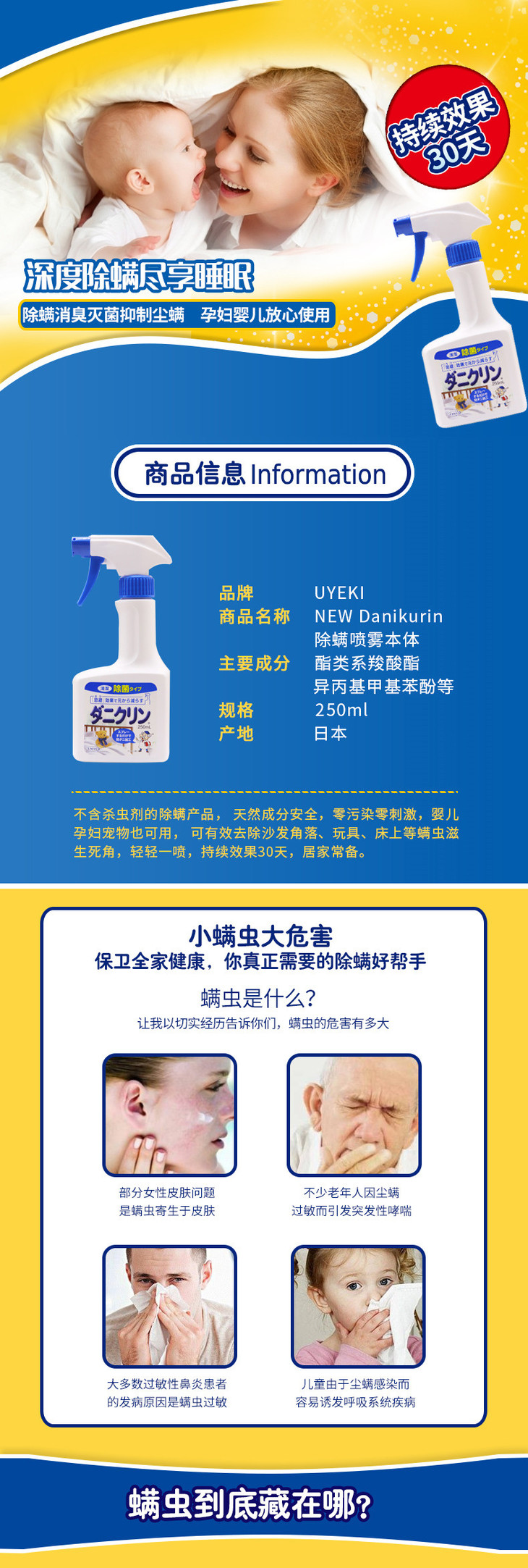 日本 UYEKI 双效除螨虫喷雾剂 250ml 防螨抑菌