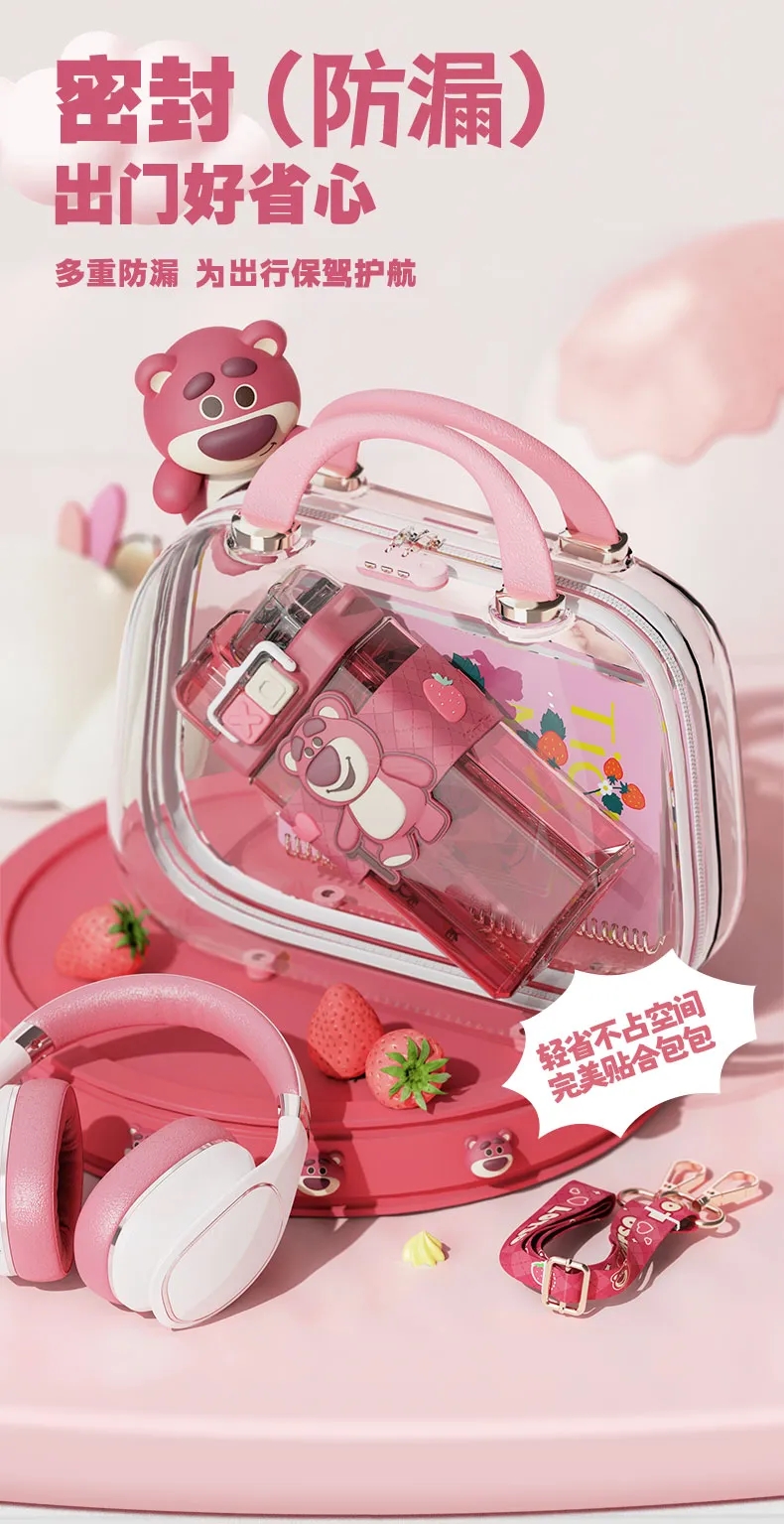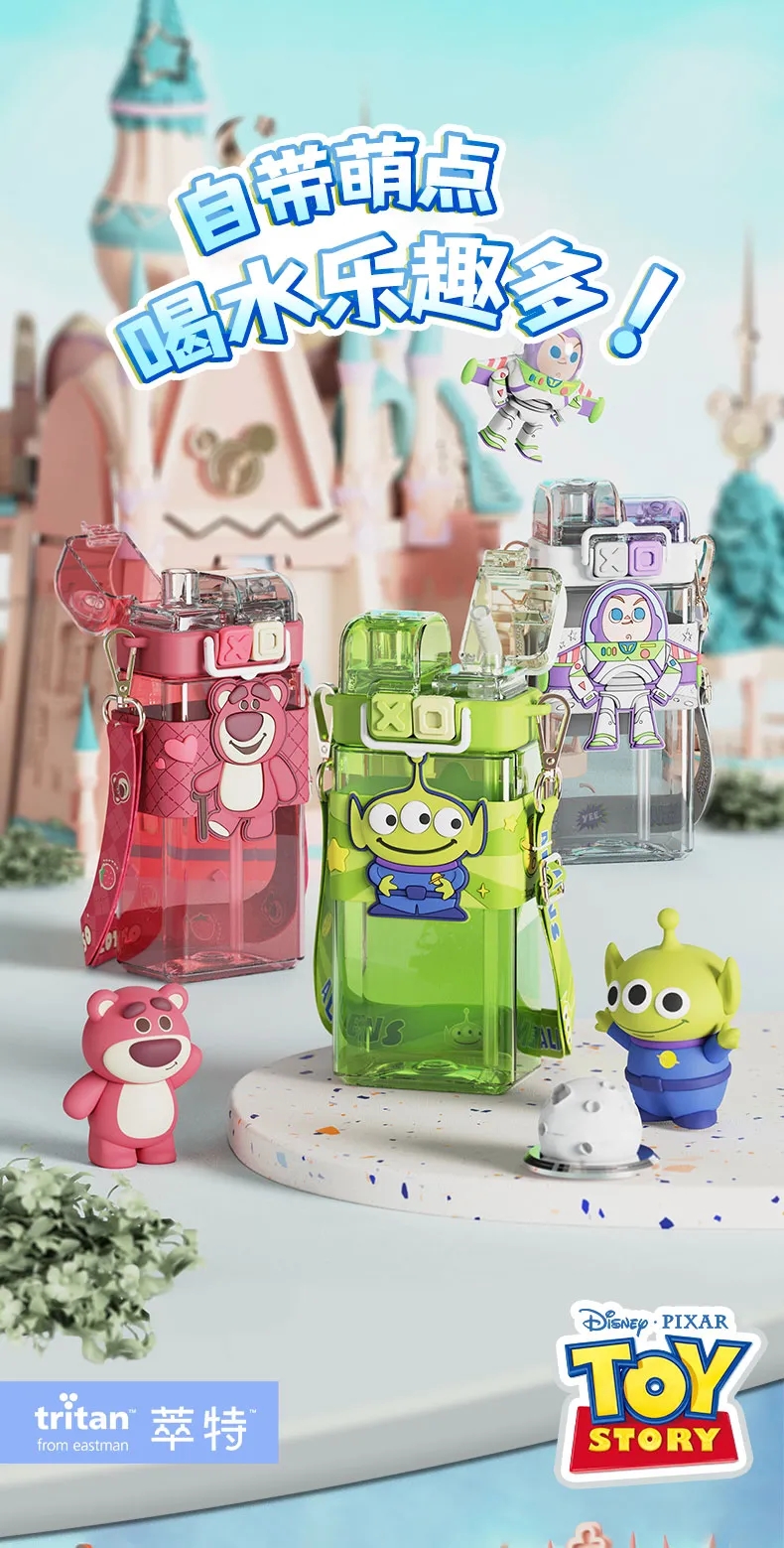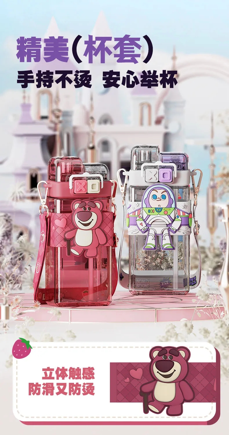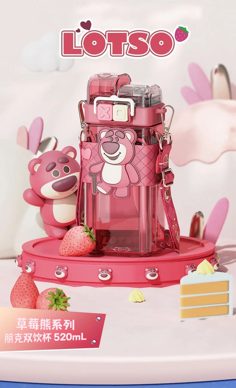艾可思迪士尼tritan儿童水杯男女孩夏天上学生专用吸管杯可爱草莓熊双饮杯子520ml【包邮直发】