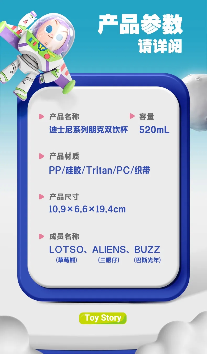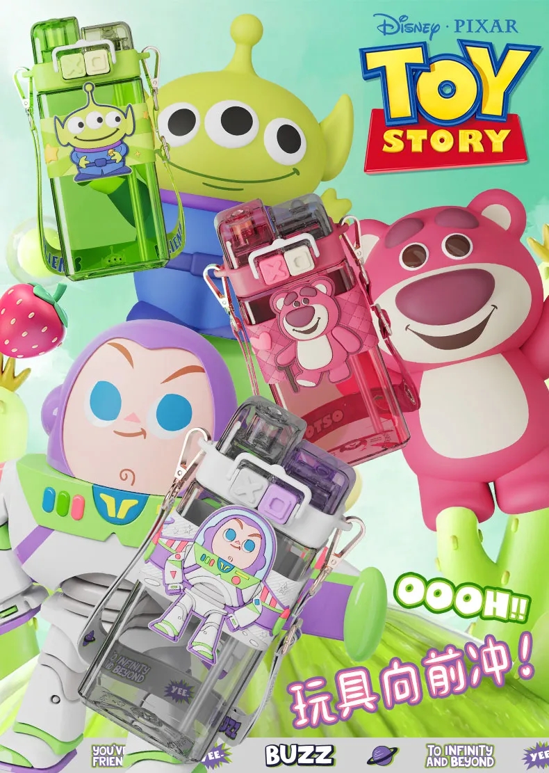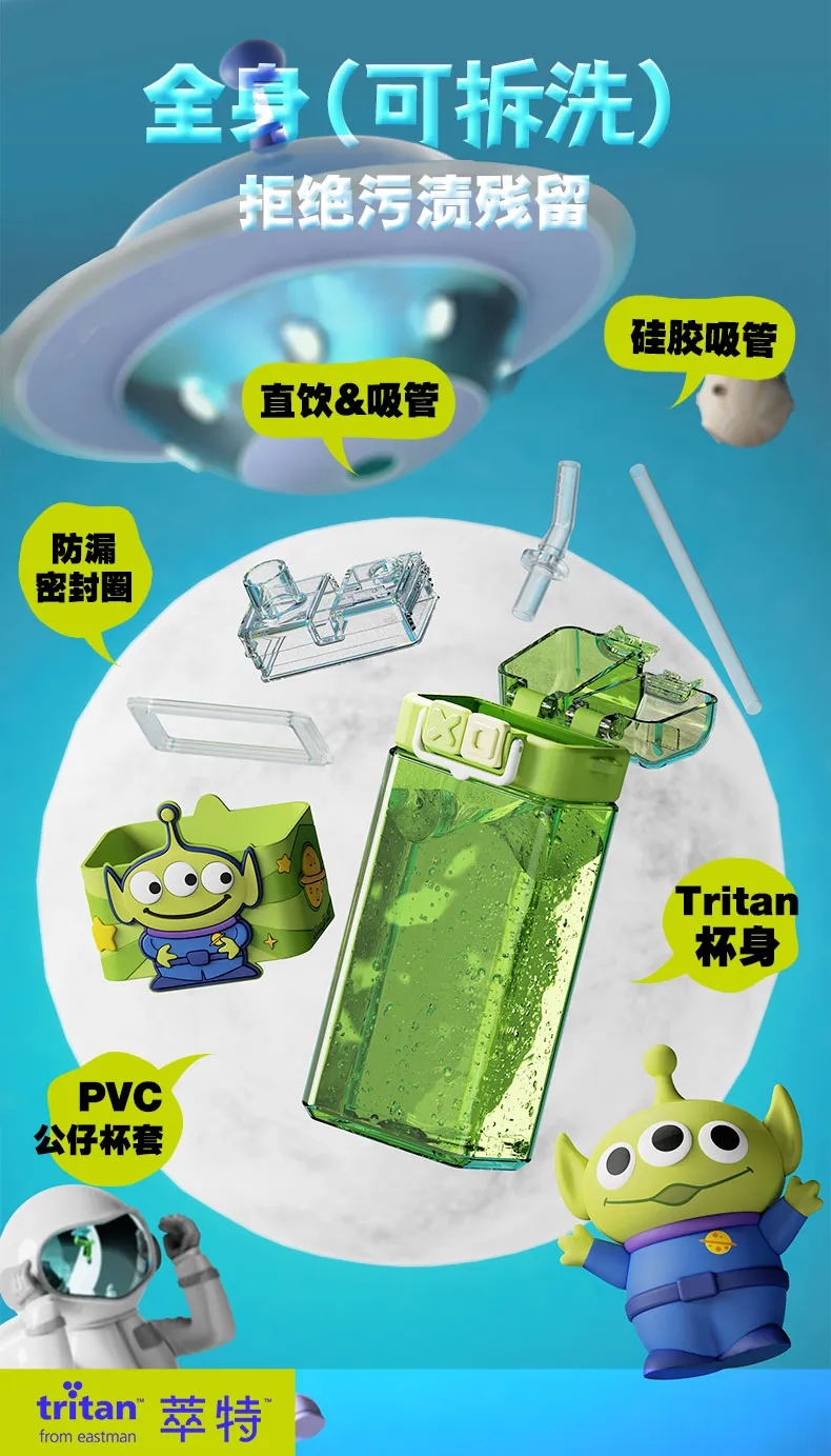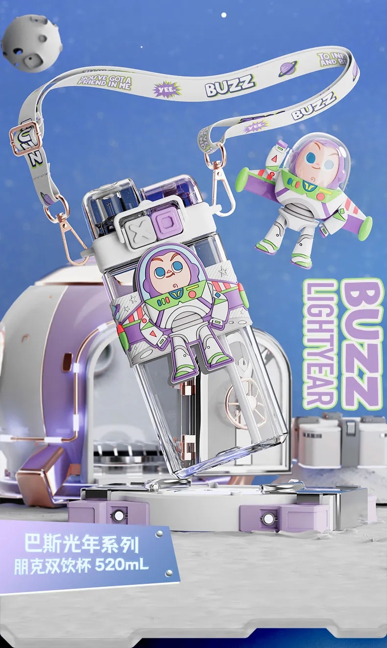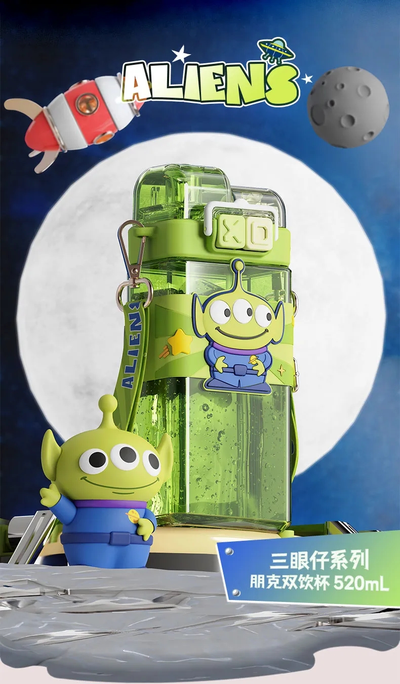 艾可思迪士尼tritan儿童水杯男女孩夏天上学生专用吸管杯可爱草莓熊双饮杯子520ml【包邮直发】