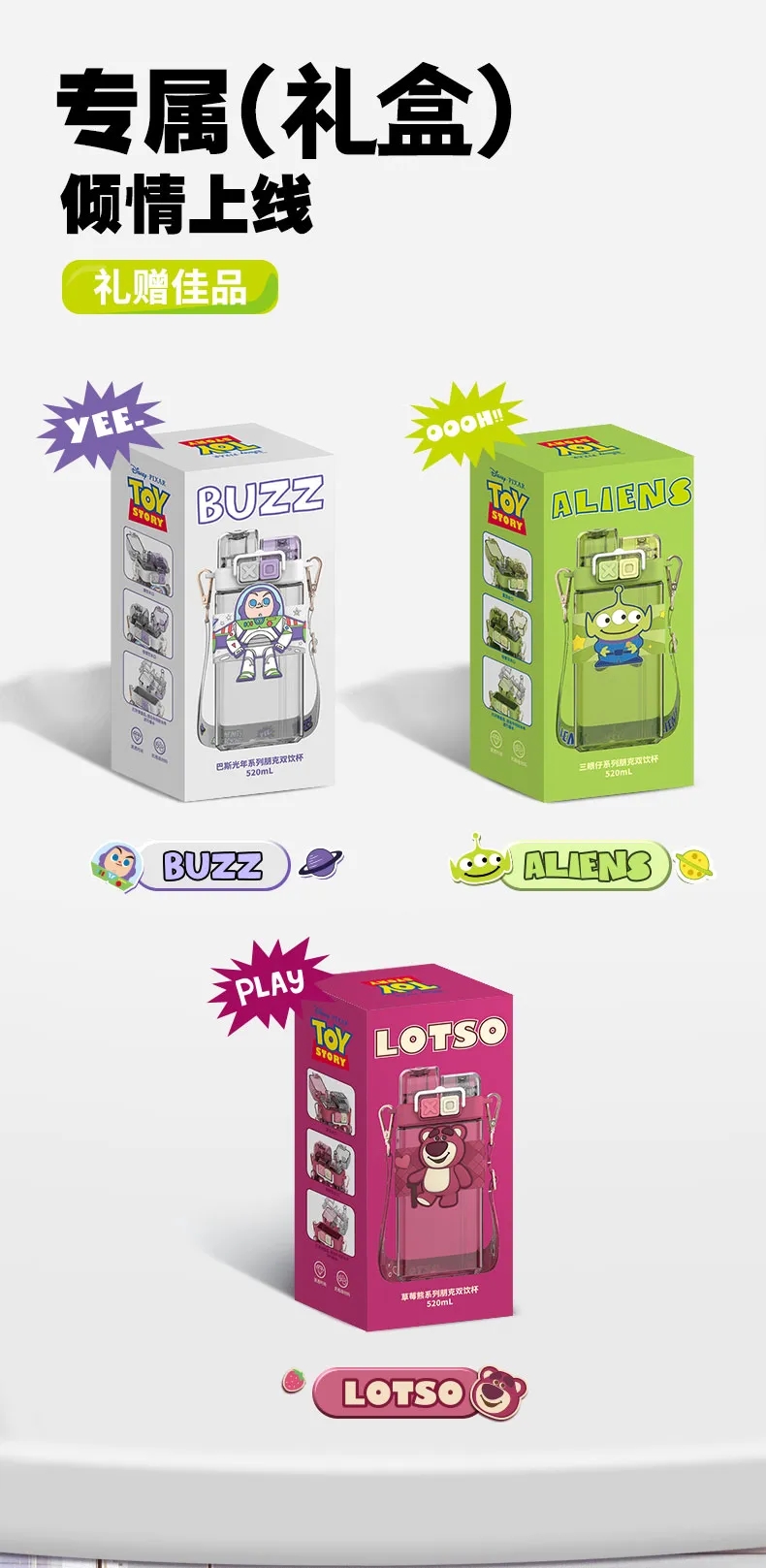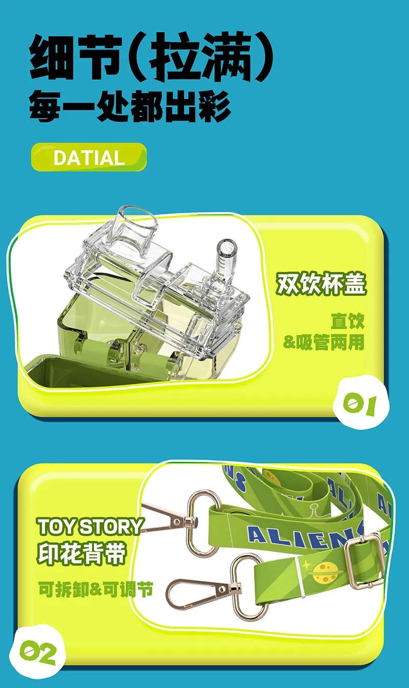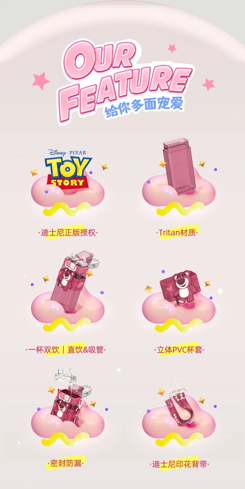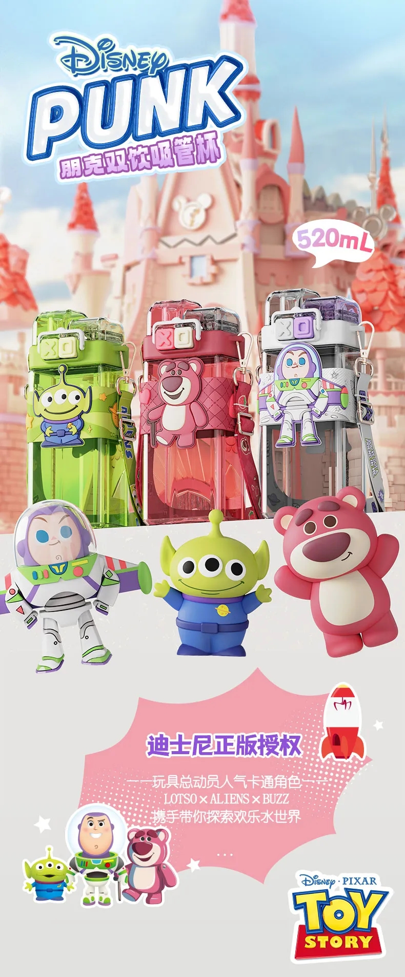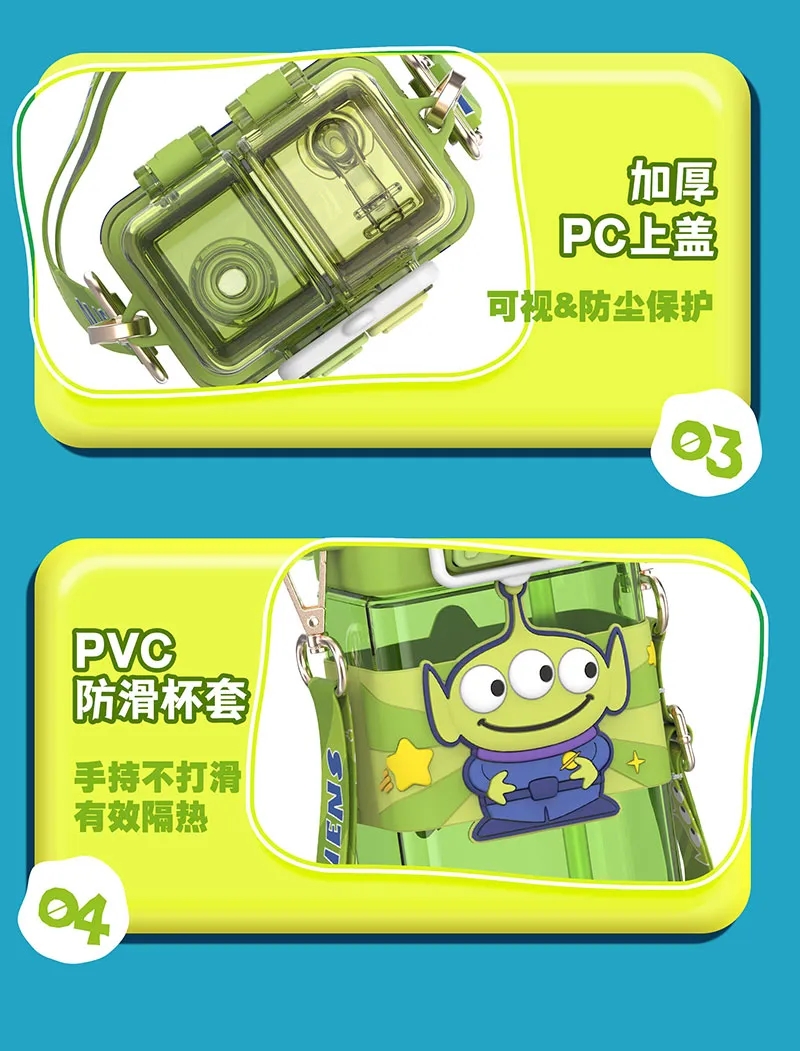 艾可思迪士尼tritan儿童水杯男女孩夏天上学生专用吸管杯可爱草莓熊双饮杯子520ml【包邮直发】