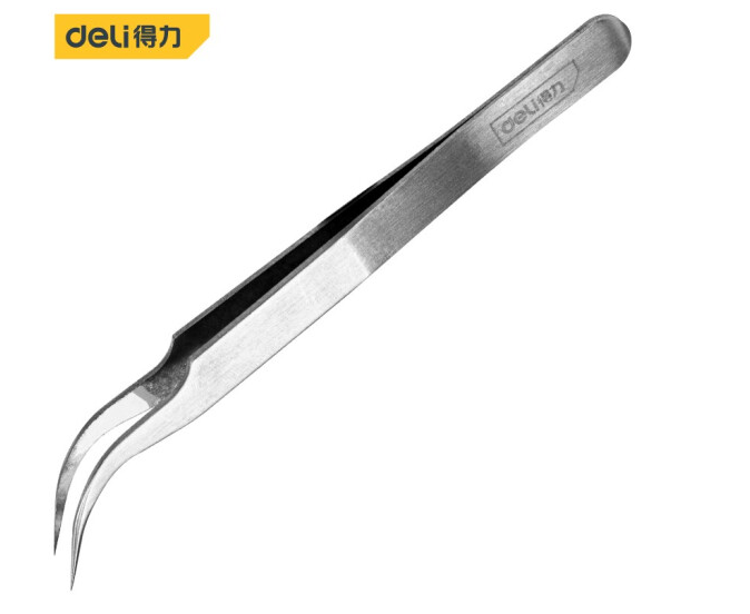 得力DL396203镊子不锈钢弯头(银)