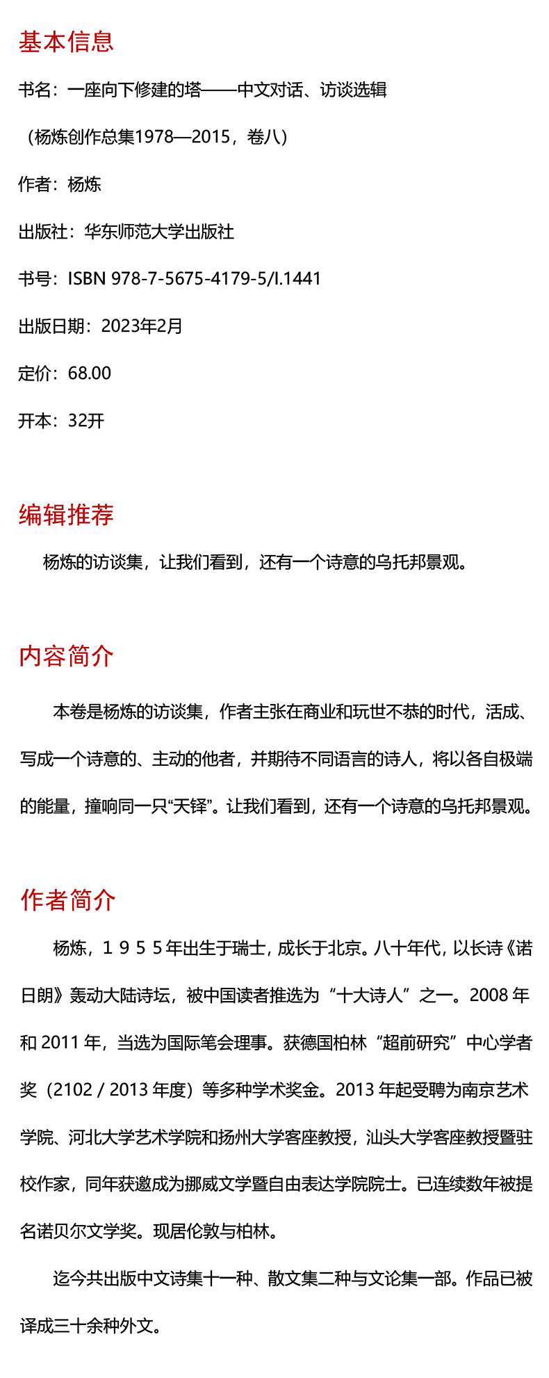 杨炼创作总集1978—2015 卷八 一座向下修建的塔 中文对话、访谈选辑