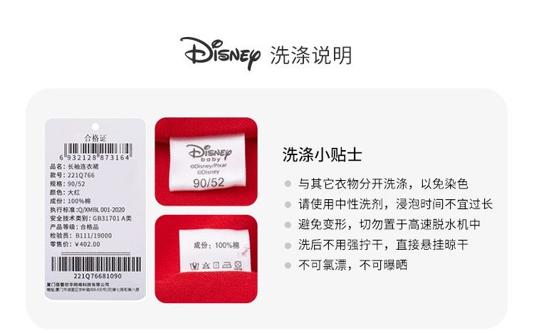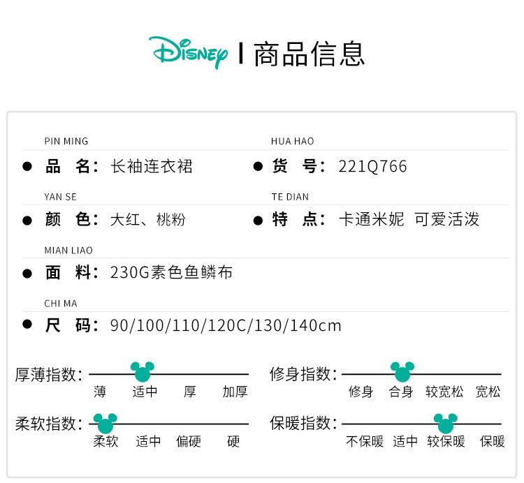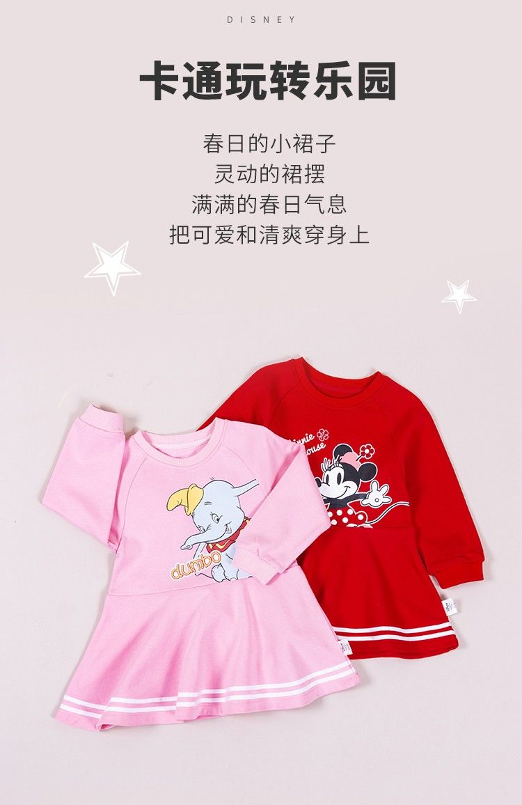 迪士尼童装 女童连衣裙春秋新款女宝宝裙子洋气甜美裙红色潮221Q766