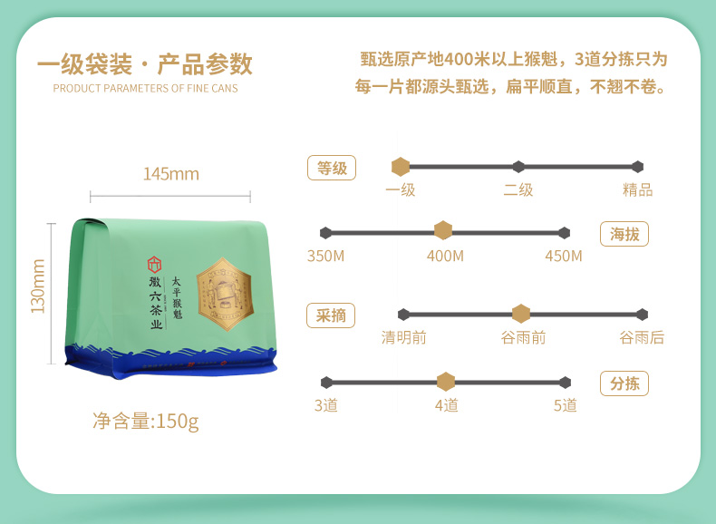 【新茶预售】徽六丨太平猴魁 寻味300 绿茶 一级 纸包 150g 2025年新茶 预计4月25日发货