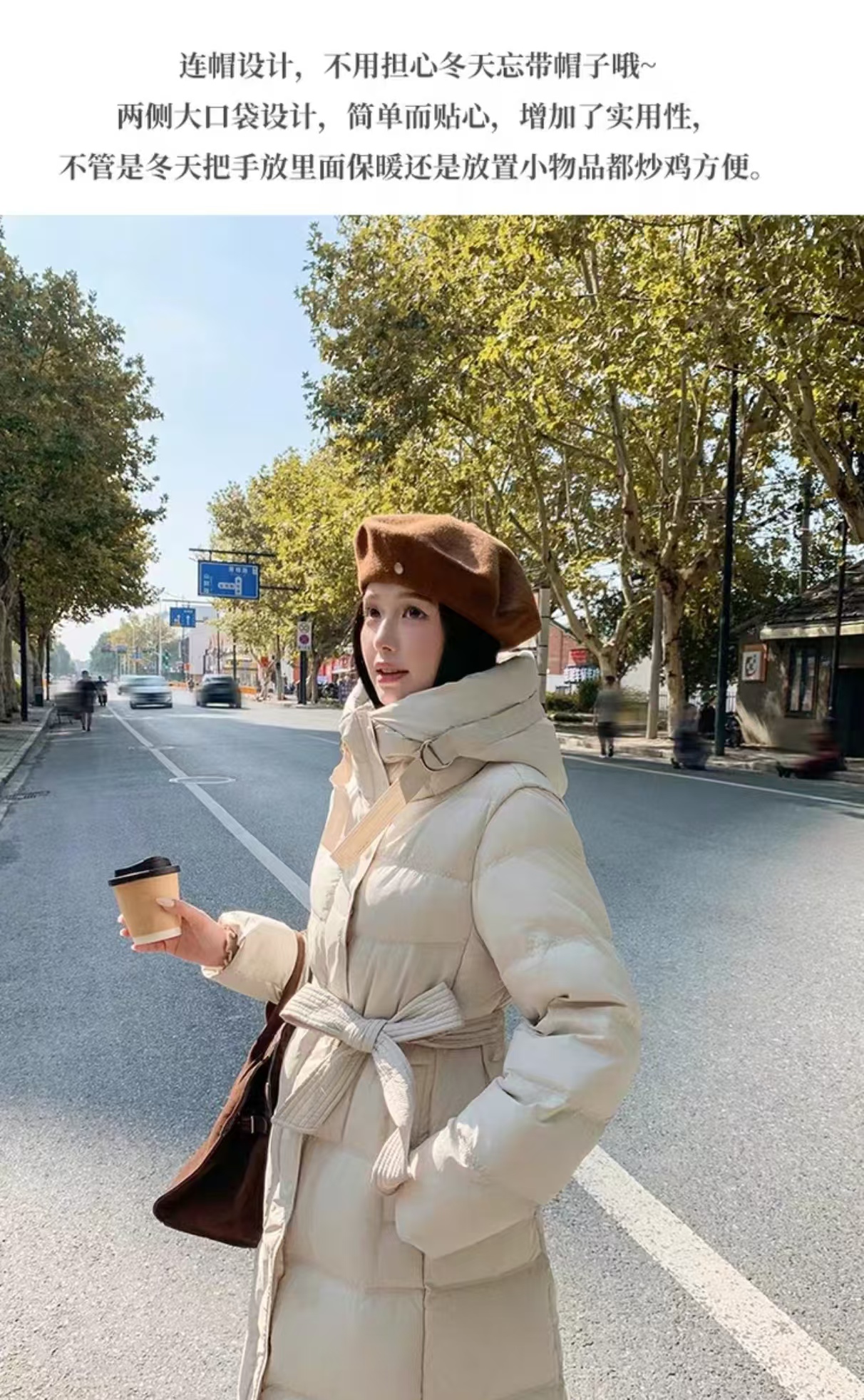 连帽设计,保暖防风,通勤修身款。