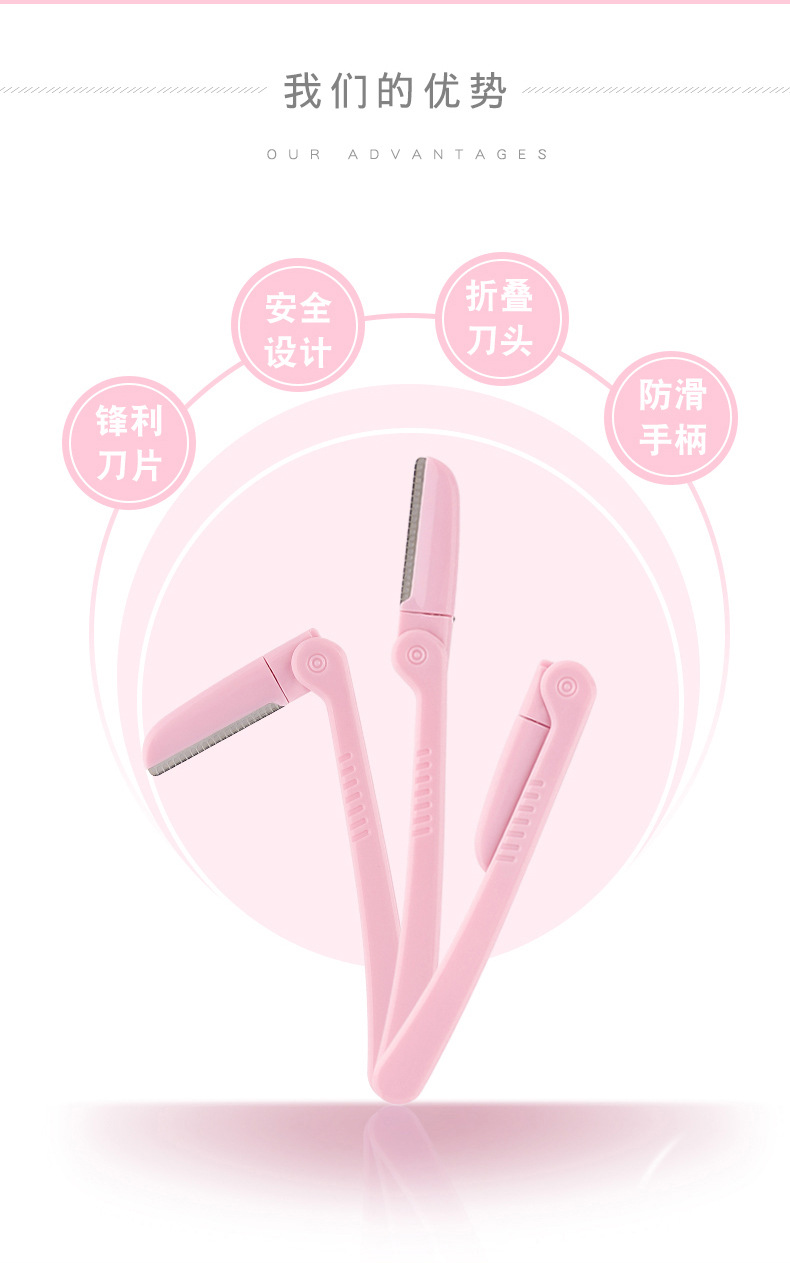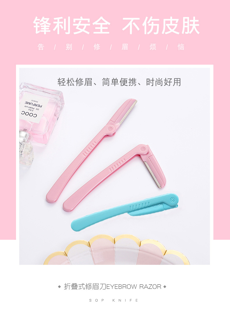 网纹不锈钢刀折叠修眉刀单支装刮眉刀眉毛工具 1个
