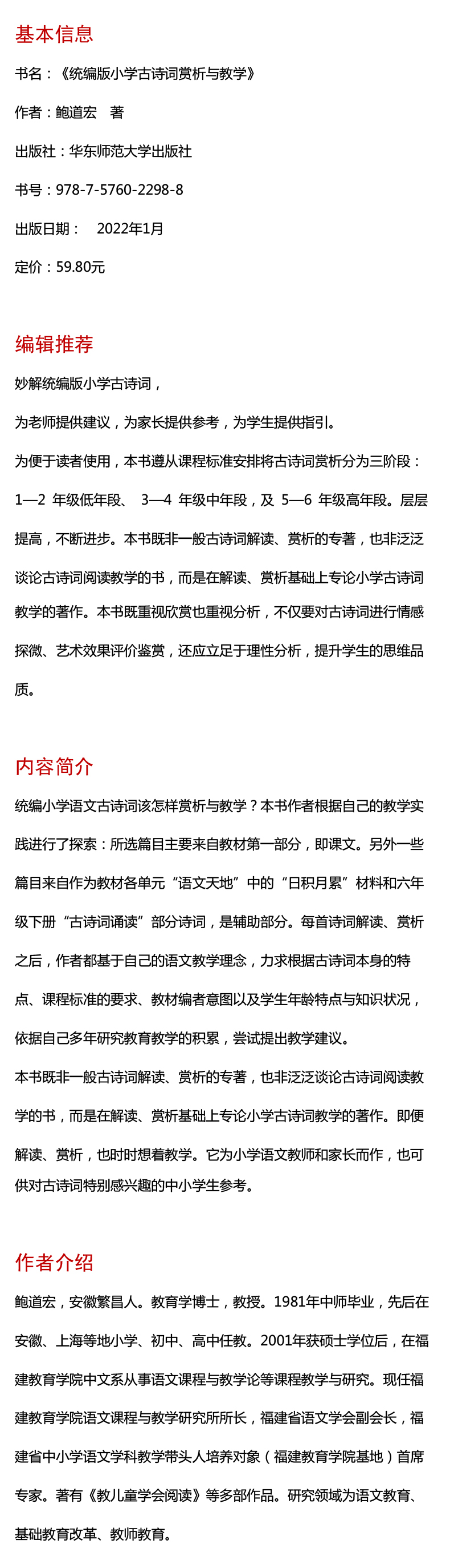 统编版小学古诗词赏析与教学 大夏书系 鲍道宏著 小学古诗词教学专论 教学实践