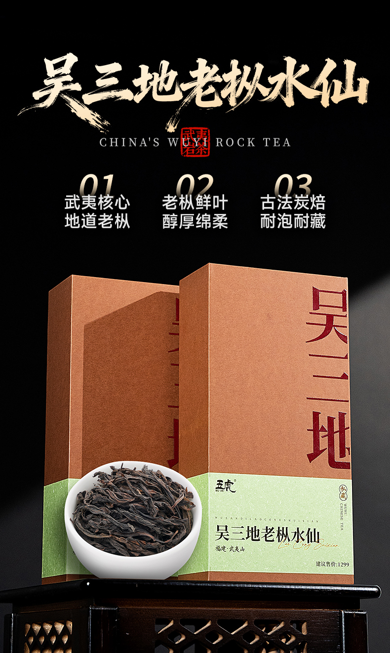【年货礼盒】茶叶 吴三地老枞水仙 水仙 乌龙茶 武夷岩茶 茶叶礼盒 茶饮 五虎 320g
