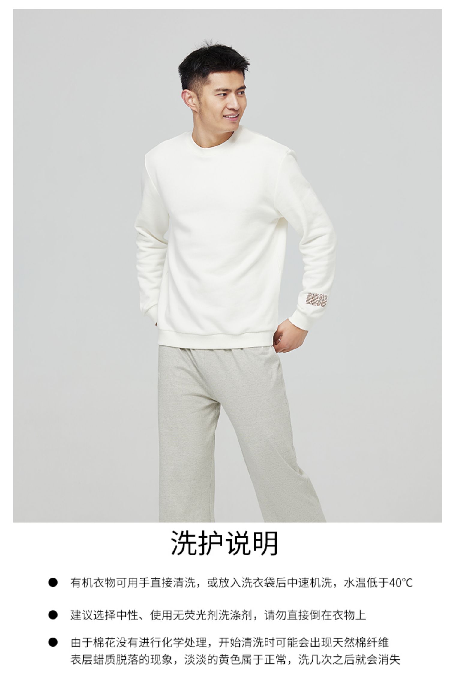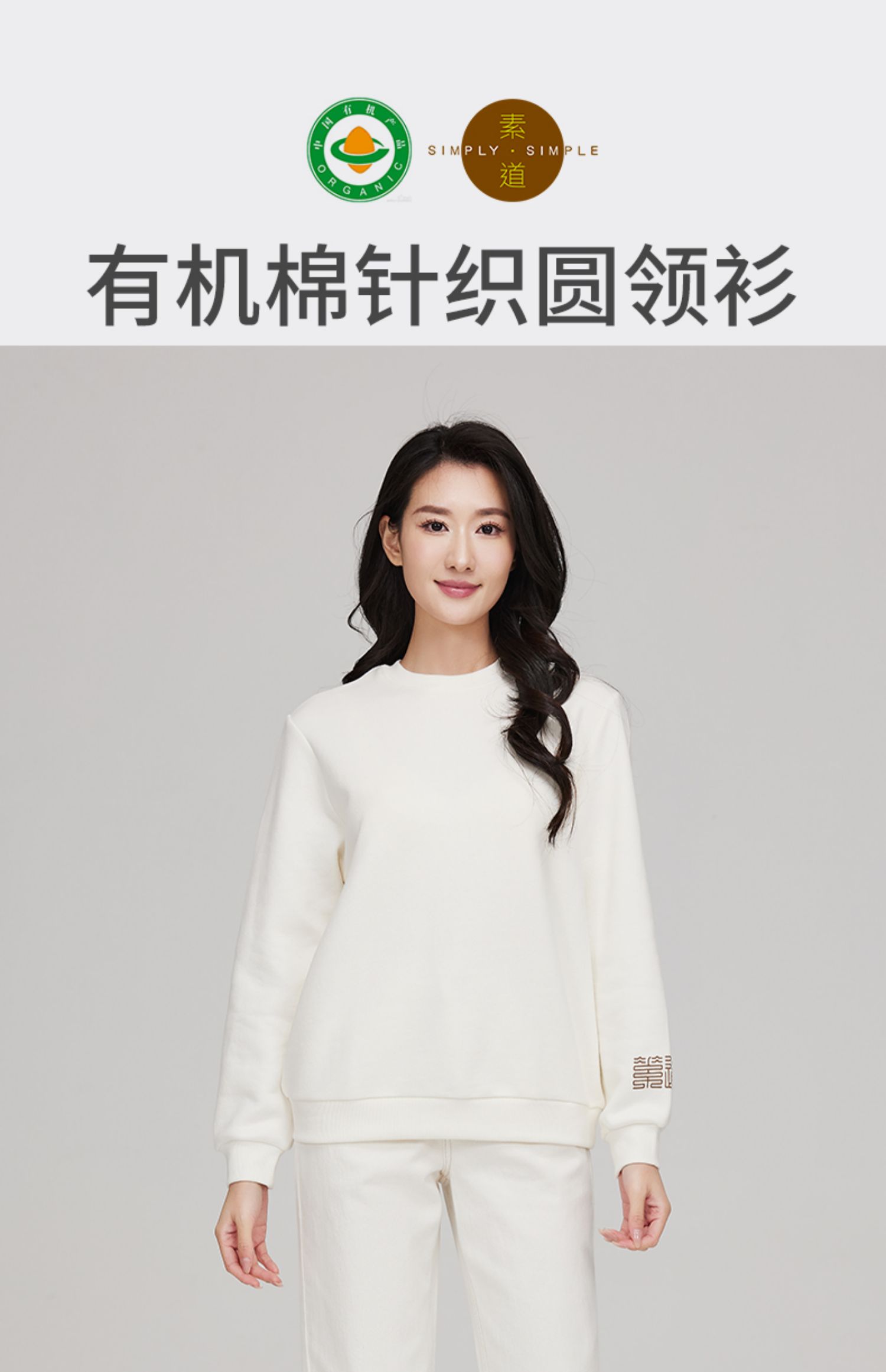 素道天然有机彩棉圆领情侣卫衣 时尚男女同款运动衫 针织长袖装