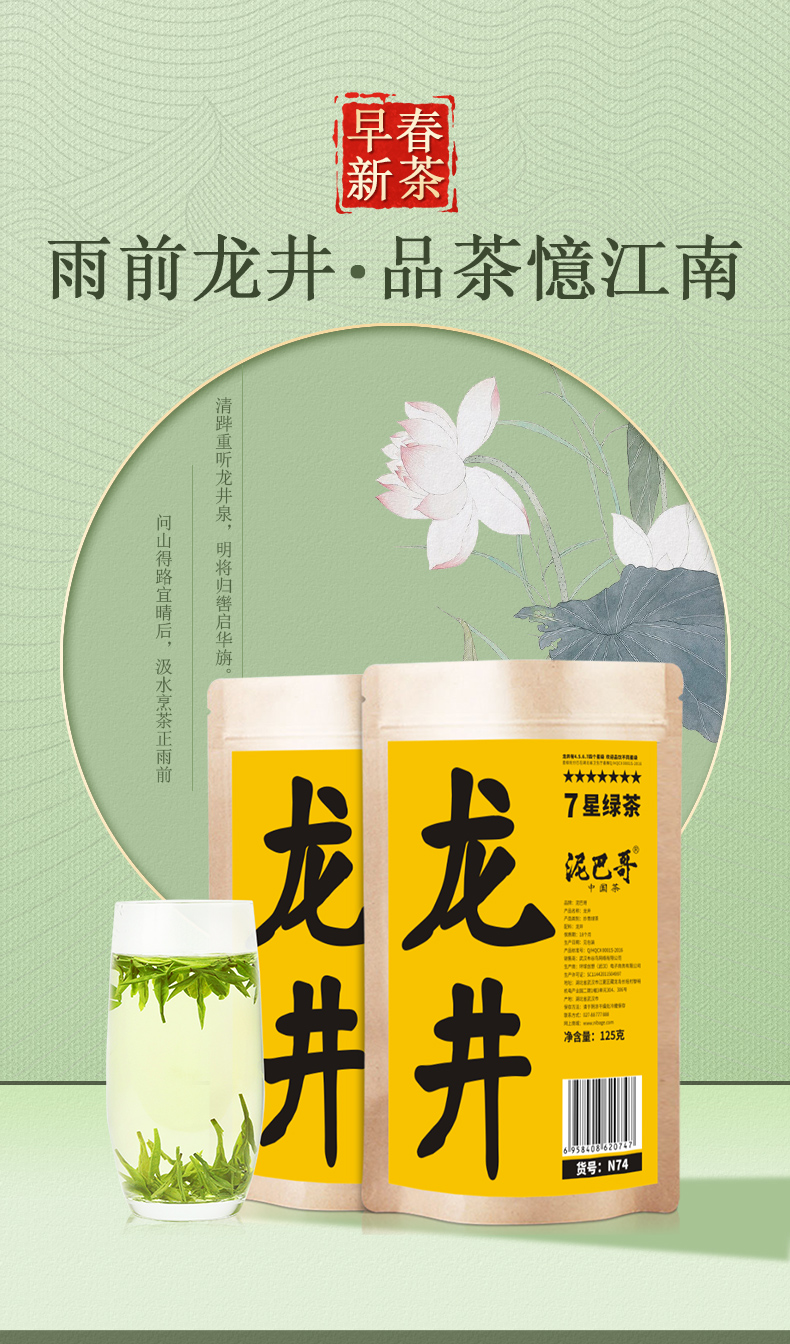 【2026新茶】泥巴哥春茶明前龙井绿茶 茶叶 125g*2袋