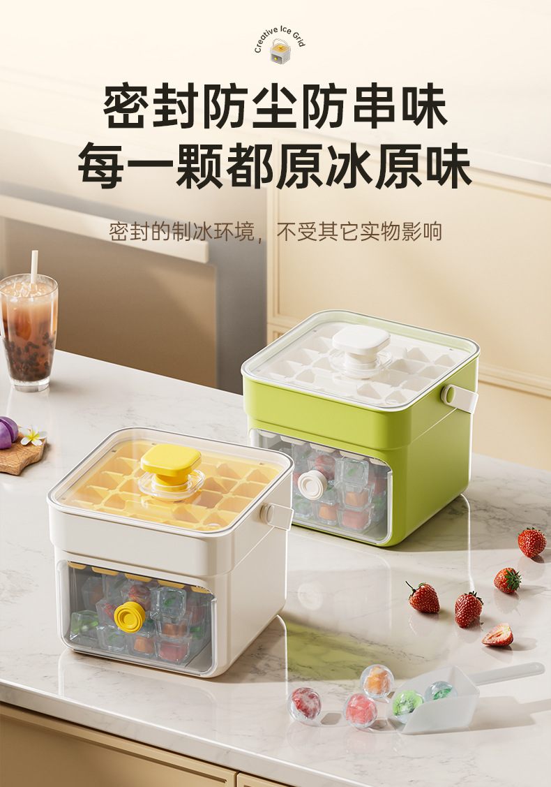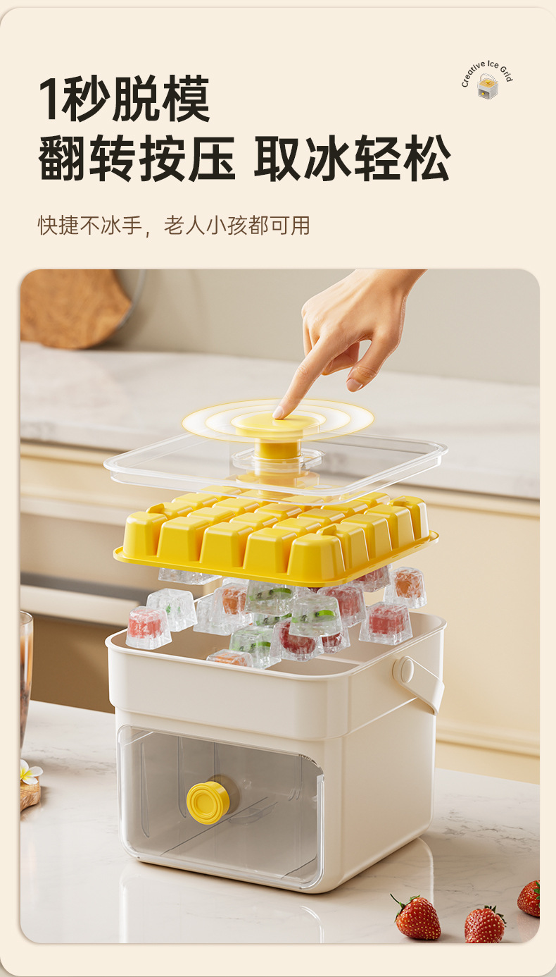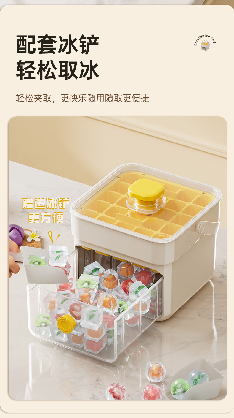 【送冰铲❗️19.9任选🔥储冰桶套装】甄选食品级材质,1秒脱模 翻转按压 取冰轻松!按压冰格手提冰块模具制冰盒冻冰球磨具大容量储冰家用