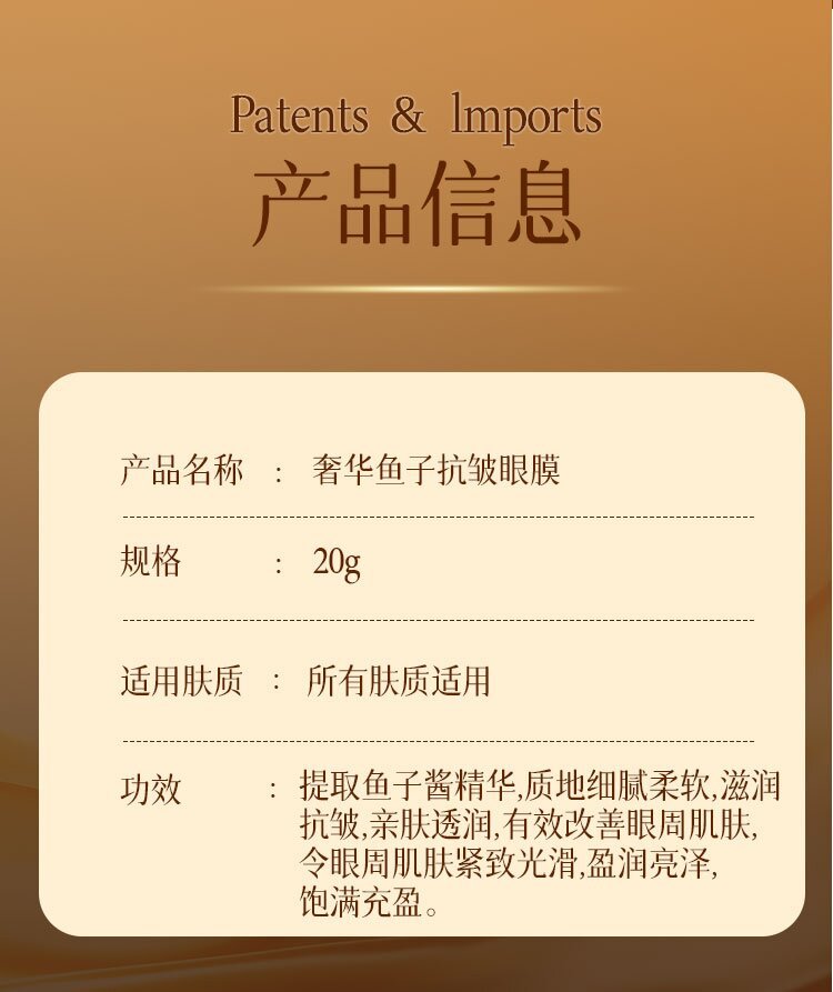 【买二送一❗奢华鱼子酱抗皱眼膜】熬夜救急❗快进式焕亮眼周,特别添加“鲟鱼籽酱”提取物,深入保湿滋养肌肤,眼周肌肤的迷你SPA,淡化细纹补水保湿提拉紧致L