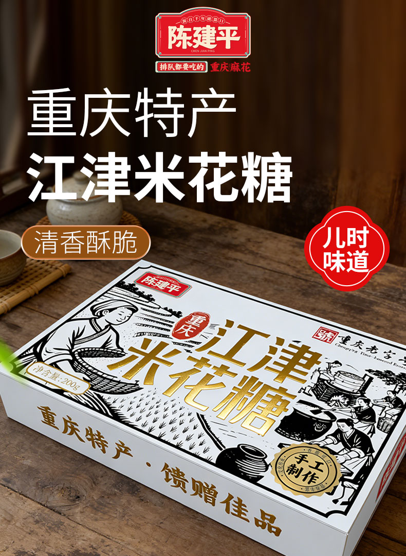【第2件5折】陈建平重庆特产江津米花糖老字号200g传统油酥零食礼盒装