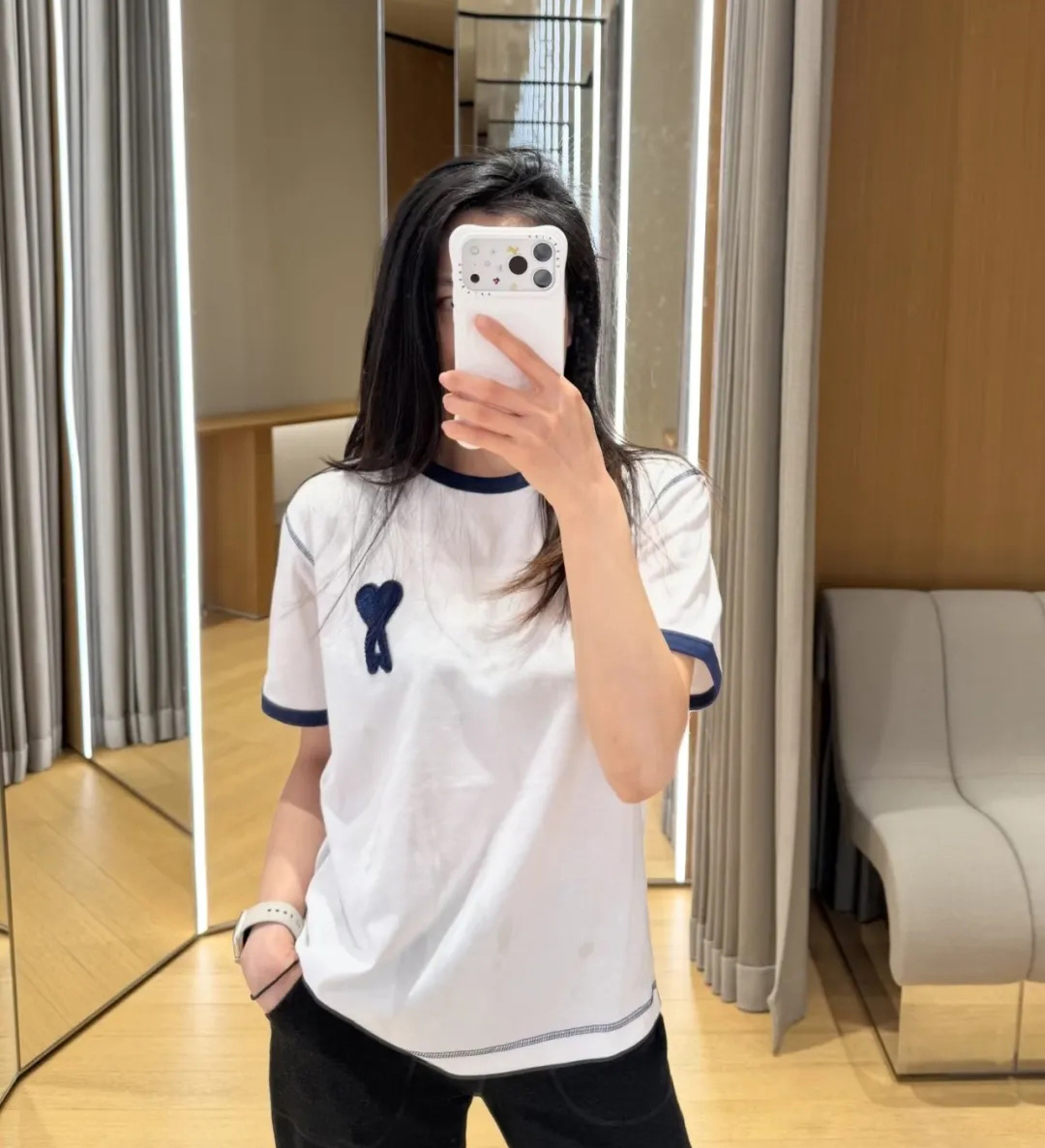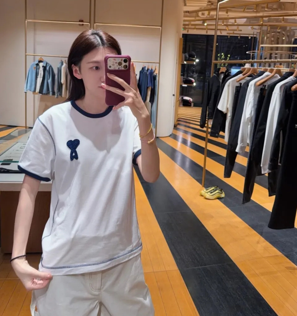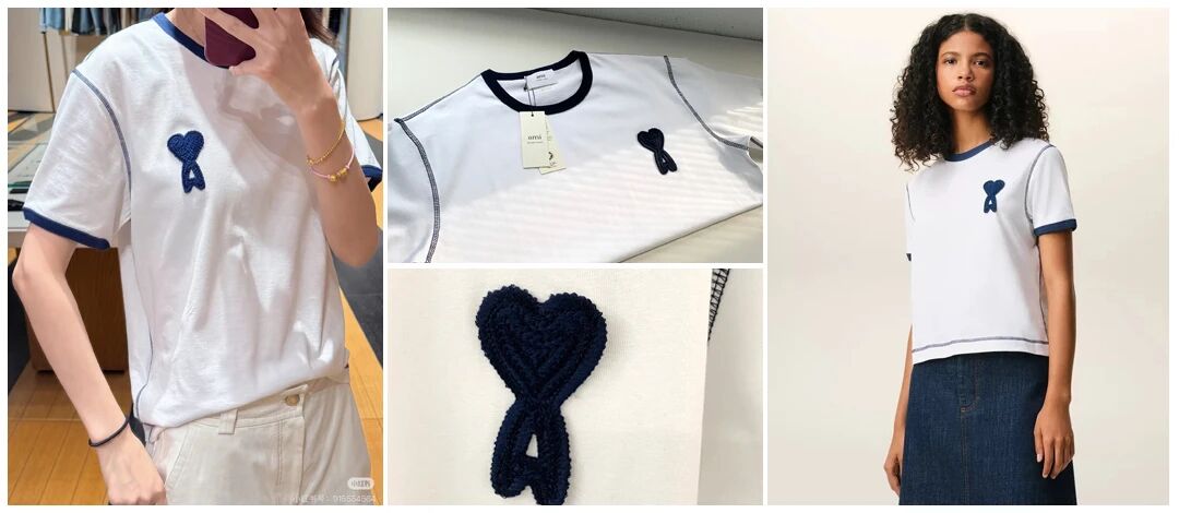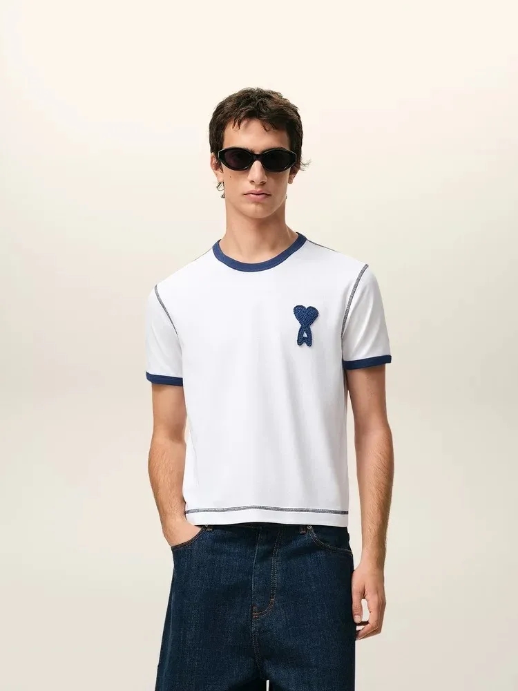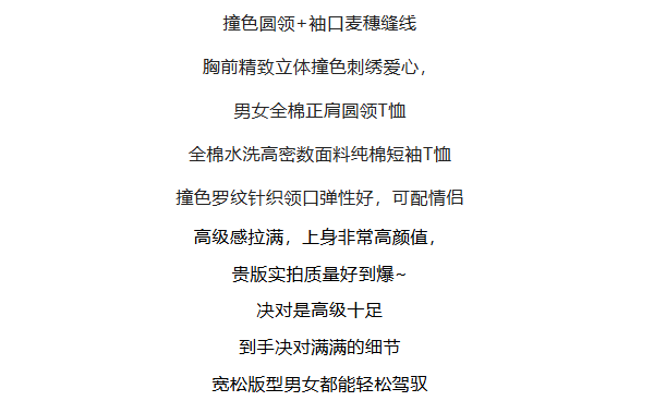 【xjwm1】情侣新款夏日爱心刺绣复古圆领短袖T恤!!