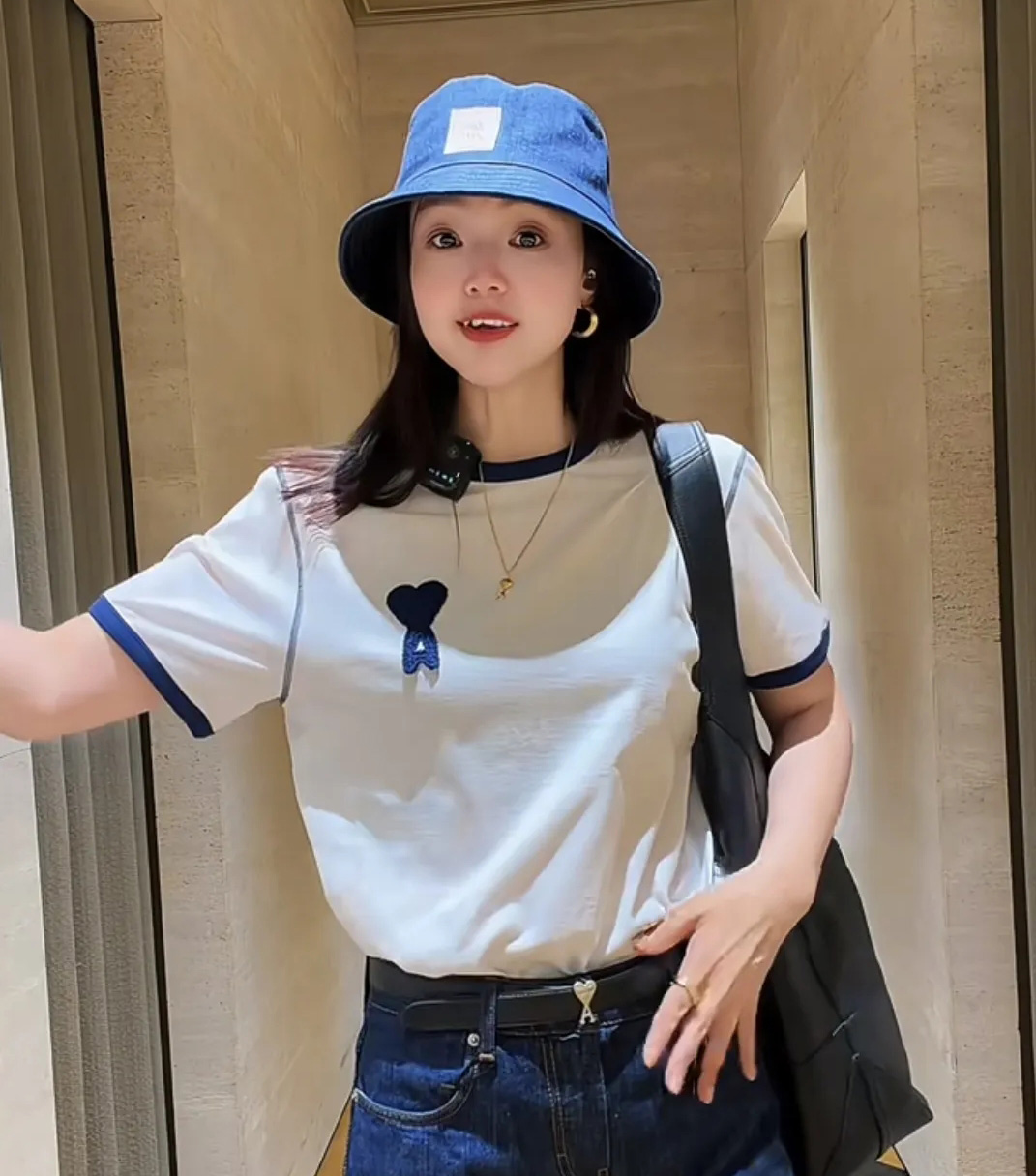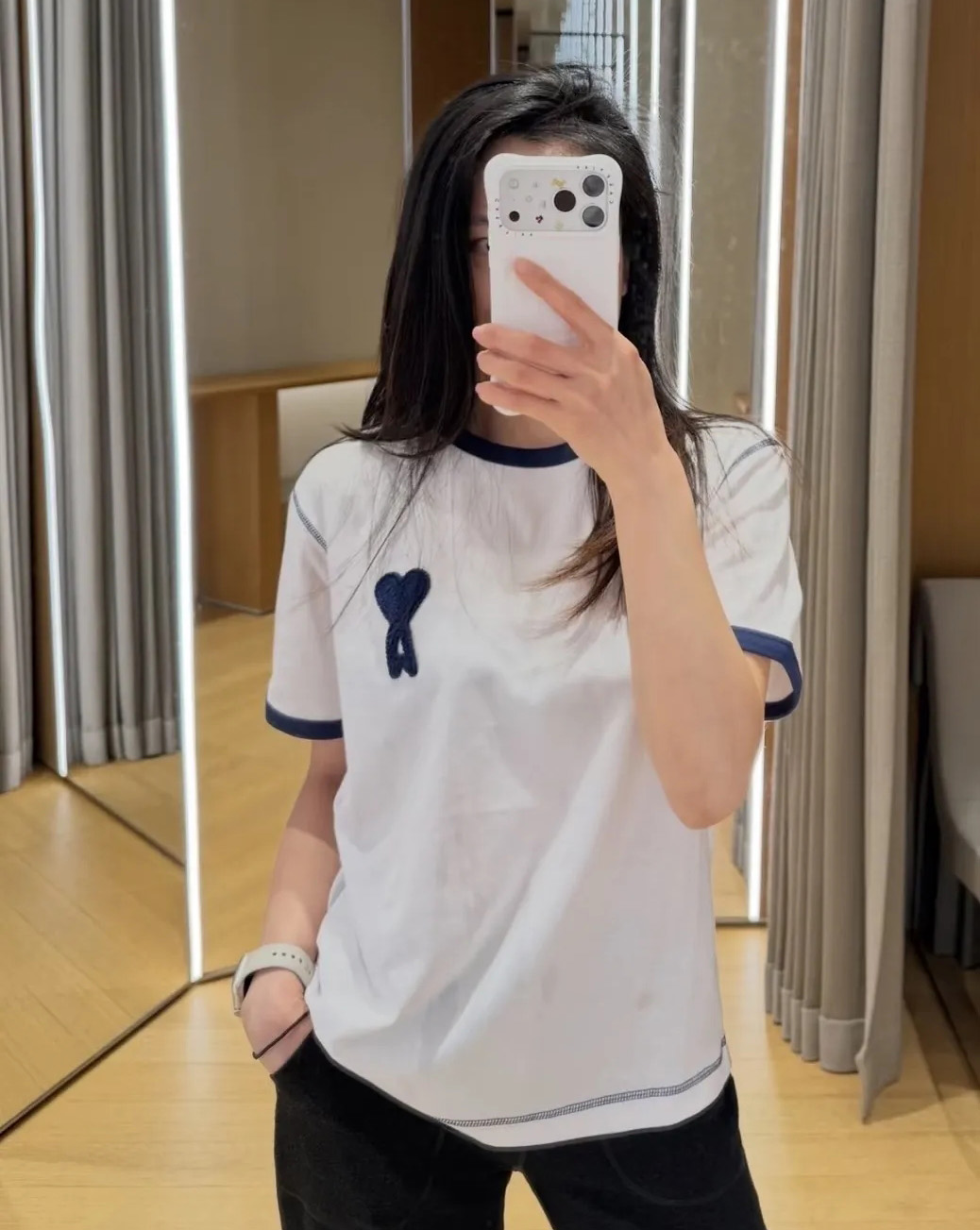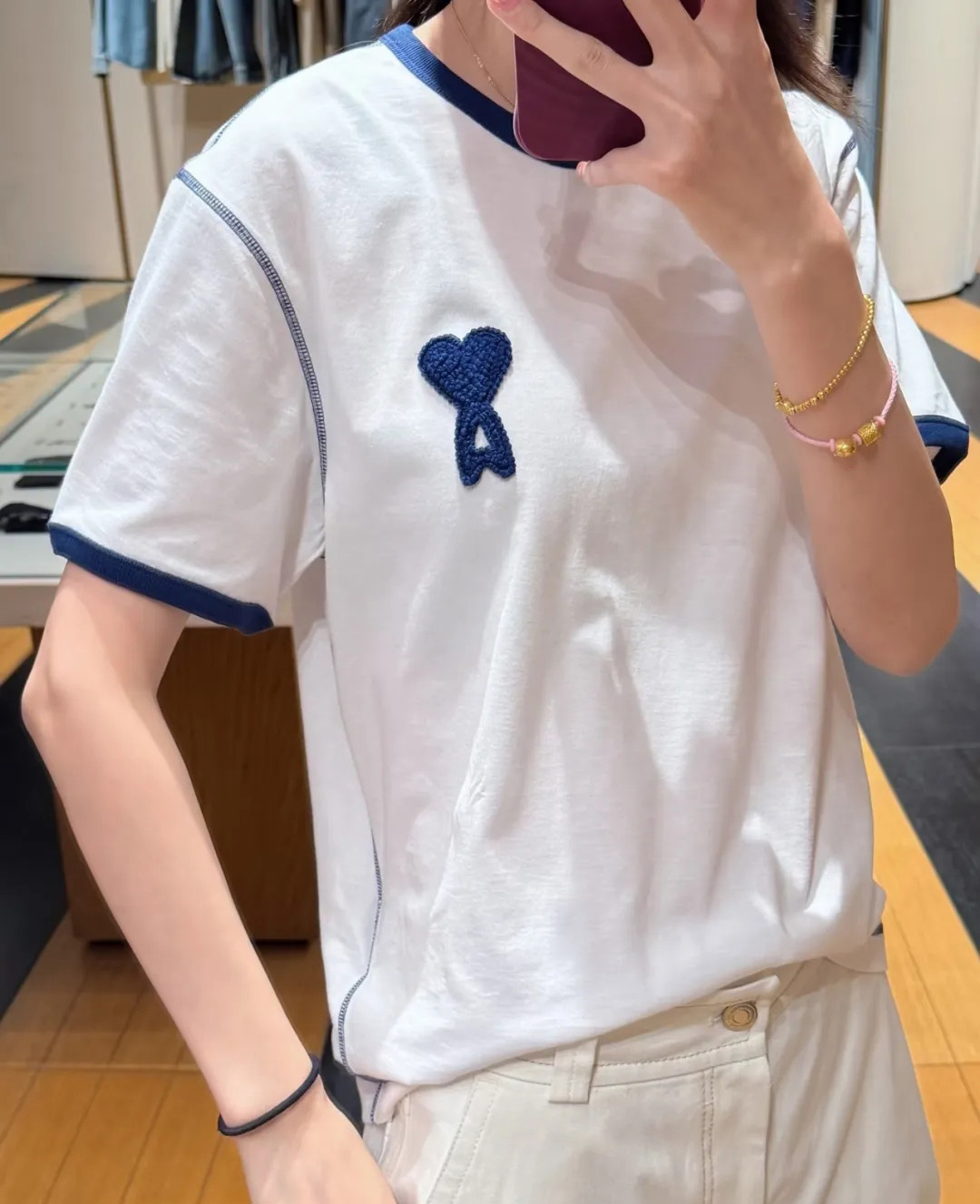 【xjwm1】情侣新款夏日爱心刺绣复古圆领短袖T恤!!