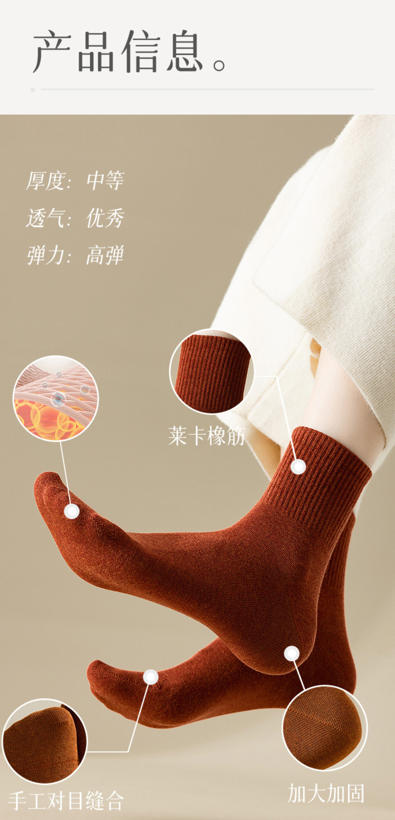猫人是老国货品牌了,成立于1998年,至今已有25年的历史,目前在全国已经有2000余家实体门店,遍及全国。这款袜袜,用的是优质的新疆长绒棉,含棉量高达95%以上,相比市面上的普通棉花,它纤维长度高达40mm,透气性是普通面料的5倍,不仅吸汗排湿性强,透气性好,还不易起球。袜子是3D立体包裹设计,采用的是200针织基数的编织密度,针脚细腻且紧密,穿在脚上也很舒服。厉害的是,它有专业消臭检测报告,经过测试,水洗100次,抑菌率仍高达98%,担心脚臭问题的真的不要错过!