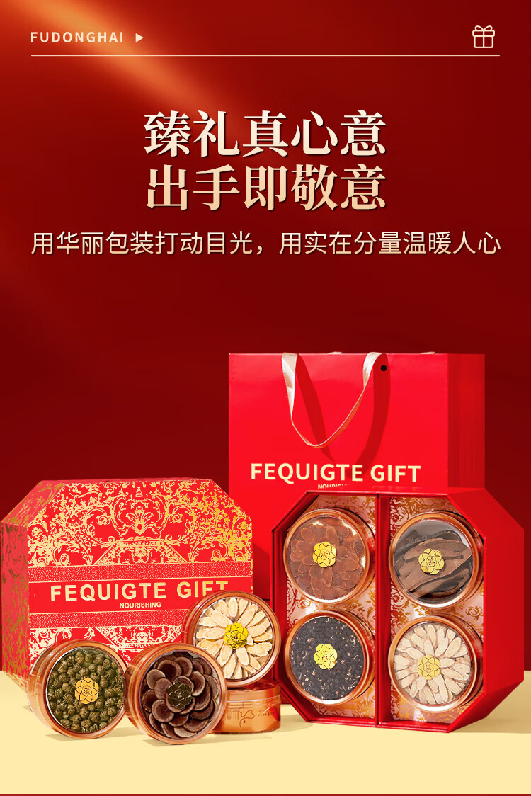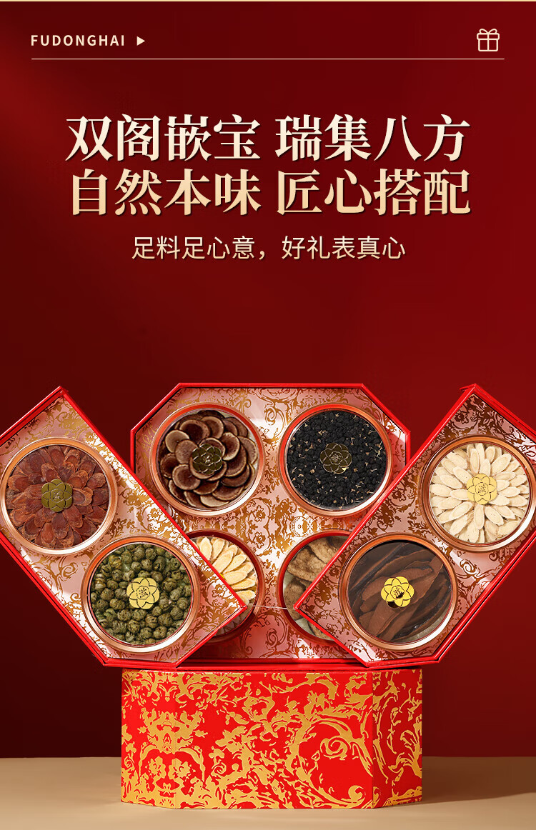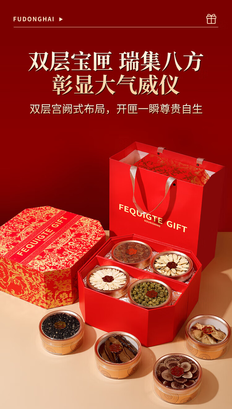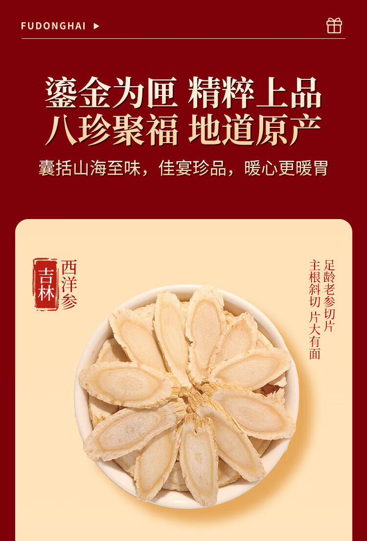 福东海 八拼礼盒西洋参红参铁皮石斛滋补品送长辈过新年货礼盒 【八珍G款】加拿大西洋参红参石斛- 275g