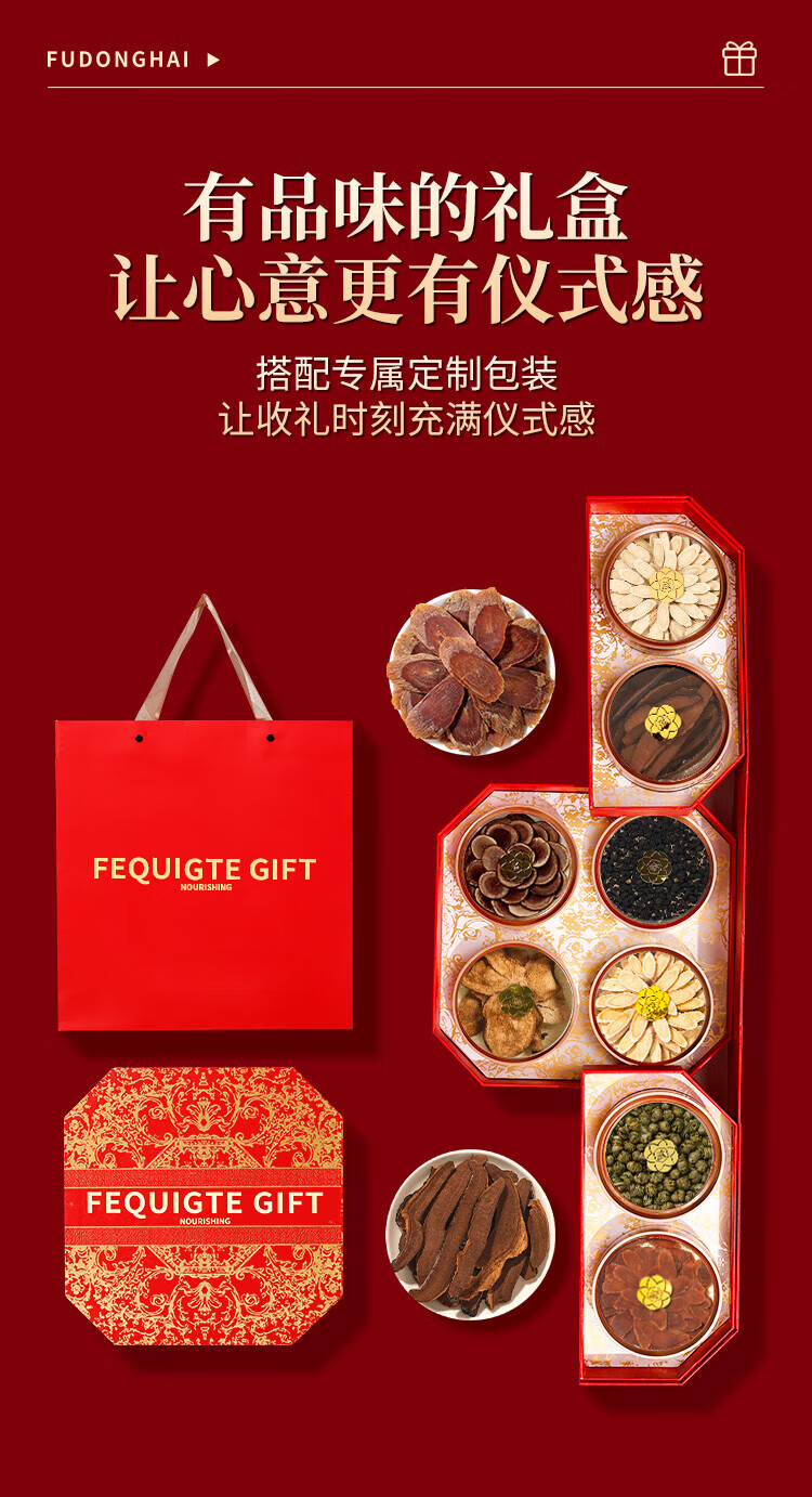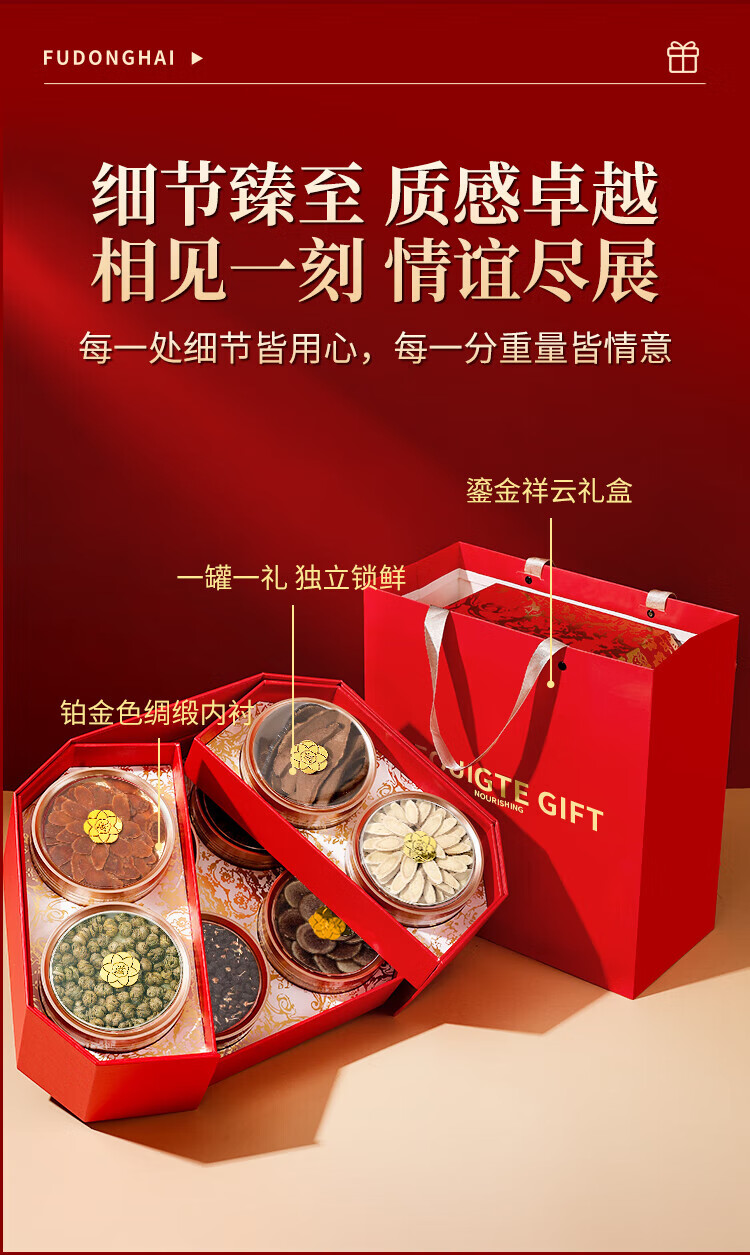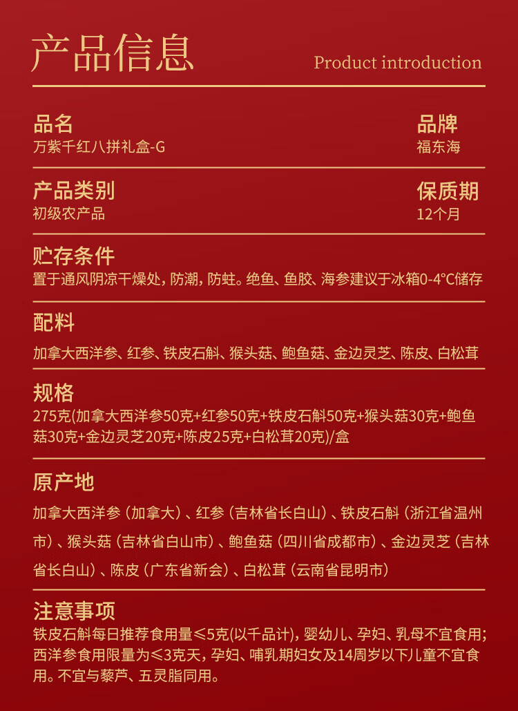 福东海 八拼礼盒西洋参红参铁皮石斛滋补品送长辈过新年货礼盒 【八珍G款】加拿大西洋参红参石斛- 275g
