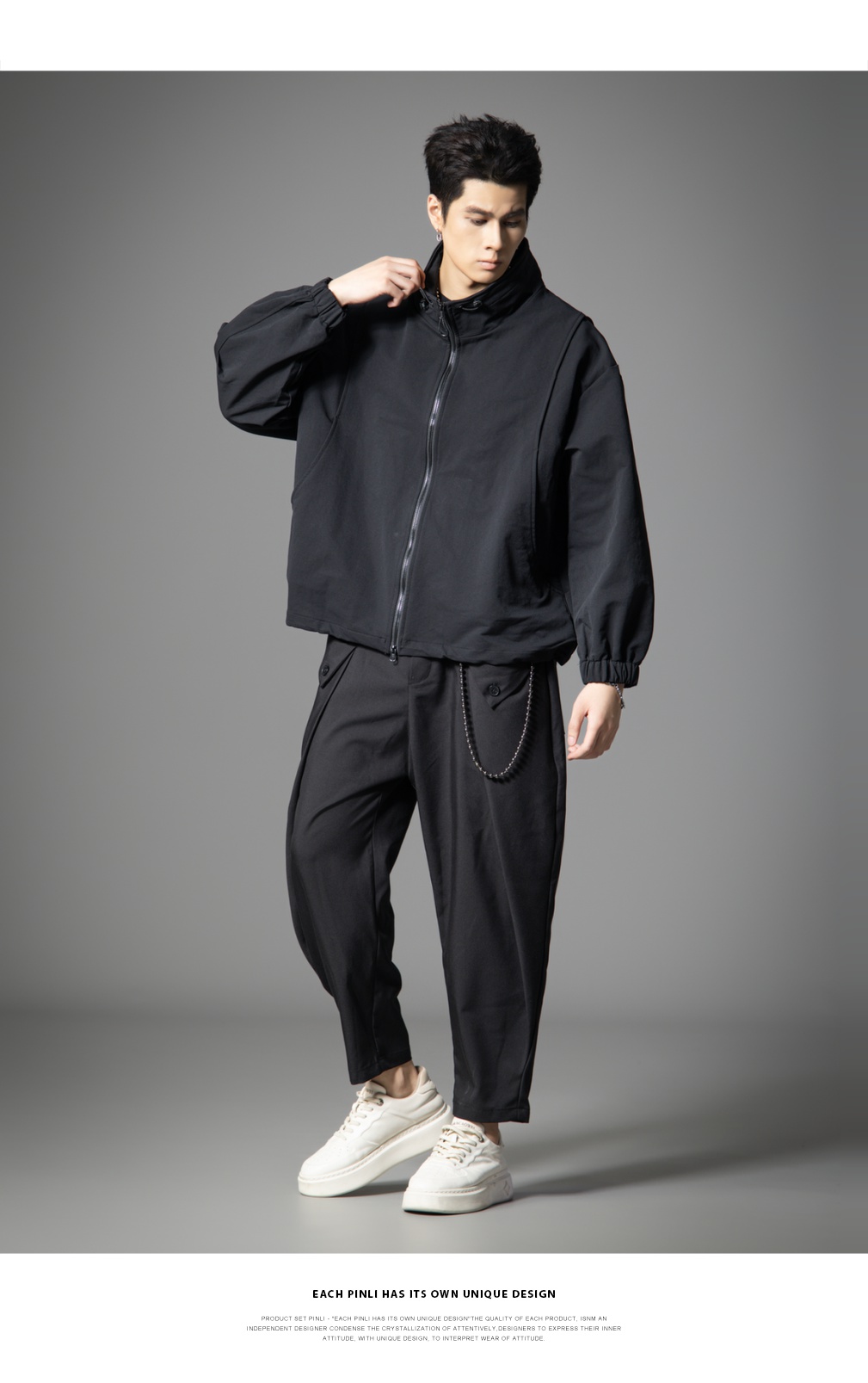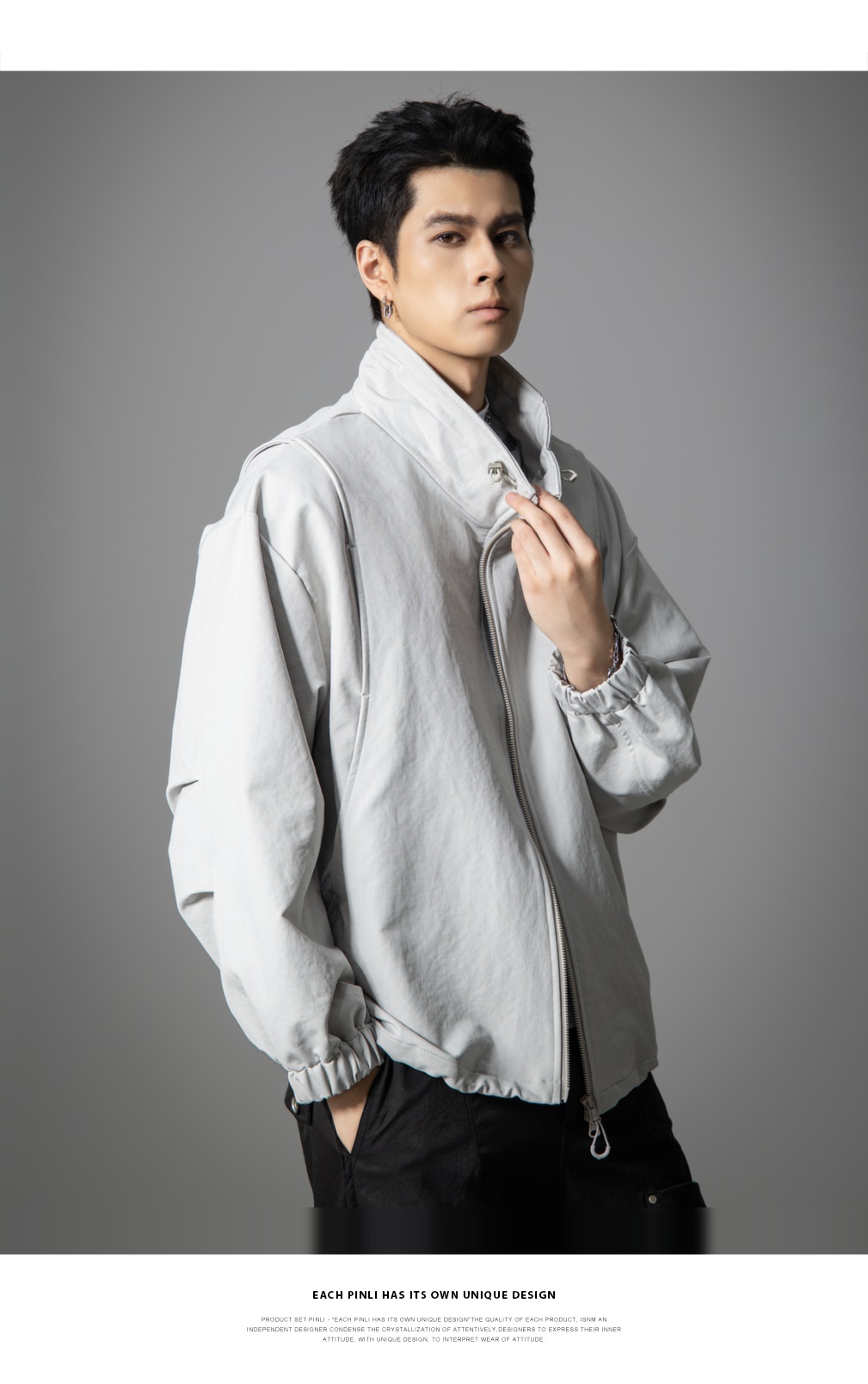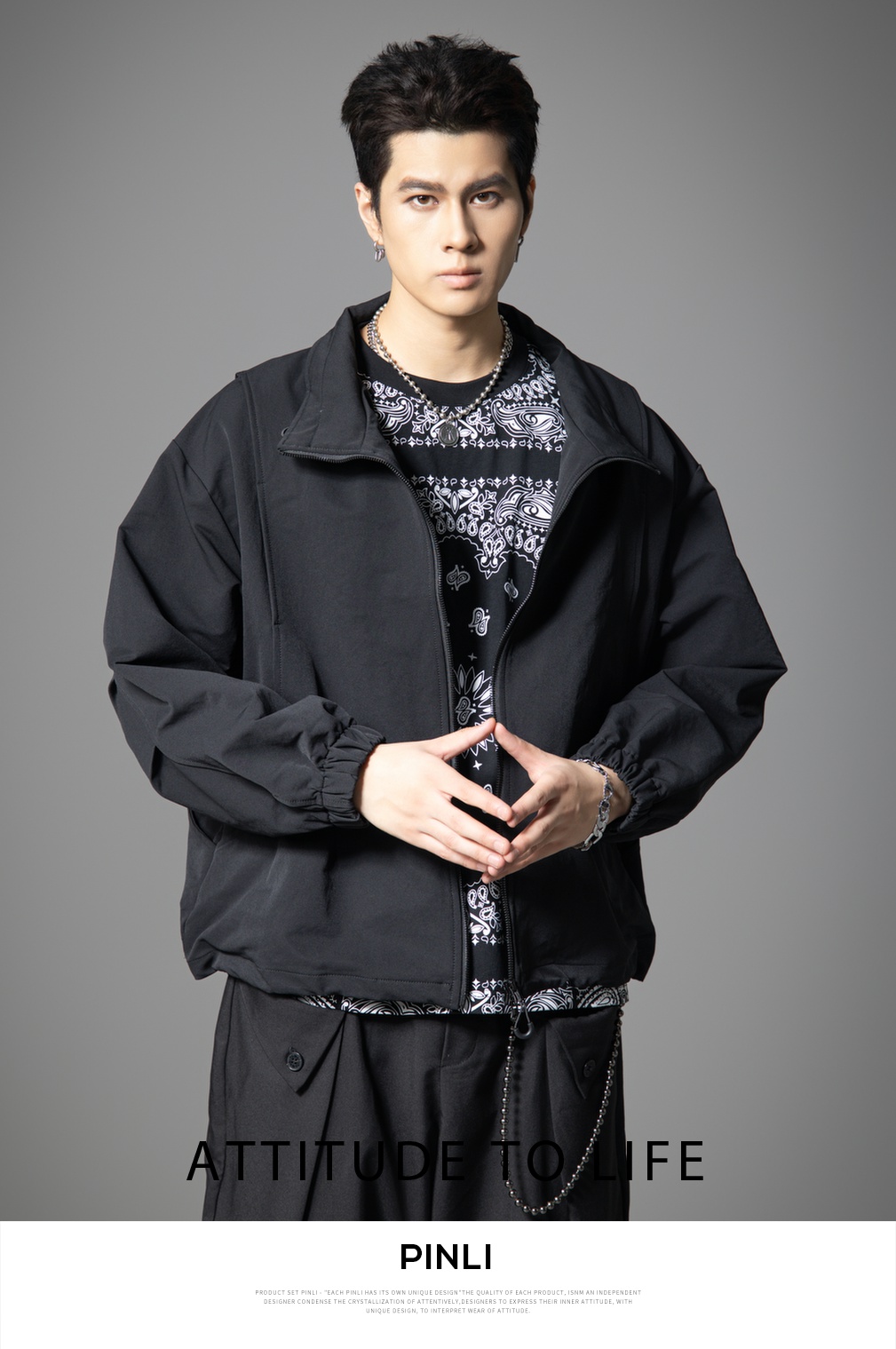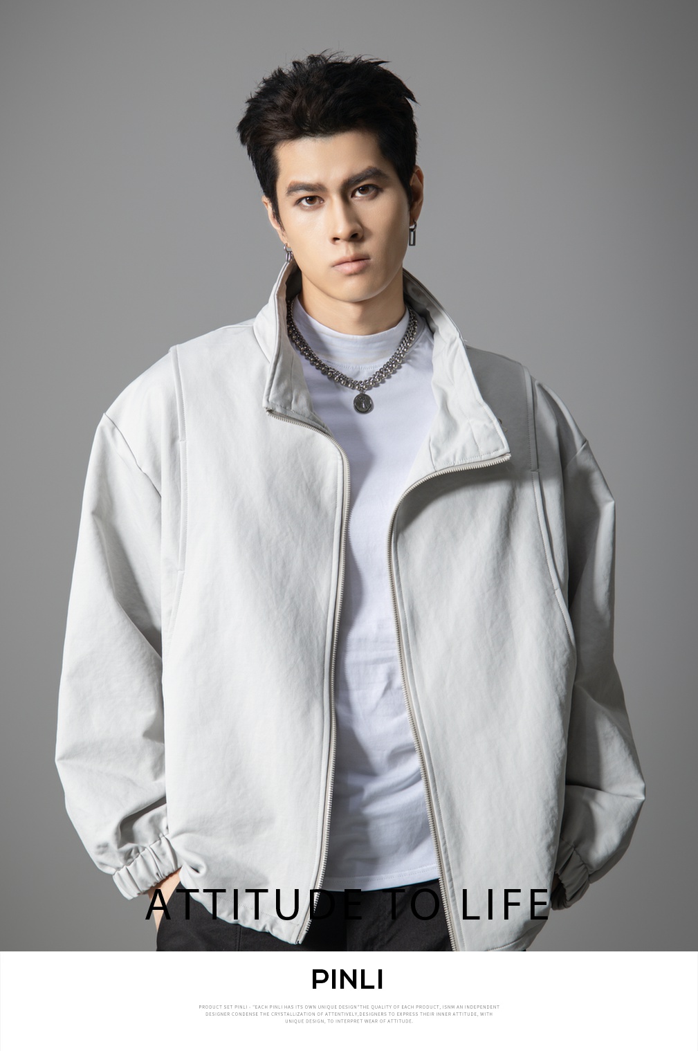 PINLI品立2025秋季新款男士宽松可翻高领纯色休闲梭织茄克外套潮GD253104150