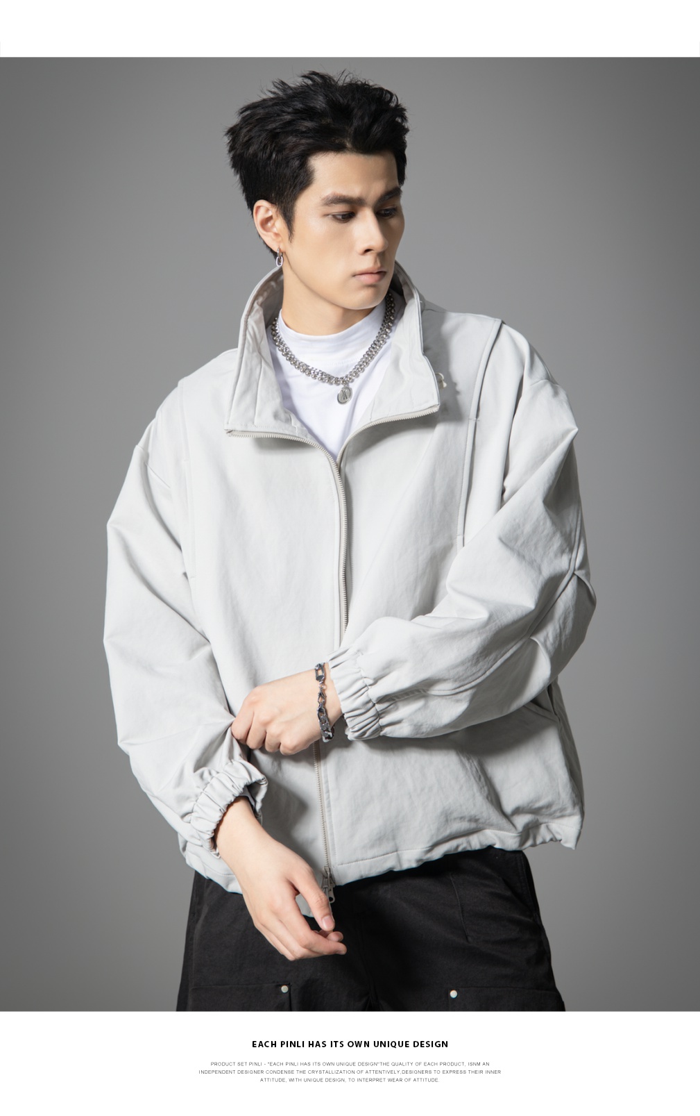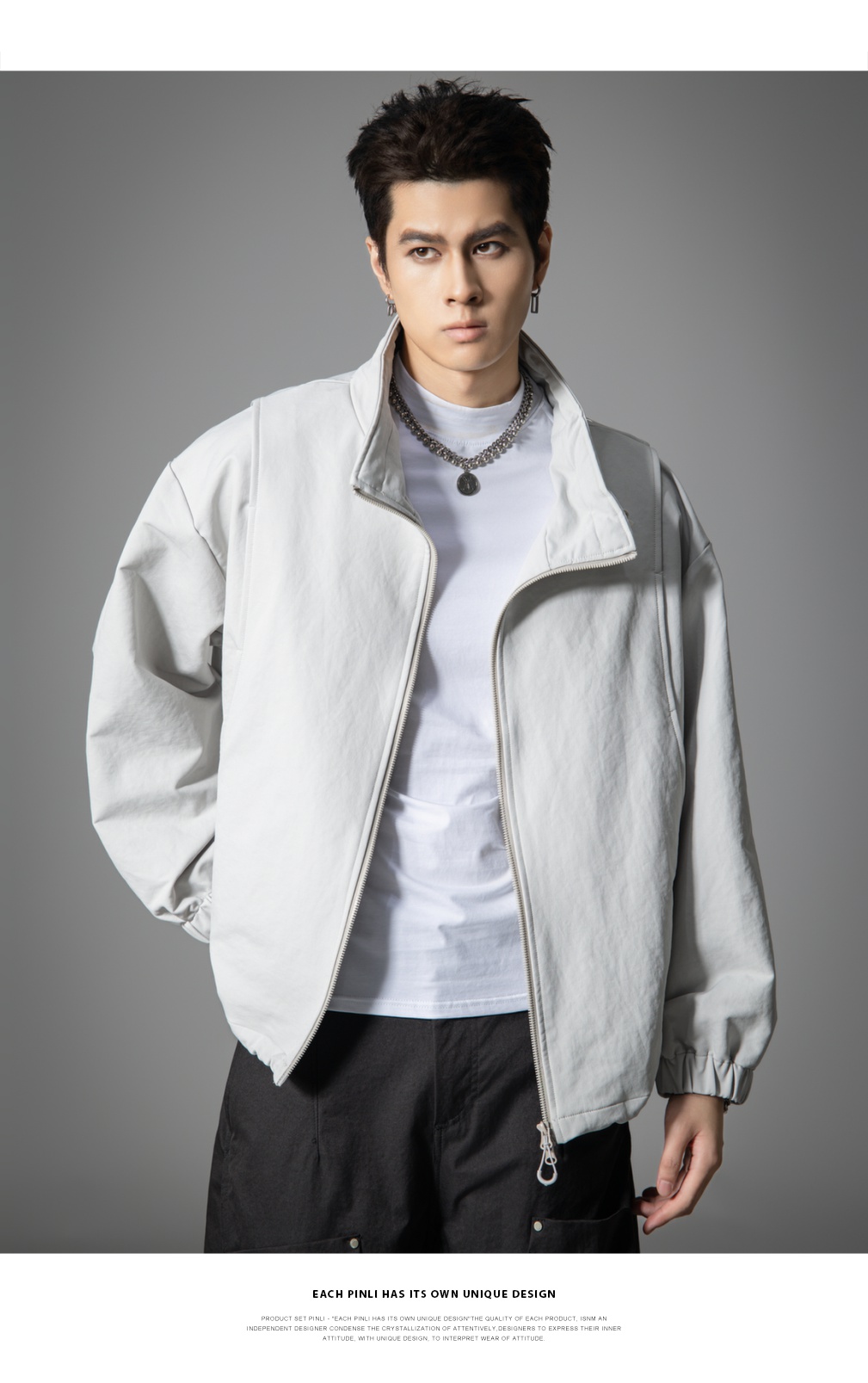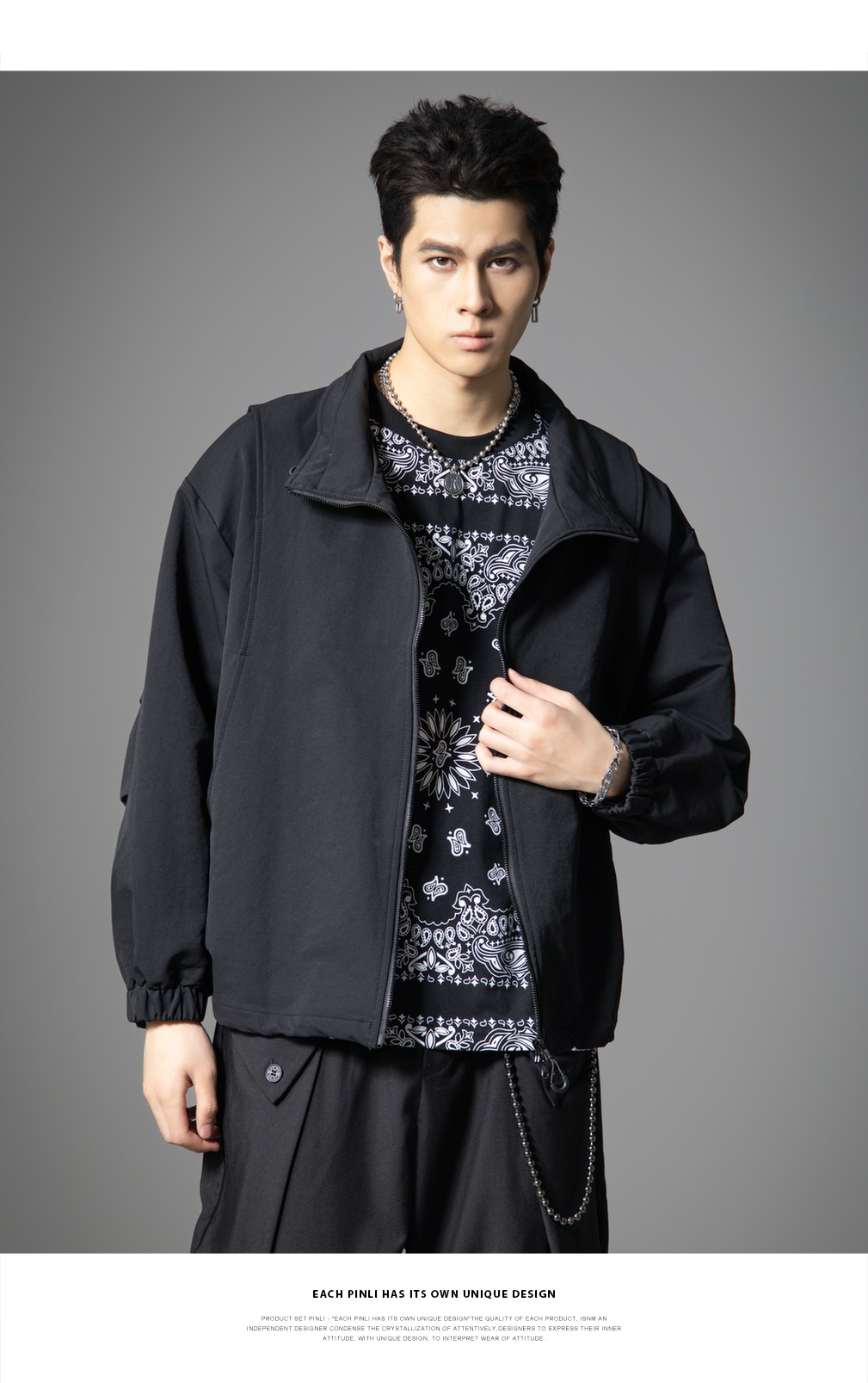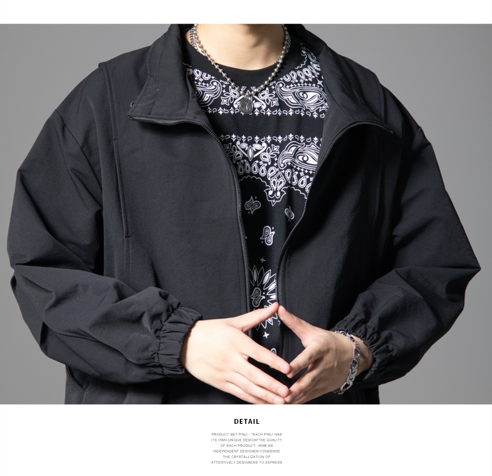 PINLI品立2025秋季新款男士宽松可翻高领纯色休闲梭织茄克外套潮GD253104150