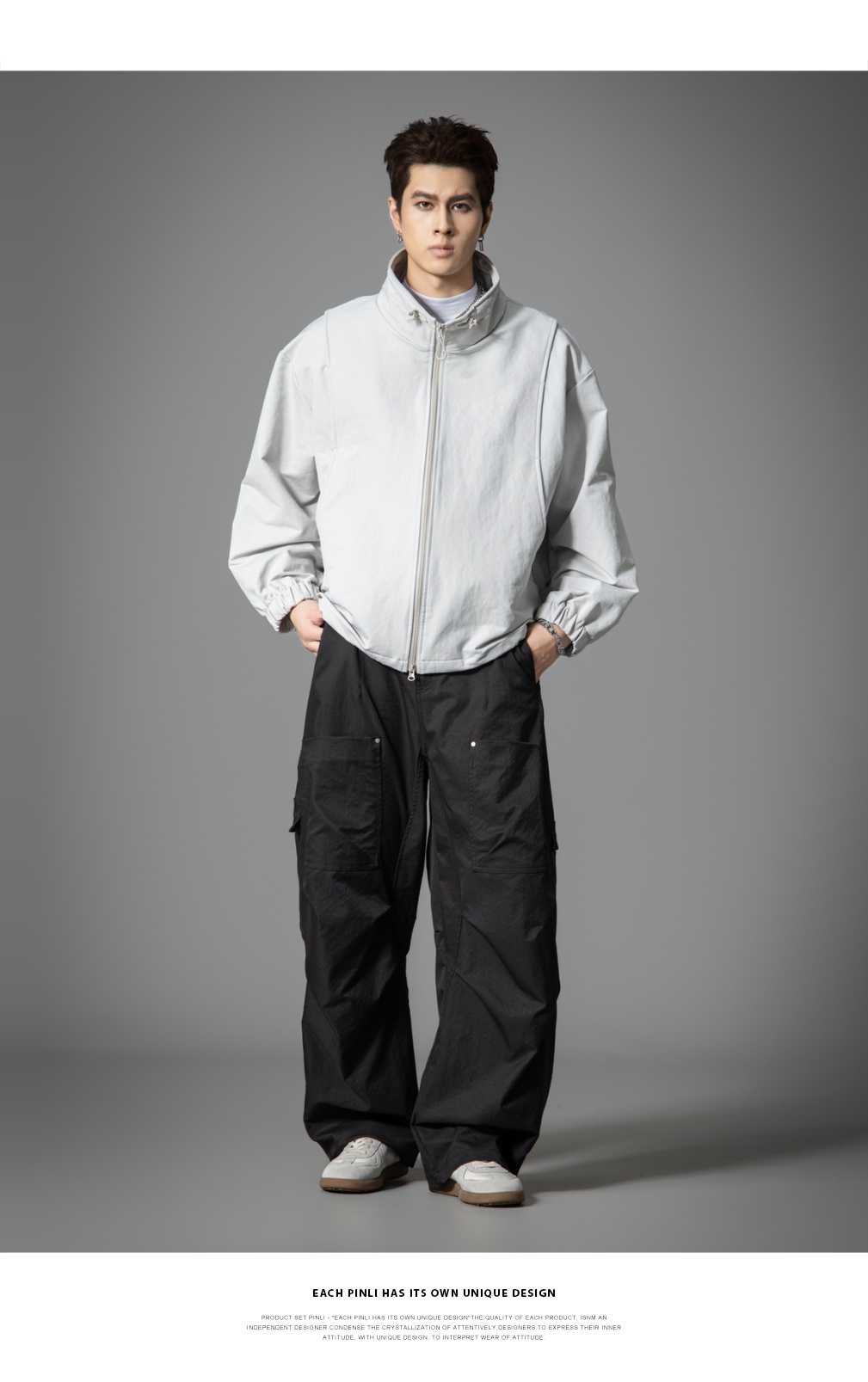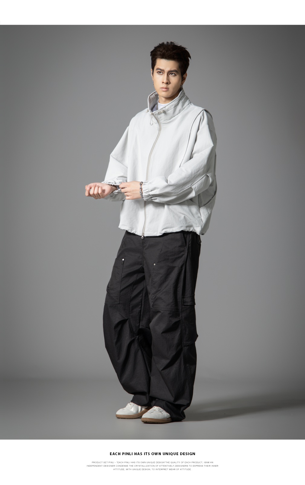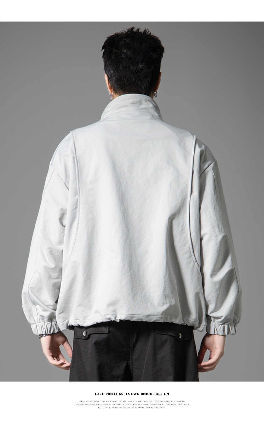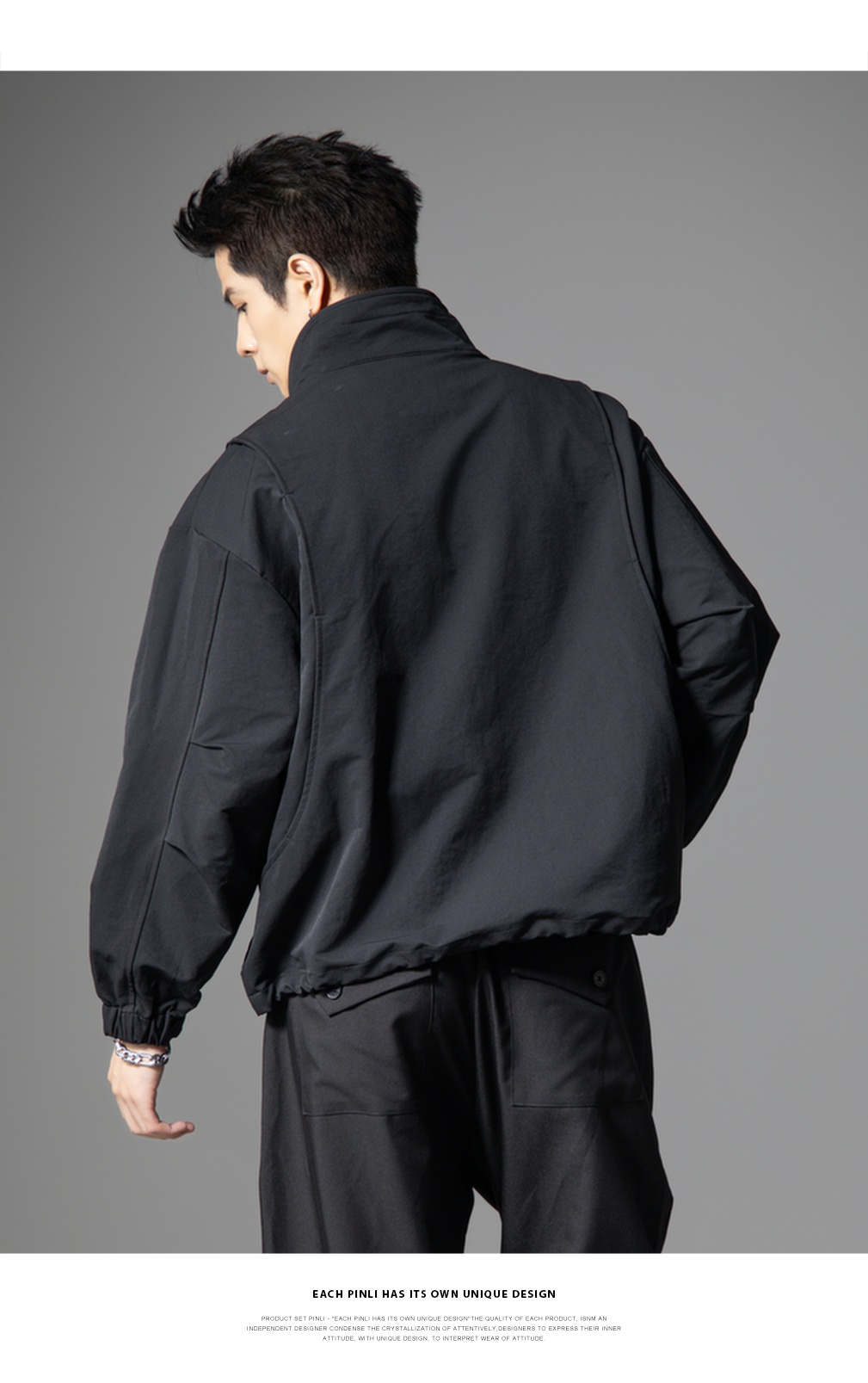 PINLI品立2025秋季新款男士宽松可翻高领纯色休闲梭织茄克外套潮GD253104150