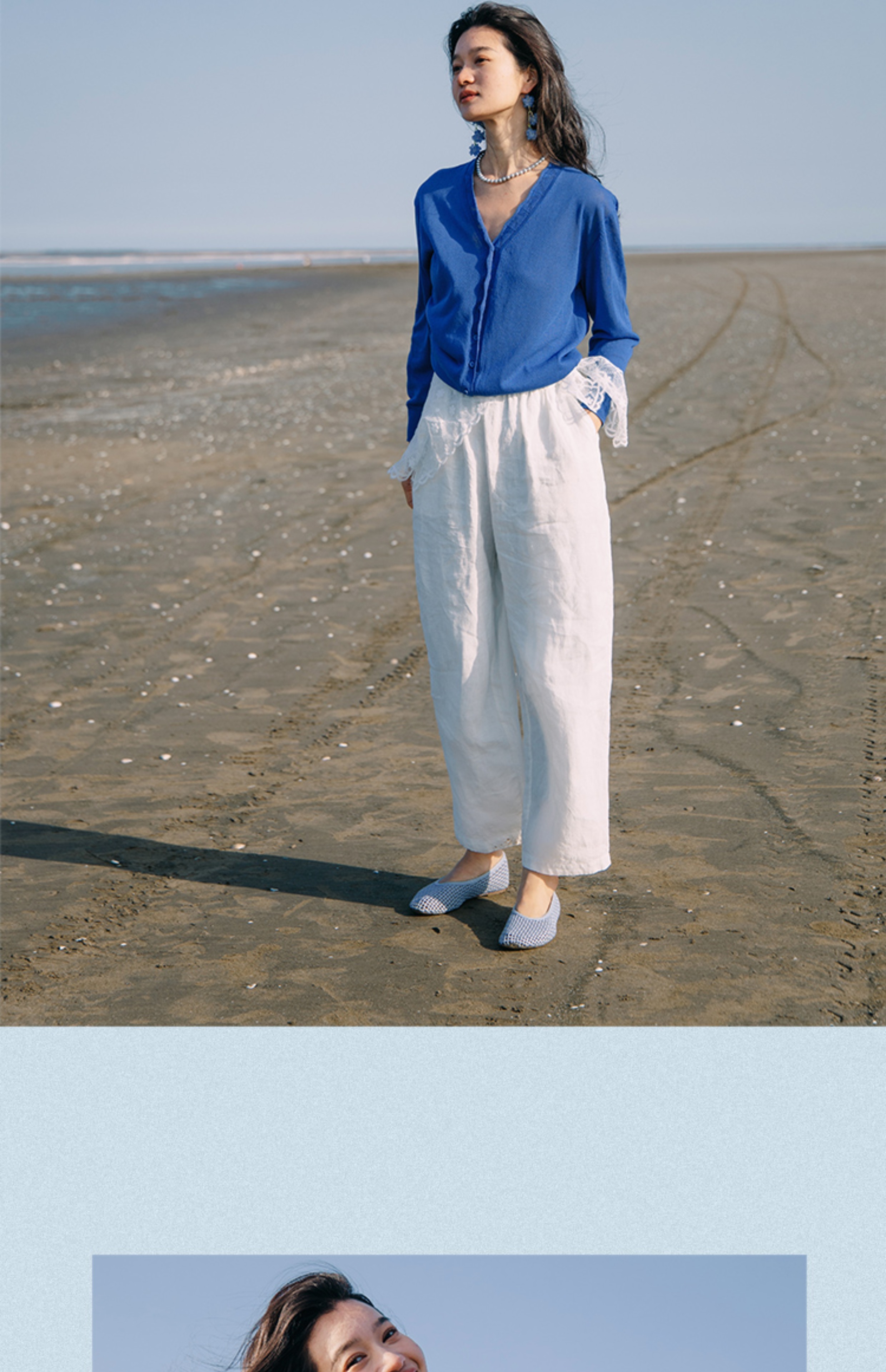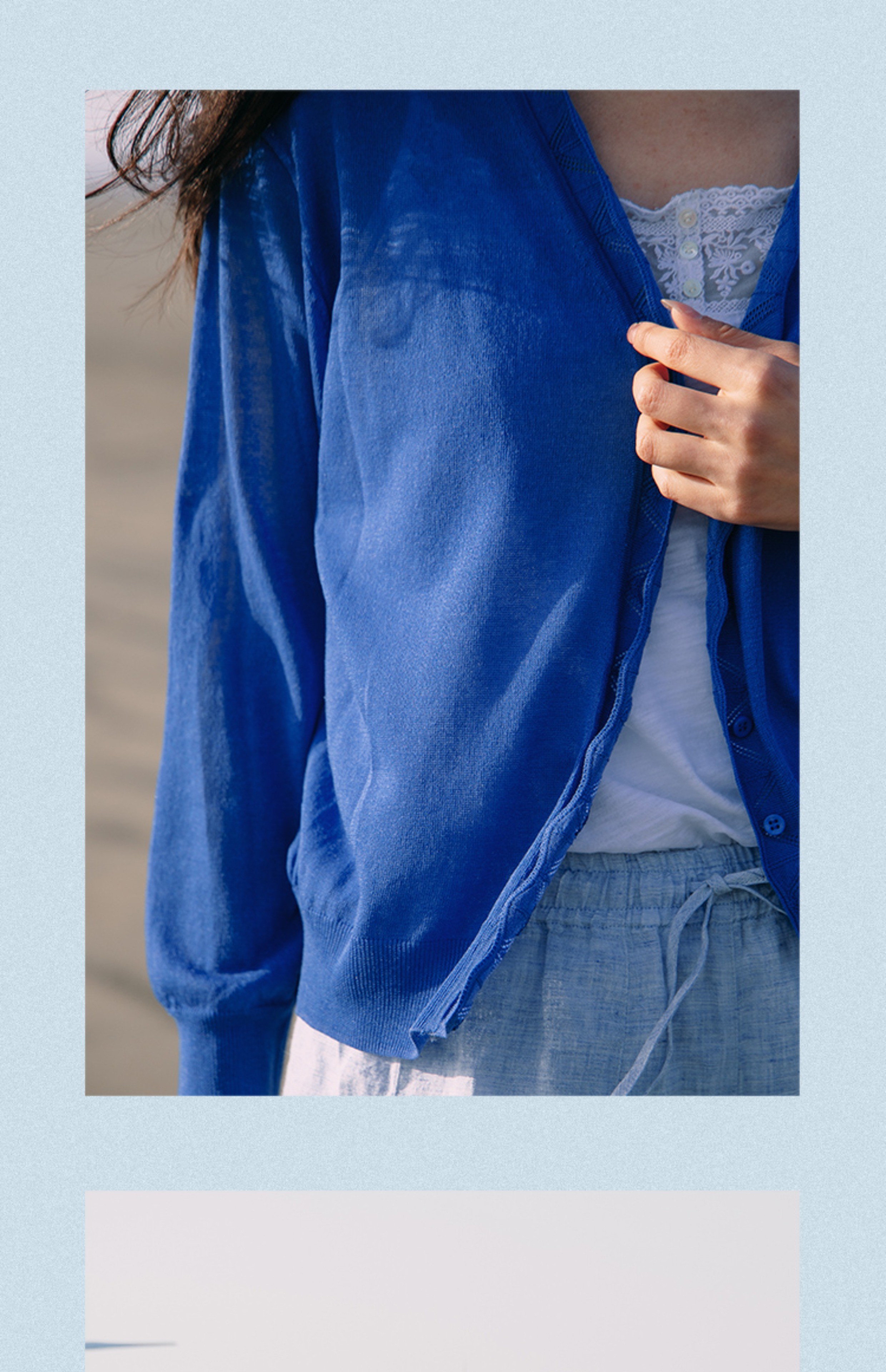 绽放289朵/【入蓝系列】复古文艺花边棉麻开襟针织外套防晒开衫女