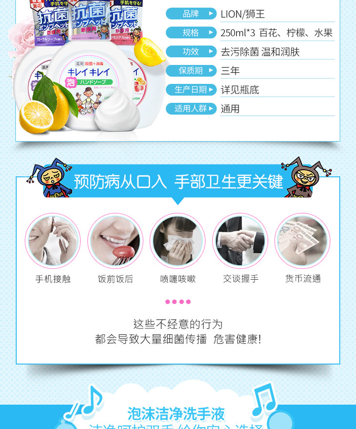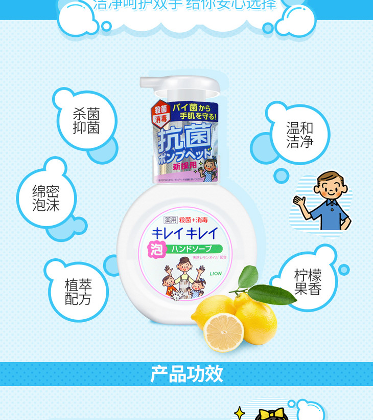 【杀菌清洁必备】新包装!狮王泡泡洗手液 全植物液体除菌消毒天然清洁 全家用250ml