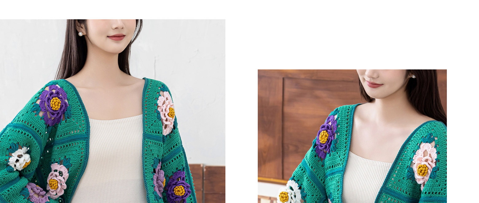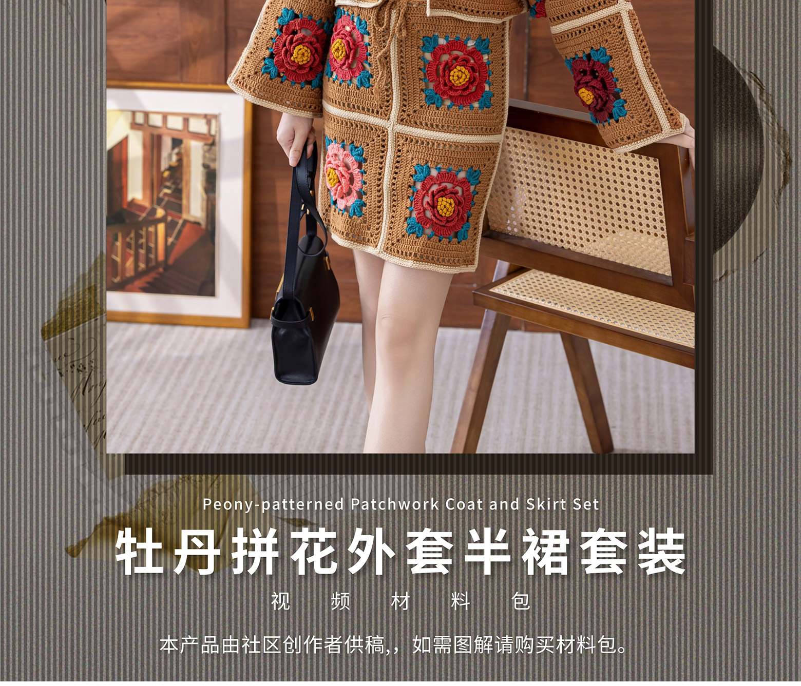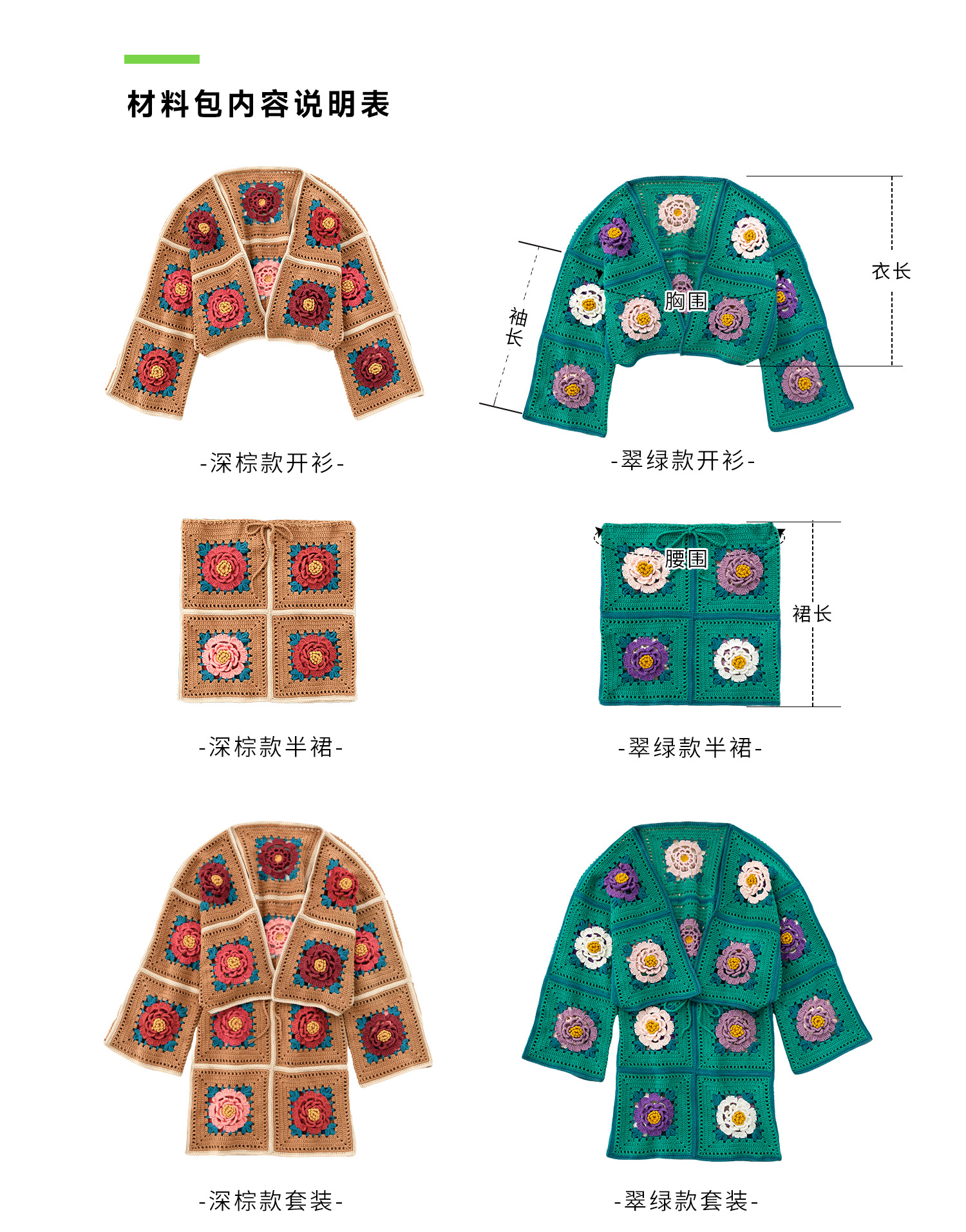 苏苏姐家牡丹拼花外套半裙套装手工DIY钩针4股棉毛线自制材料包
