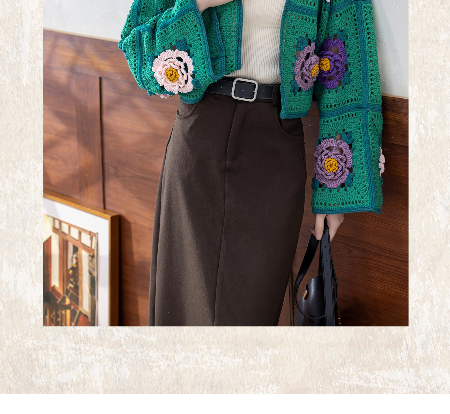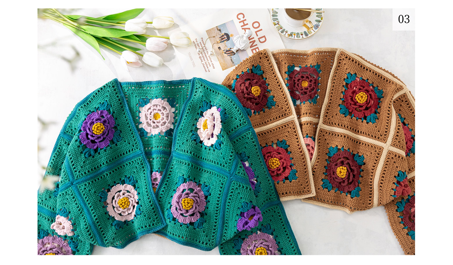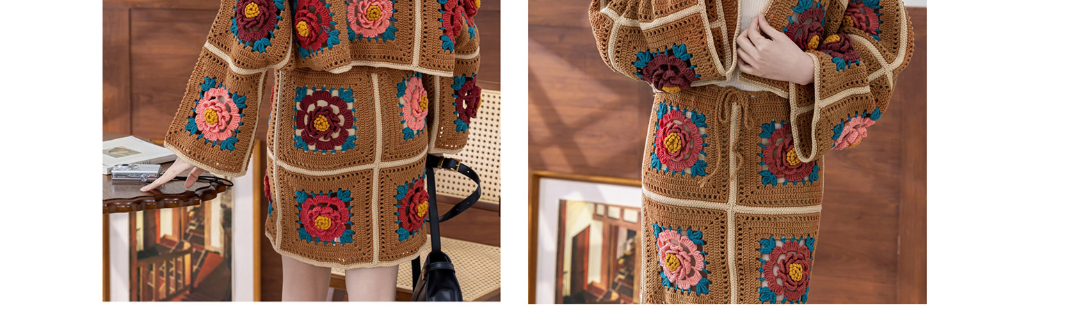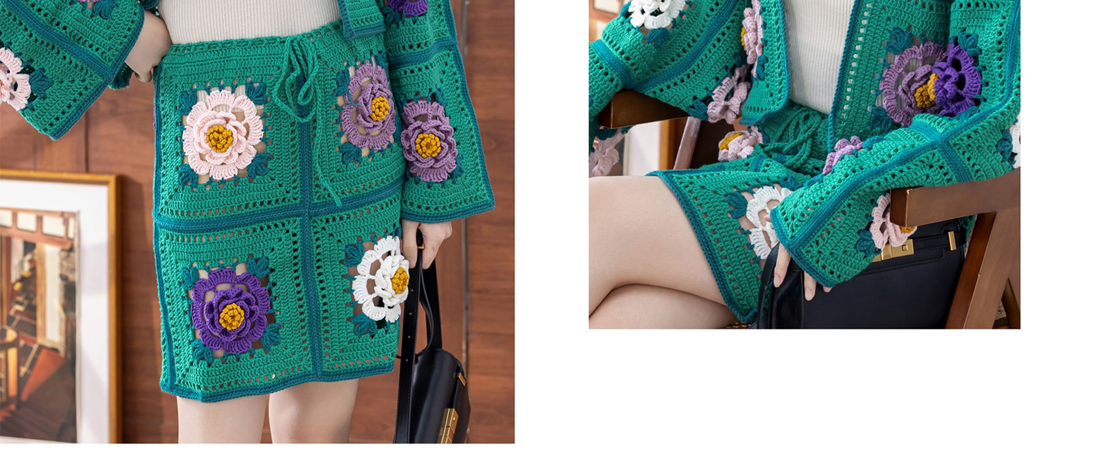 苏苏姐家牡丹拼花外套半裙套装手工DIY钩针4股棉毛线自制材料包