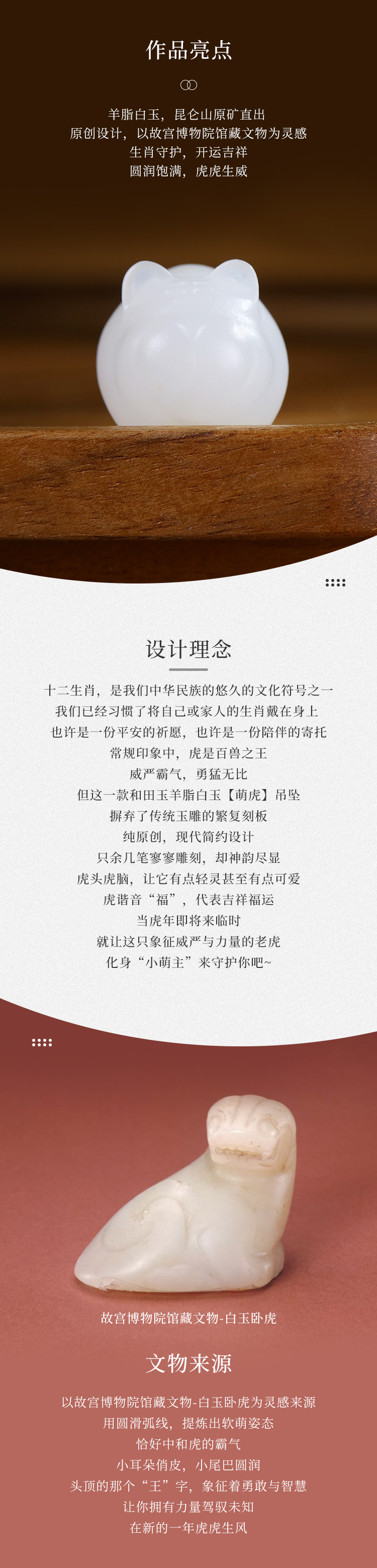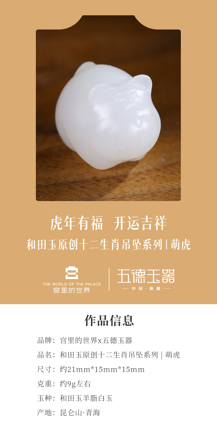 【宫里生肖吊坠】 羊脂白玉吊坠 萌虎