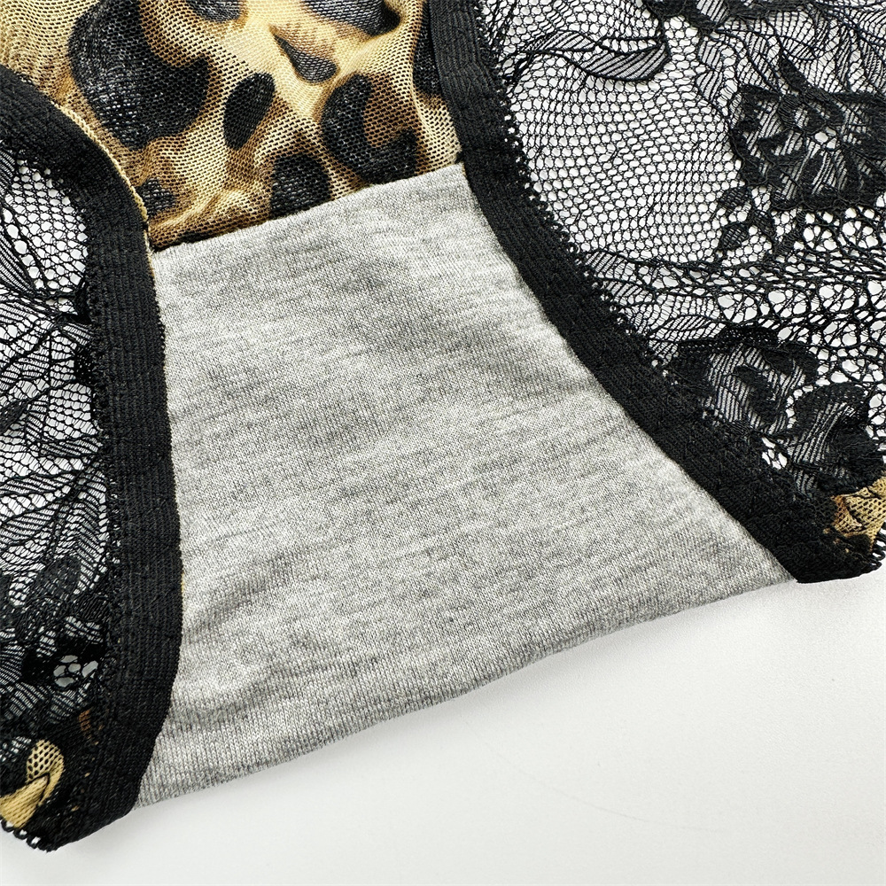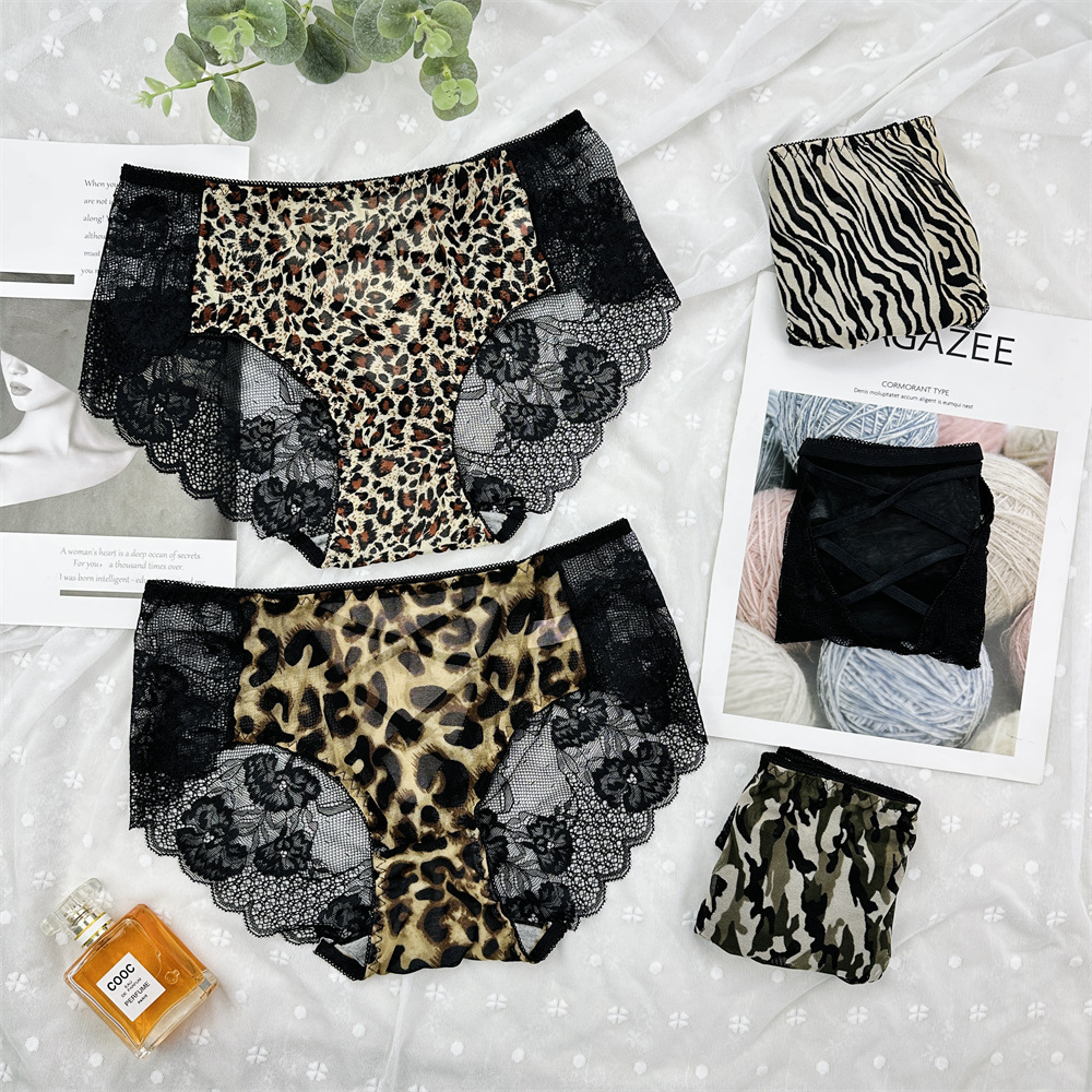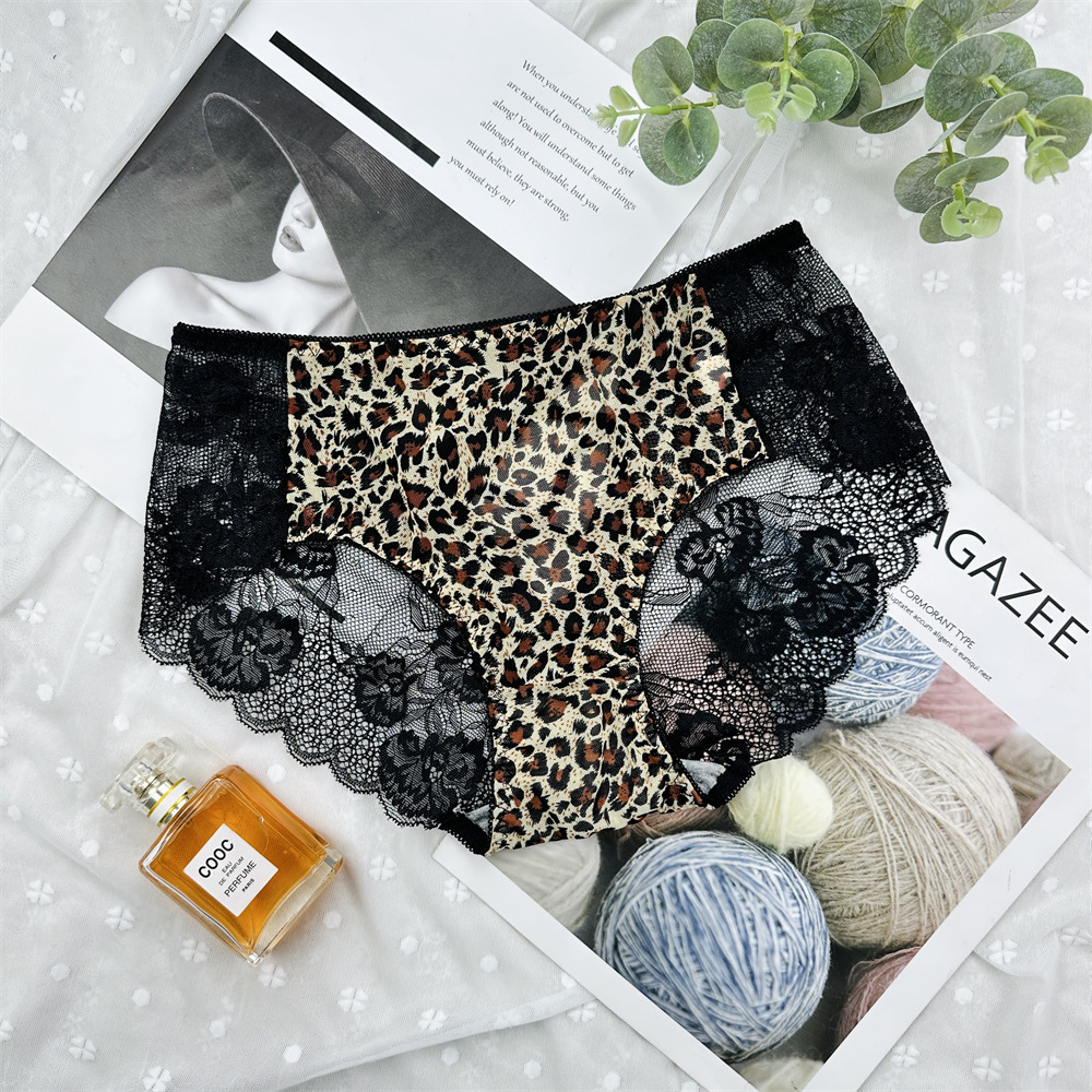 【5条超值!御姐范豹纹蕾丝内裤】亲肤,轻柔,透气,魅惑撩人!女士细带交叉镂空高弹高腰裤子
