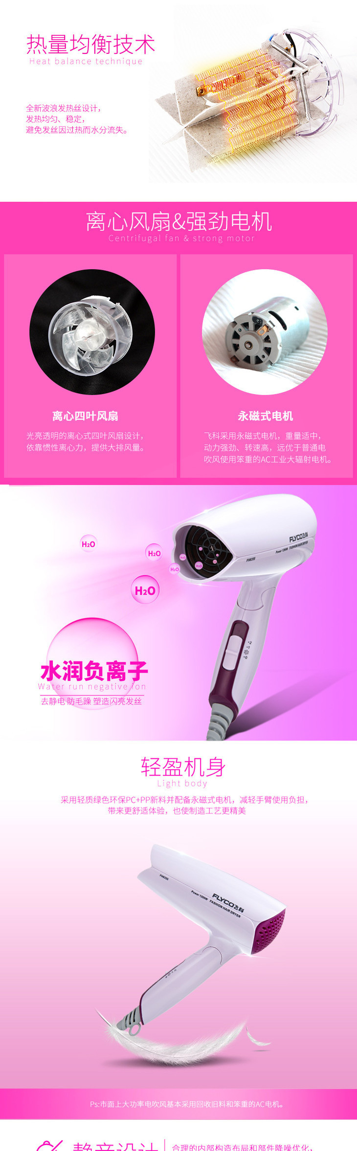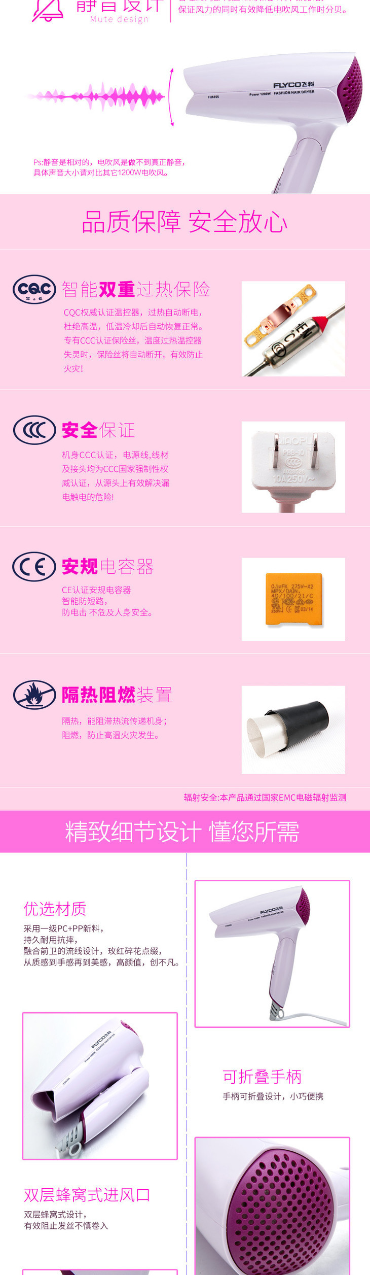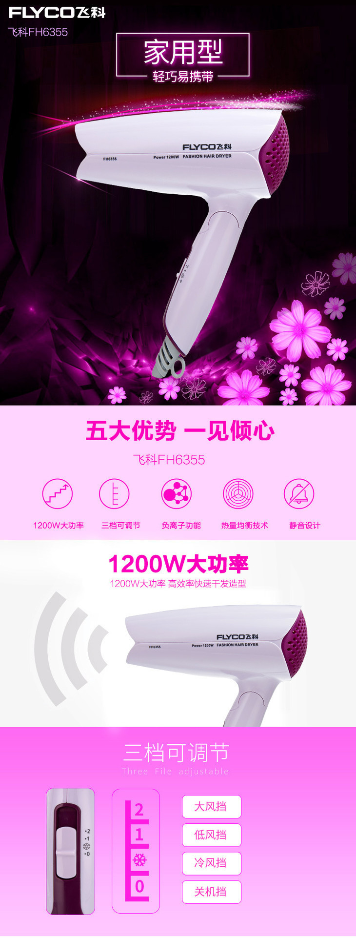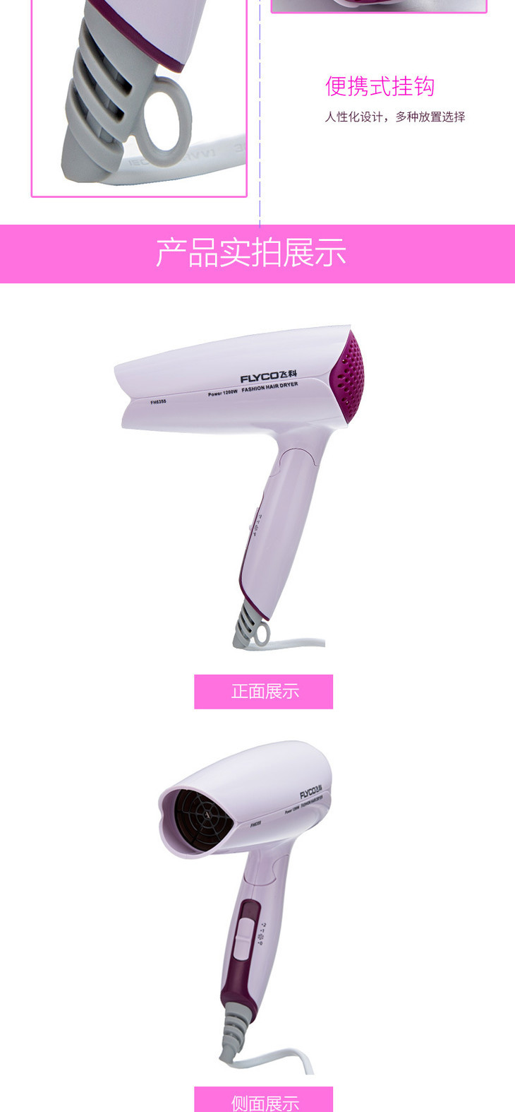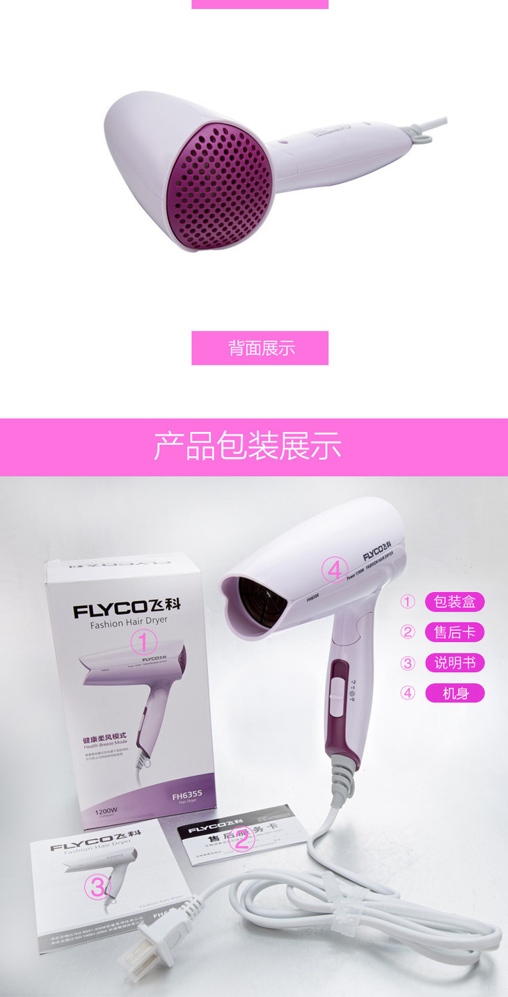 【家用电器】Flyco/飞科飞科FH6355可折叠式吹风筒冷热风学生宿舍500W电吹风