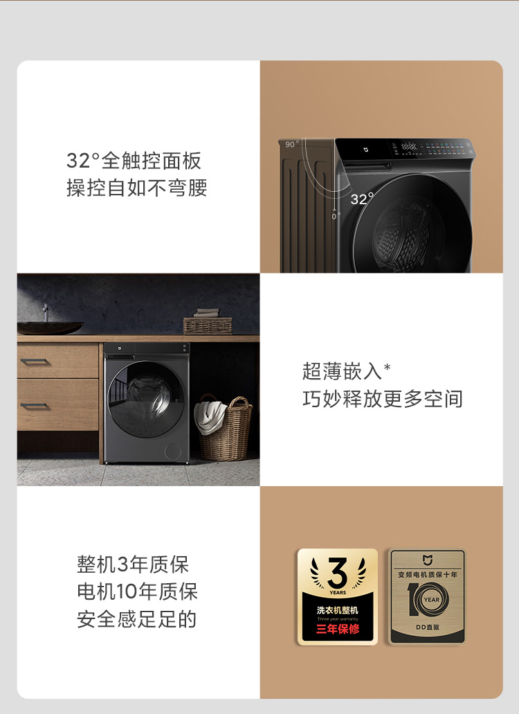【小米热销】米家小米出品滚筒洗衣机全自动 10kg尊享版洗烘一体 直驱电机节能低噪双路智能投放炫彩触控屏 XHQG100MJ203