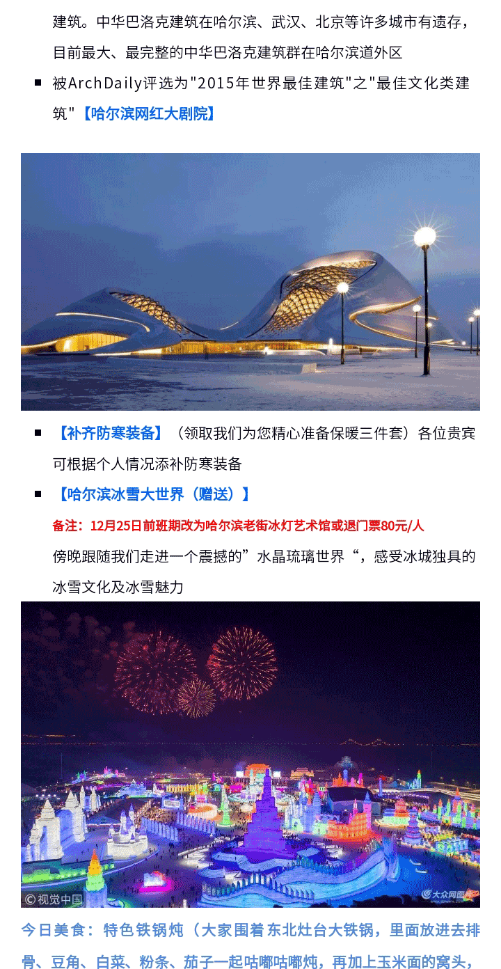 哈尔滨冰雪大世界(备注:12月25日前班期为哈尔滨老街冰灯艺术馆或退门票80元/人)