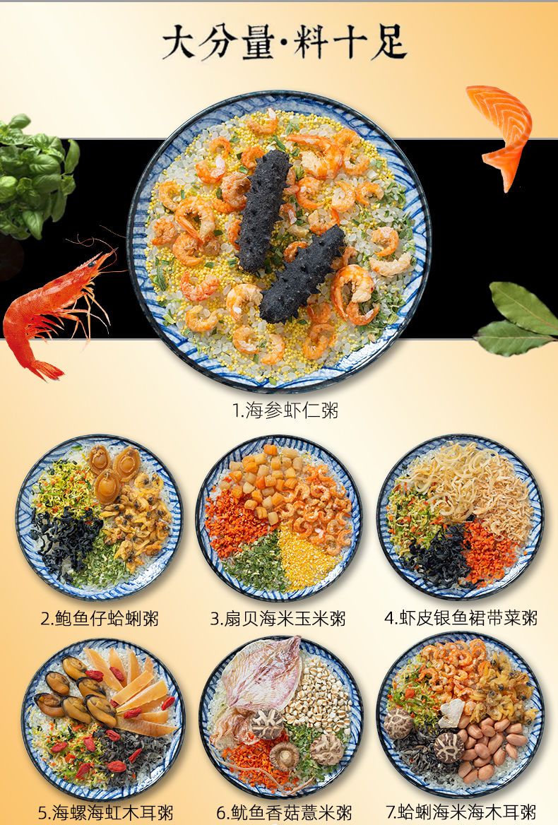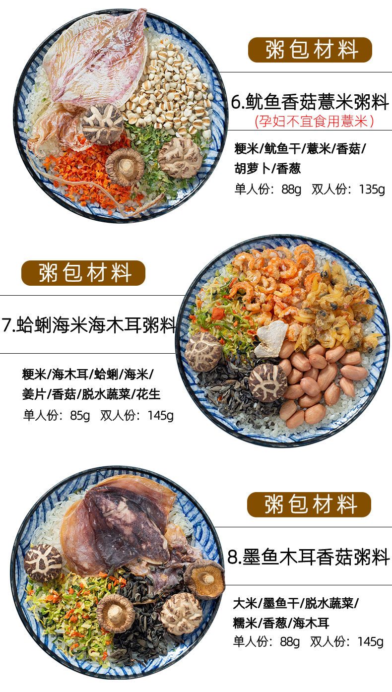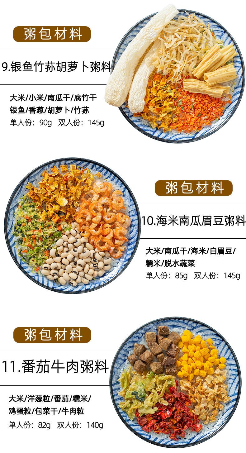 【48小时发货】海鲜粥15款不重样儿童早餐幼干货食材料包月子杂粮粥送宝宝营养表