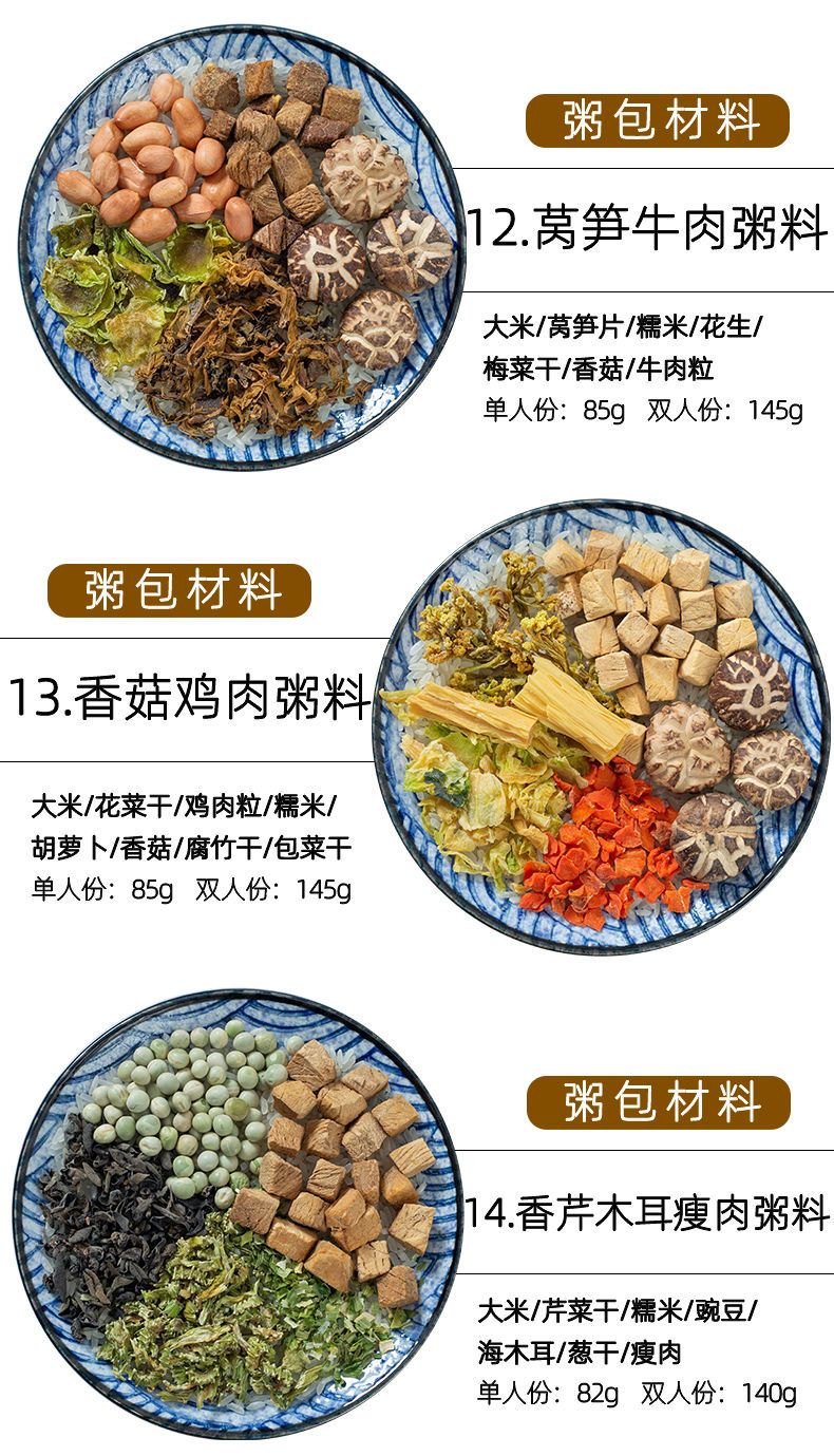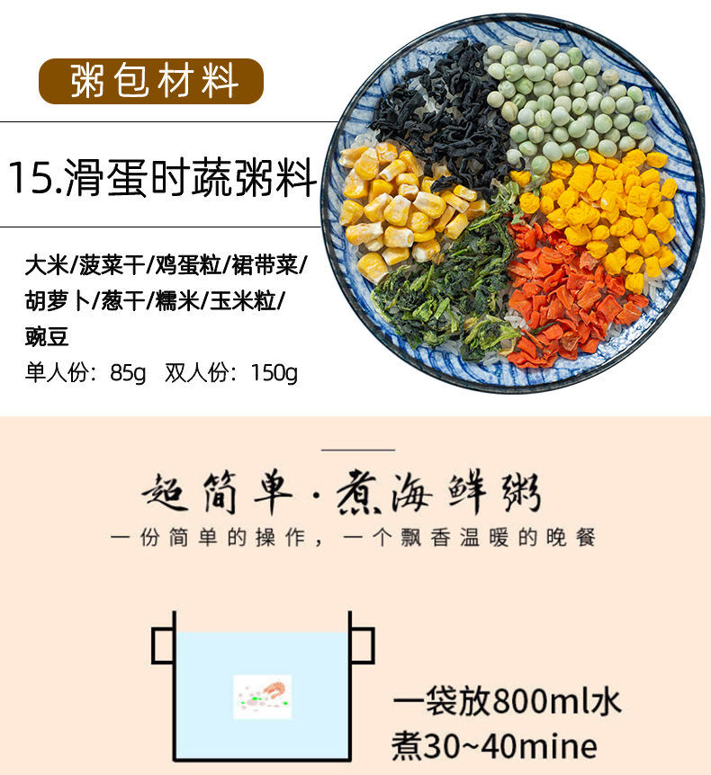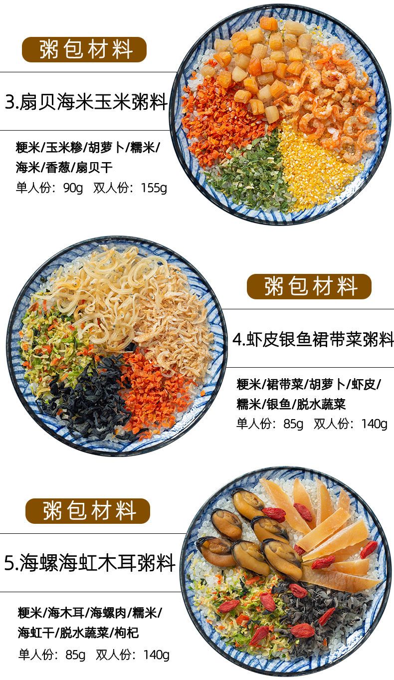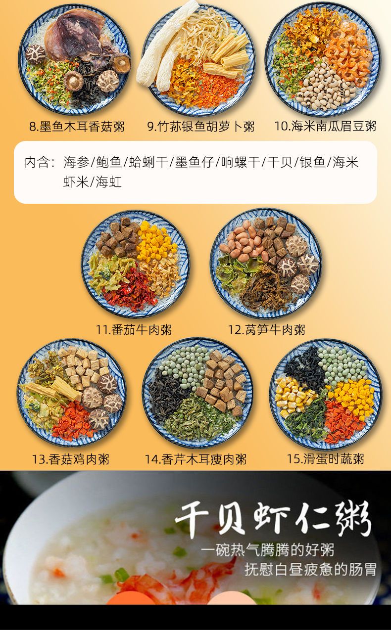 【48小时发货】海鲜粥15款不重样儿童早餐幼干货食材料包月子杂粮粥送宝宝营养表