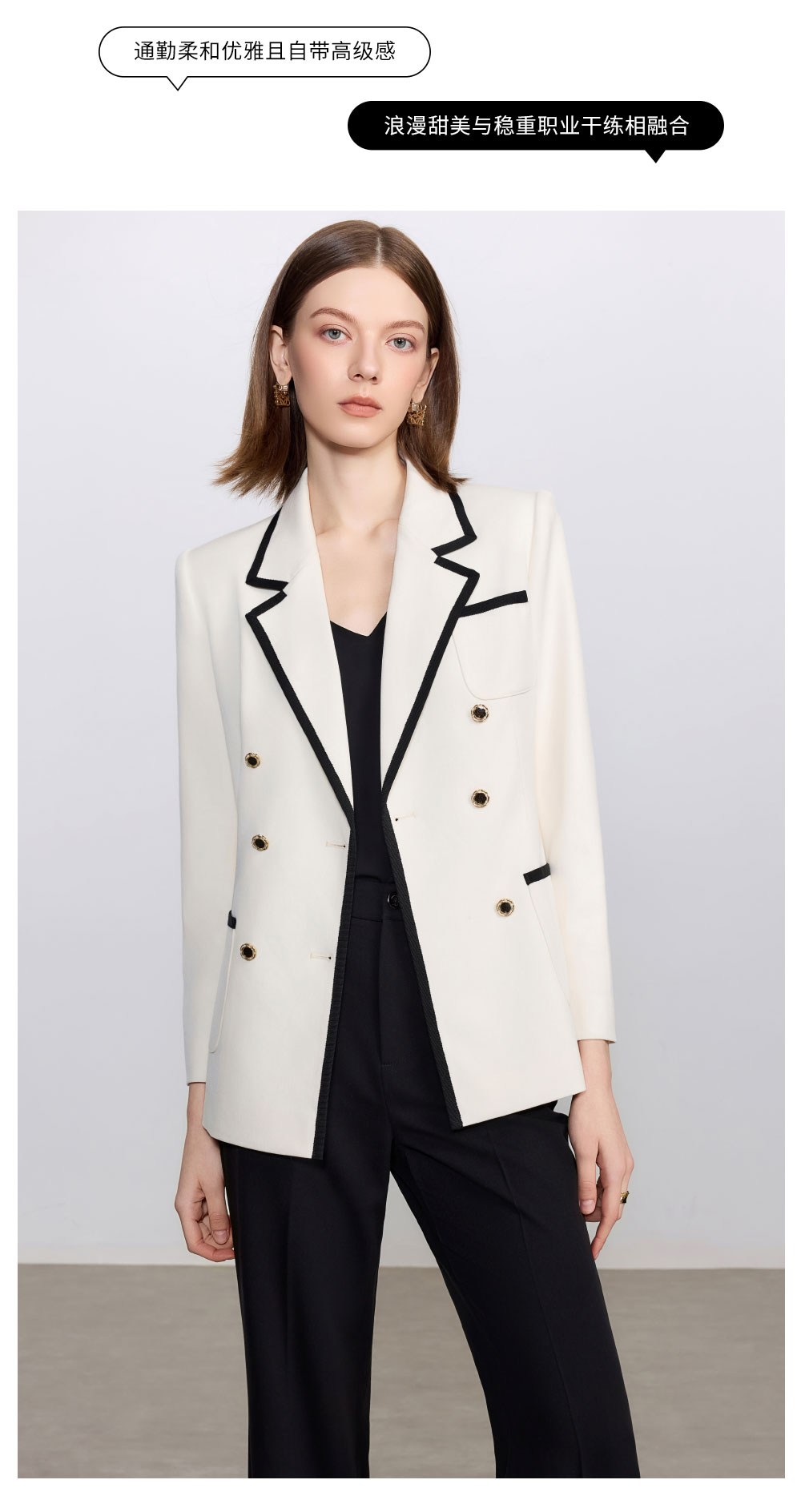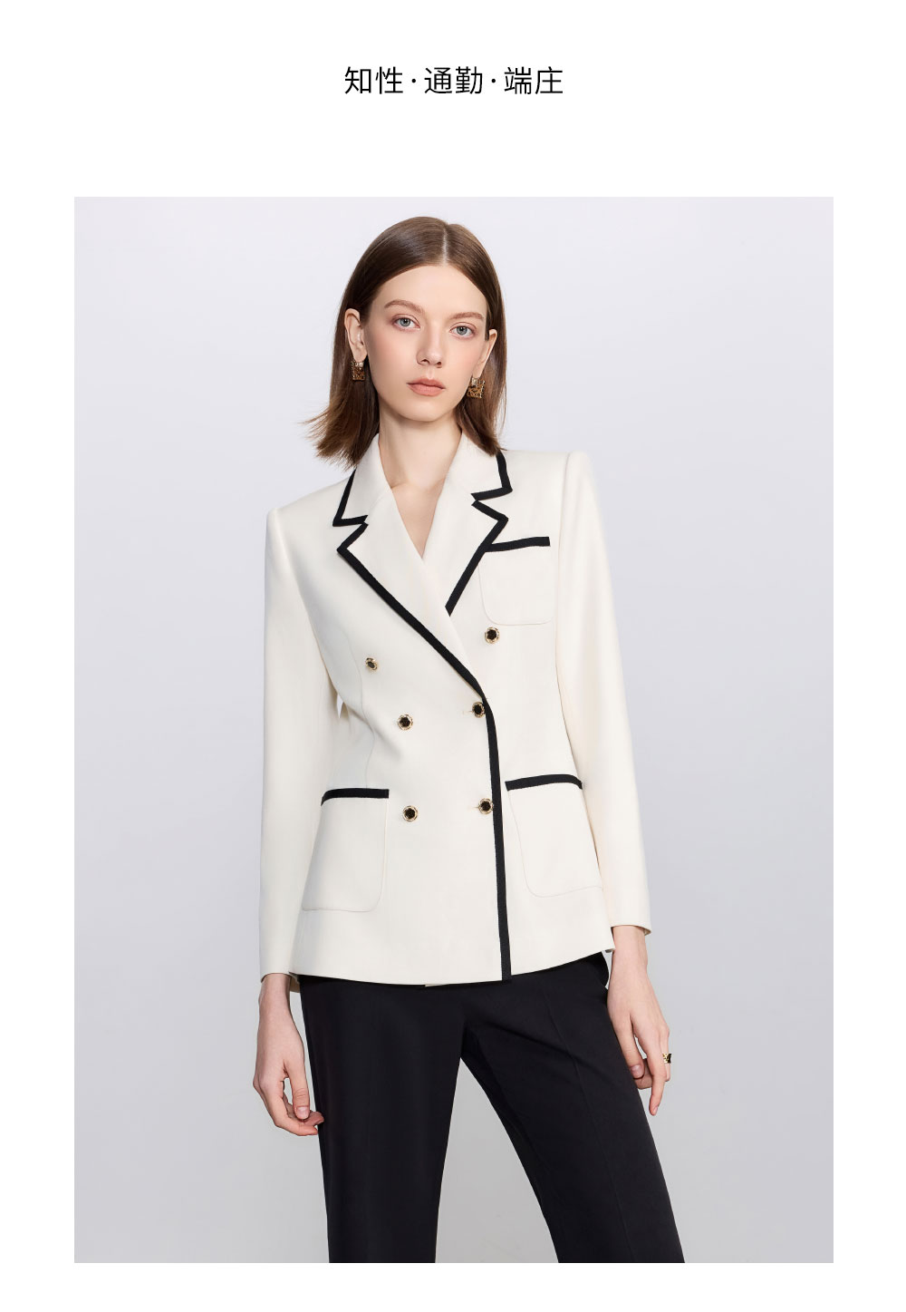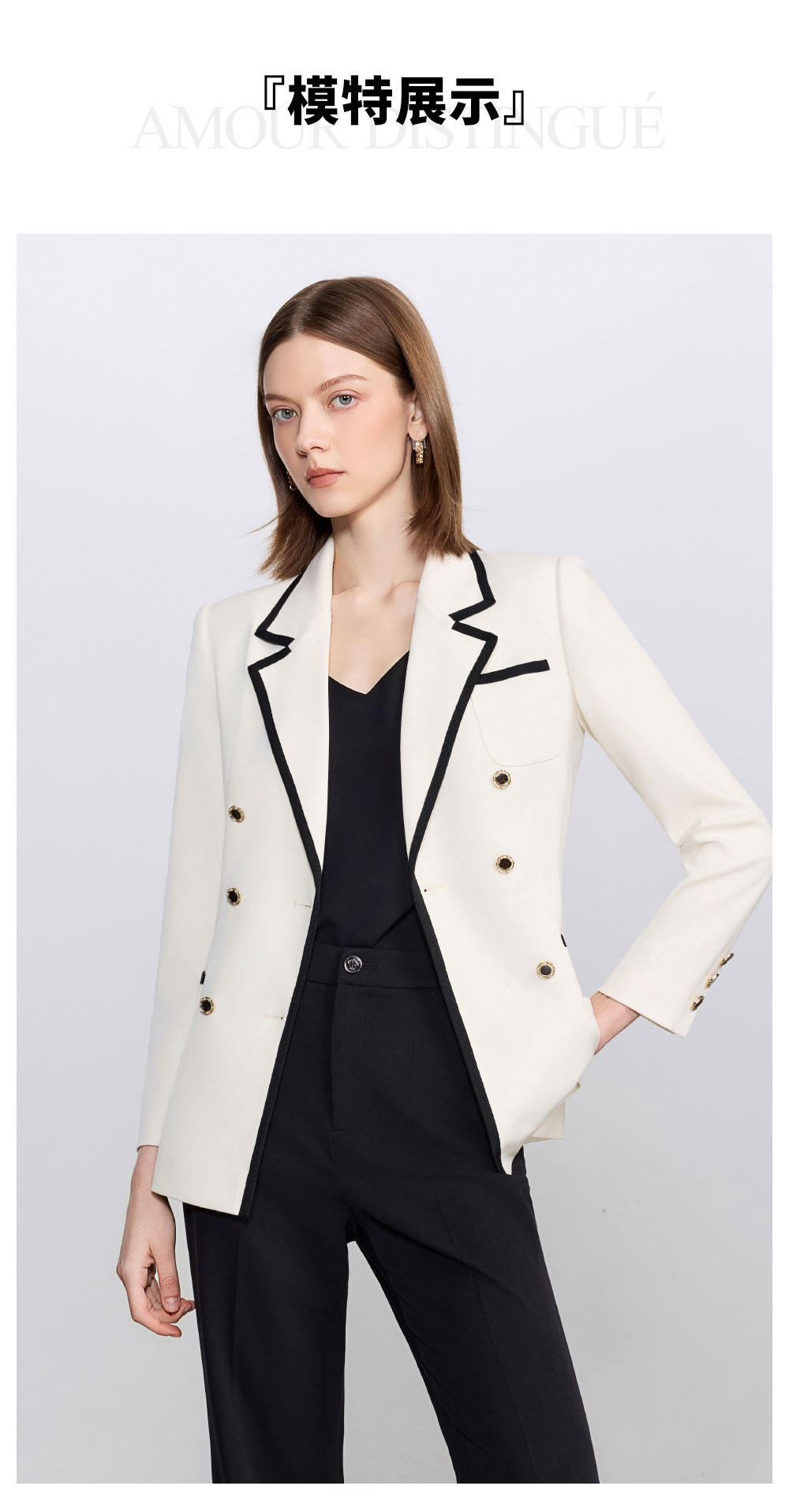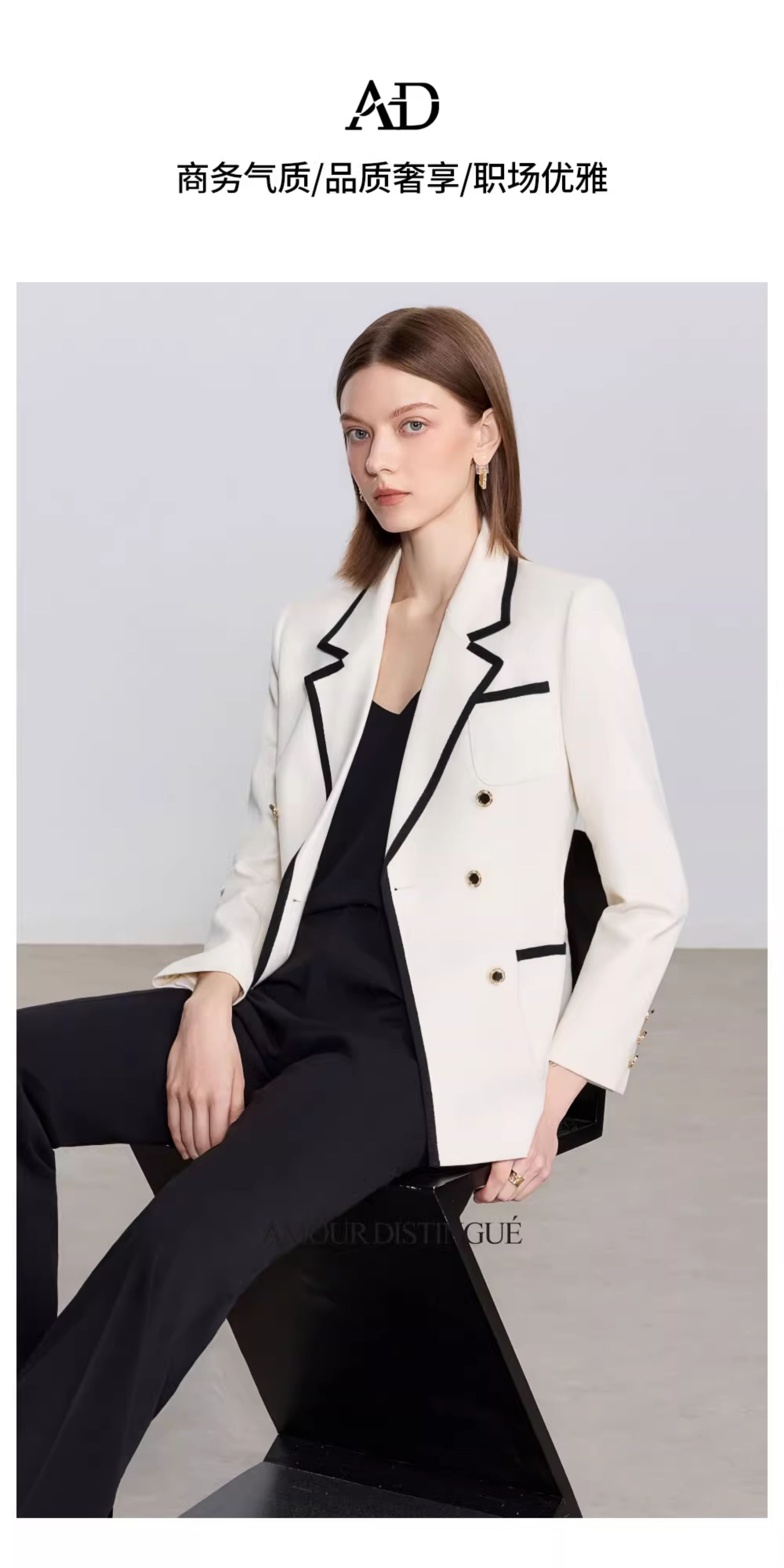 AD双排扣翻领西装外套女2025新款春秋高级感气质撞色名媛范西服