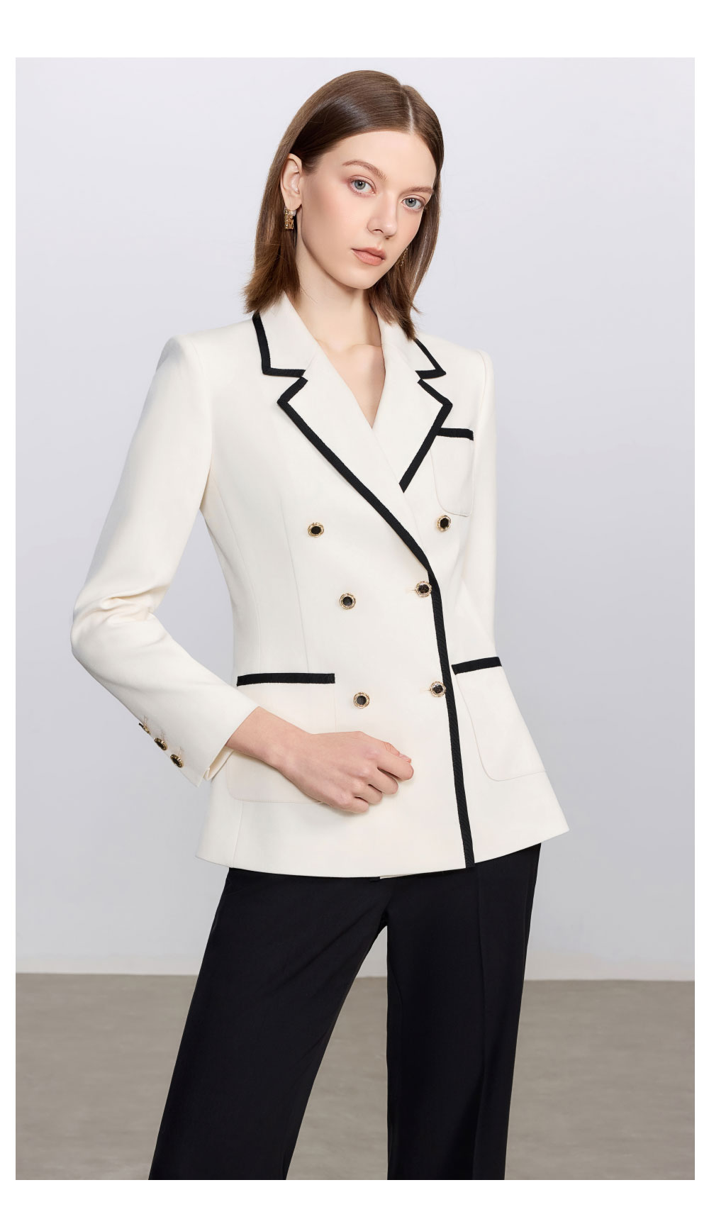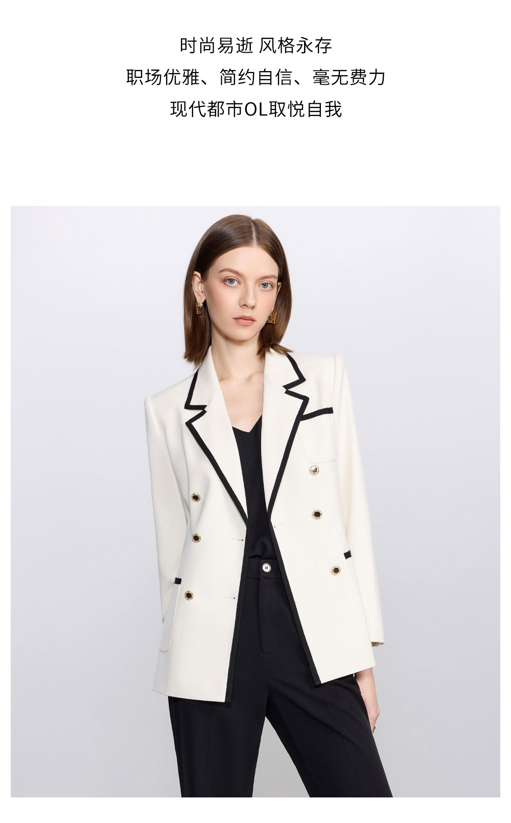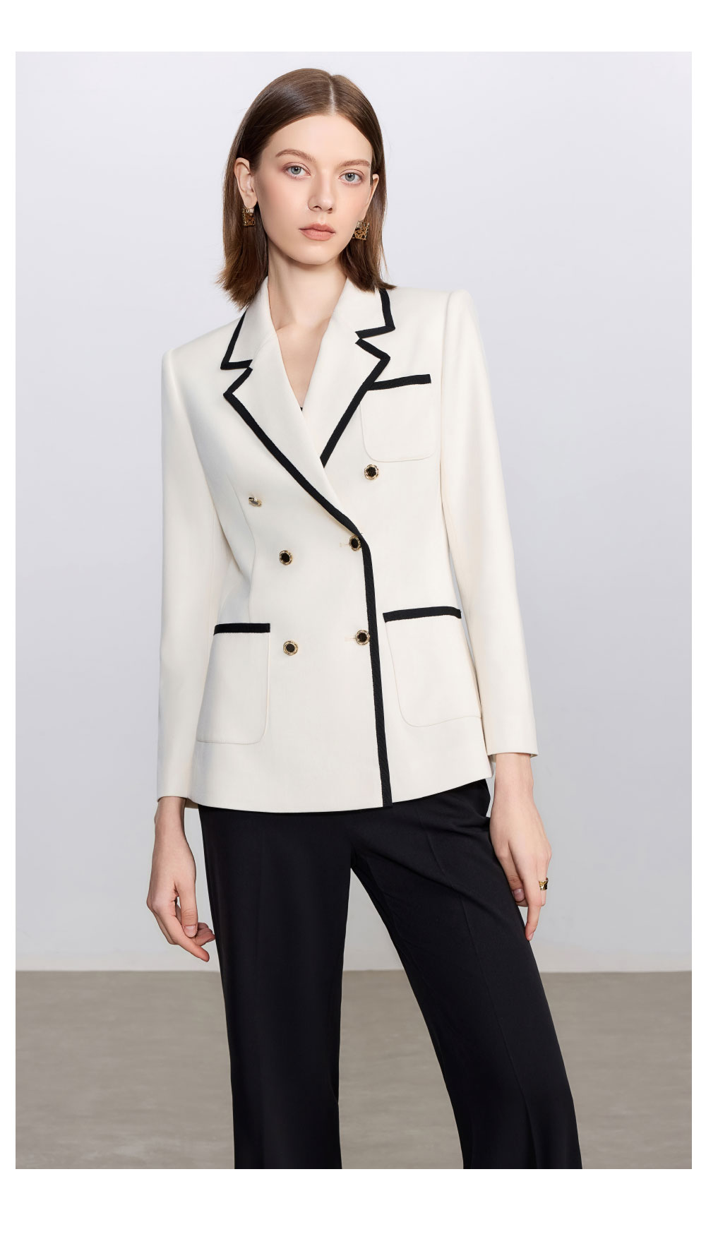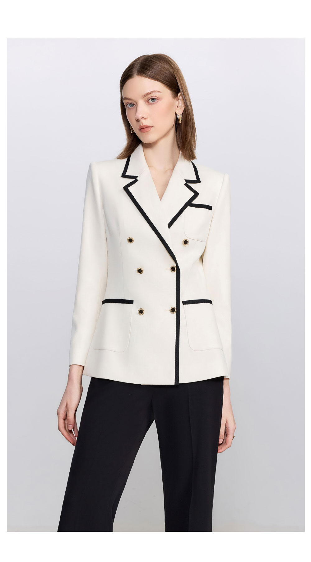 AD双排扣翻领西装外套女2025新款春秋高级感气质撞色名媛范西服