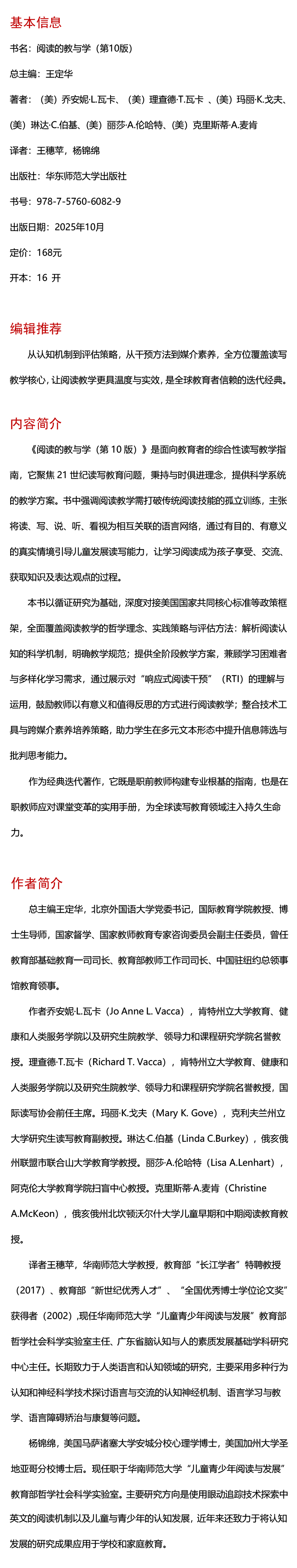 阅读的教与学 第10版 教育治理与领导力丛书 读写教学指南