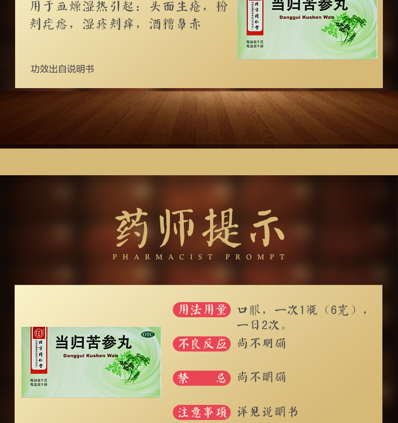 同仁堂 当归苦参丸6瓶/盒 头面生疮 粉刺疙瘩 湿疹刺痒 酒糟鼻赤