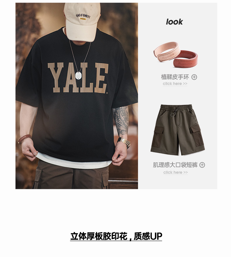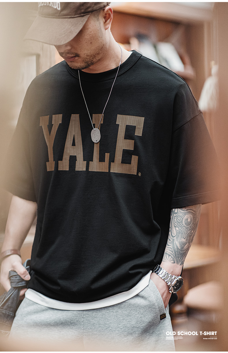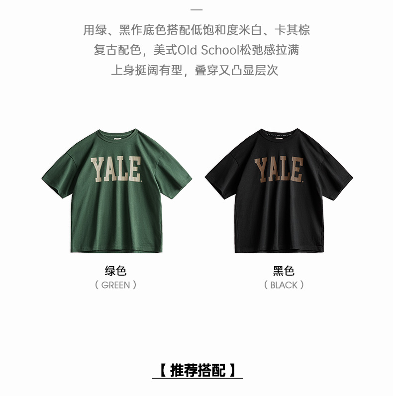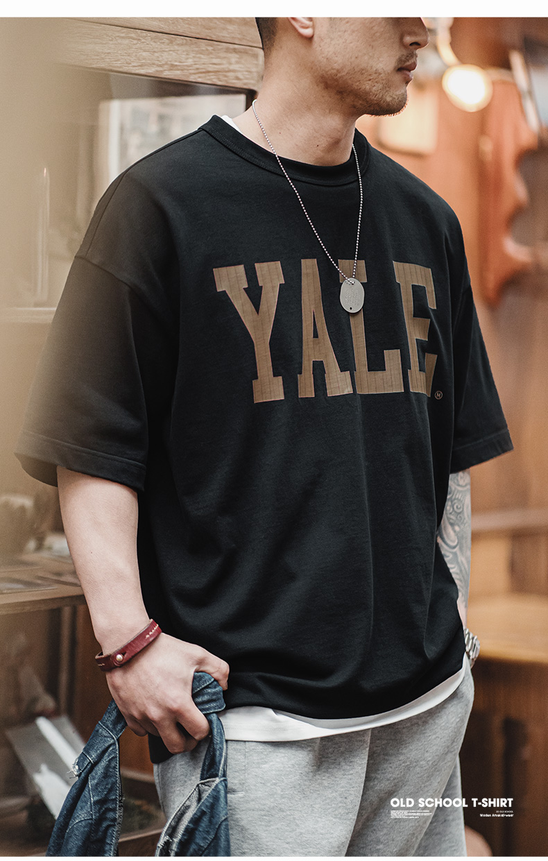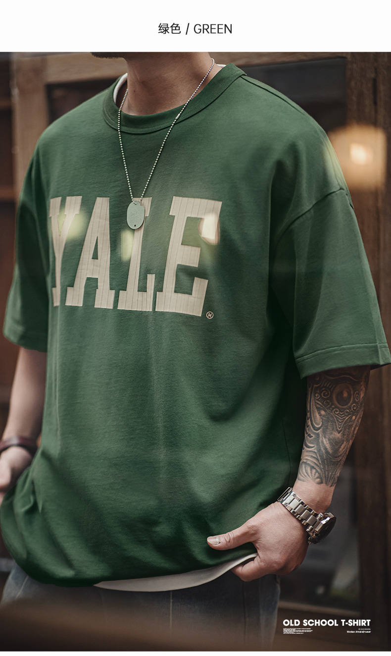 工装优选 美式撞色字母印花T恤学院风耶鲁大学纯棉短袖体恤男夏季