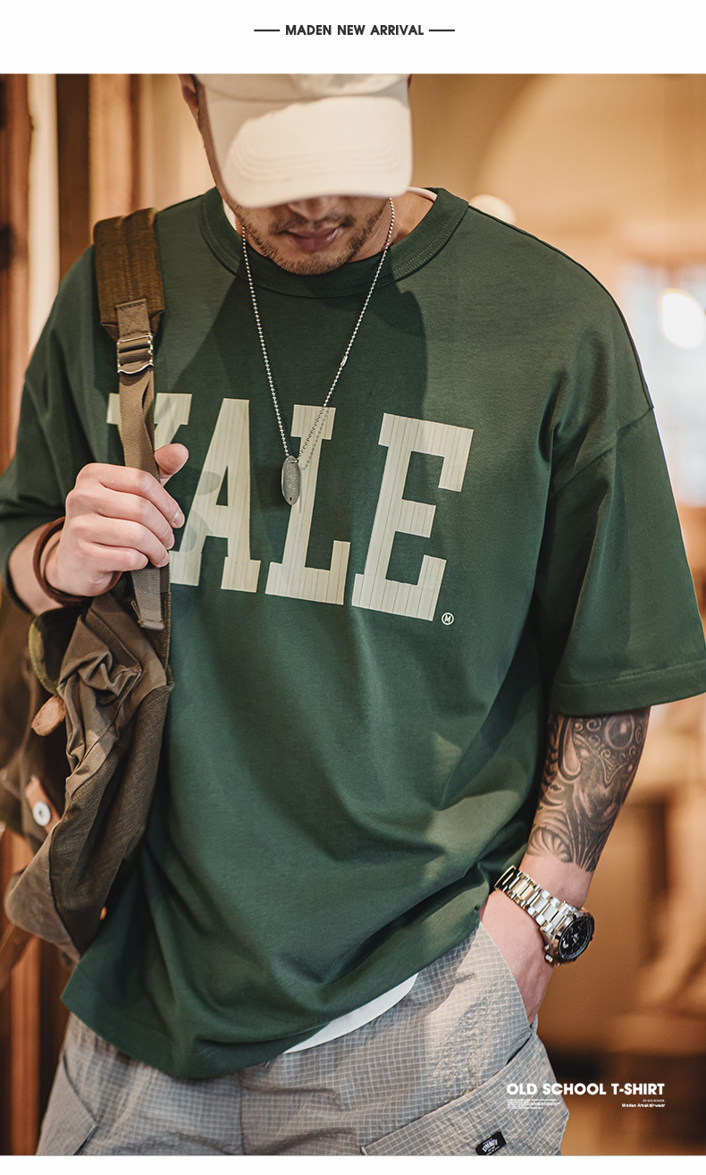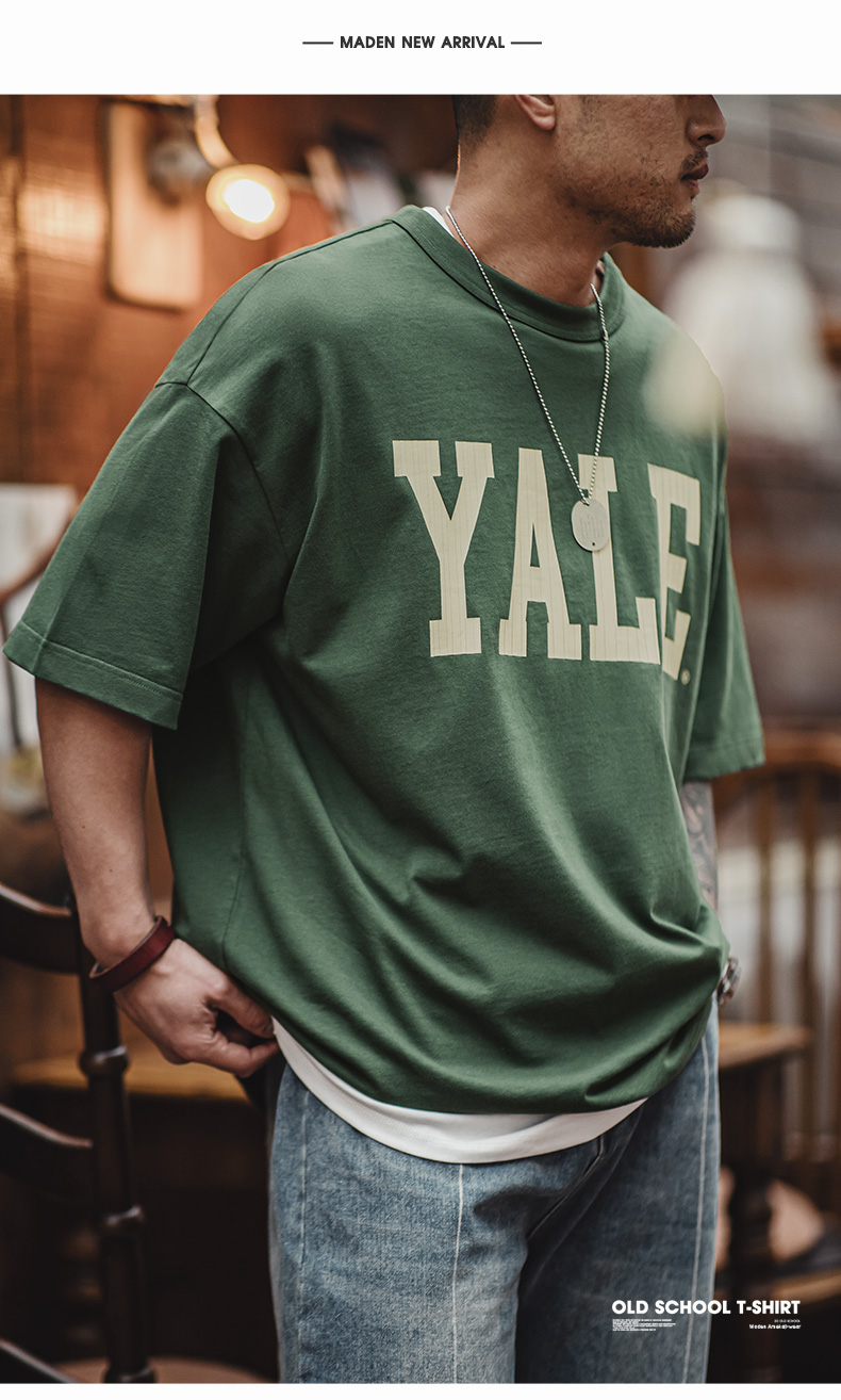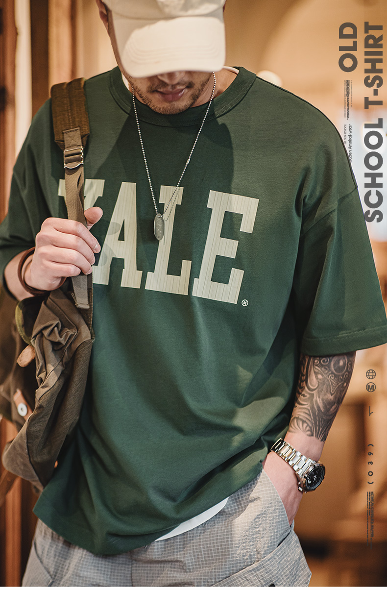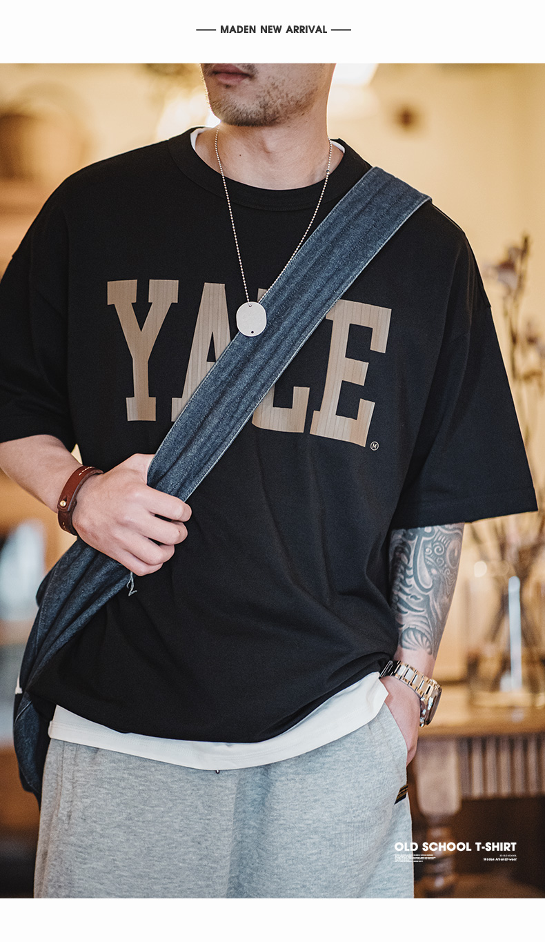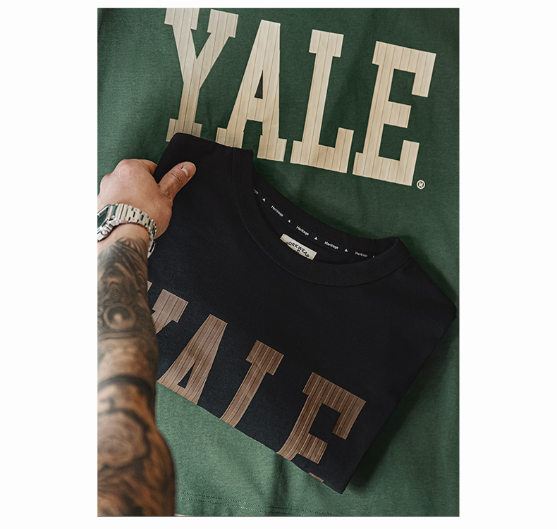 工装优选 美式撞色字母印花T恤学院风耶鲁大学纯棉短袖体恤男夏季