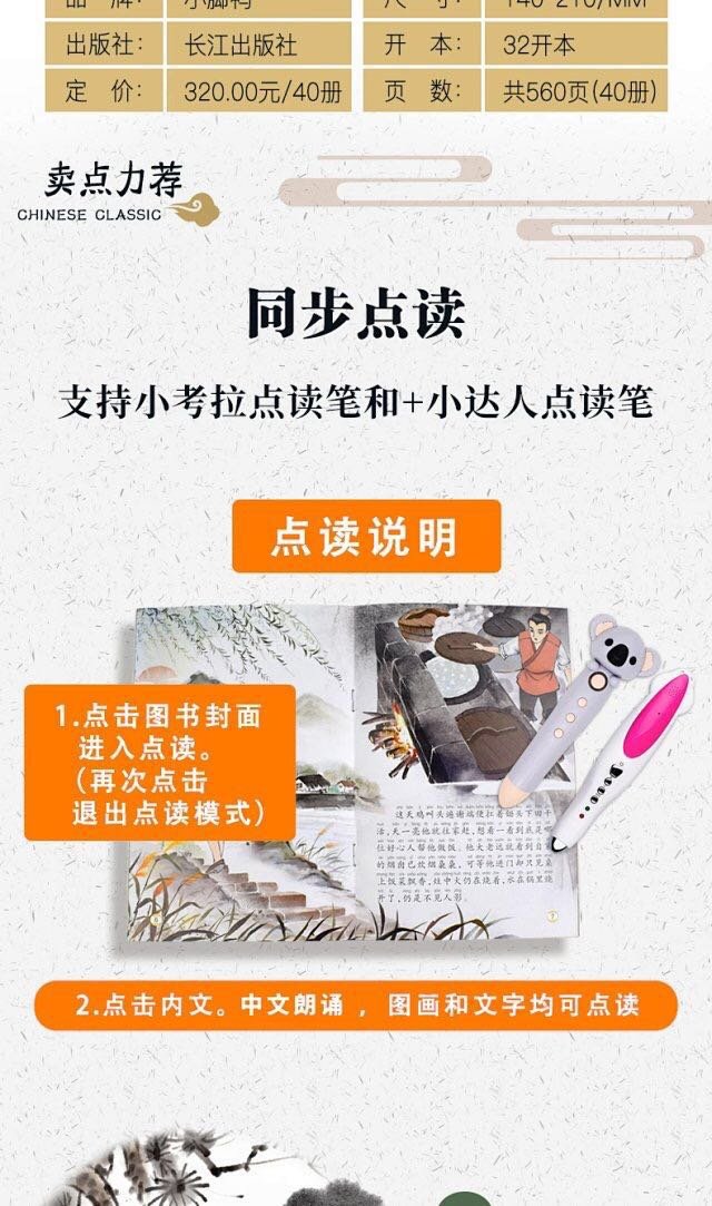 《小脚鸭中国经典故事40册》注音彩绘,点读版支持小达人考拉点读笔点读 3--7岁彩图注音版童话寓言故事绘本