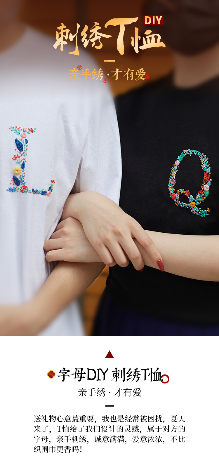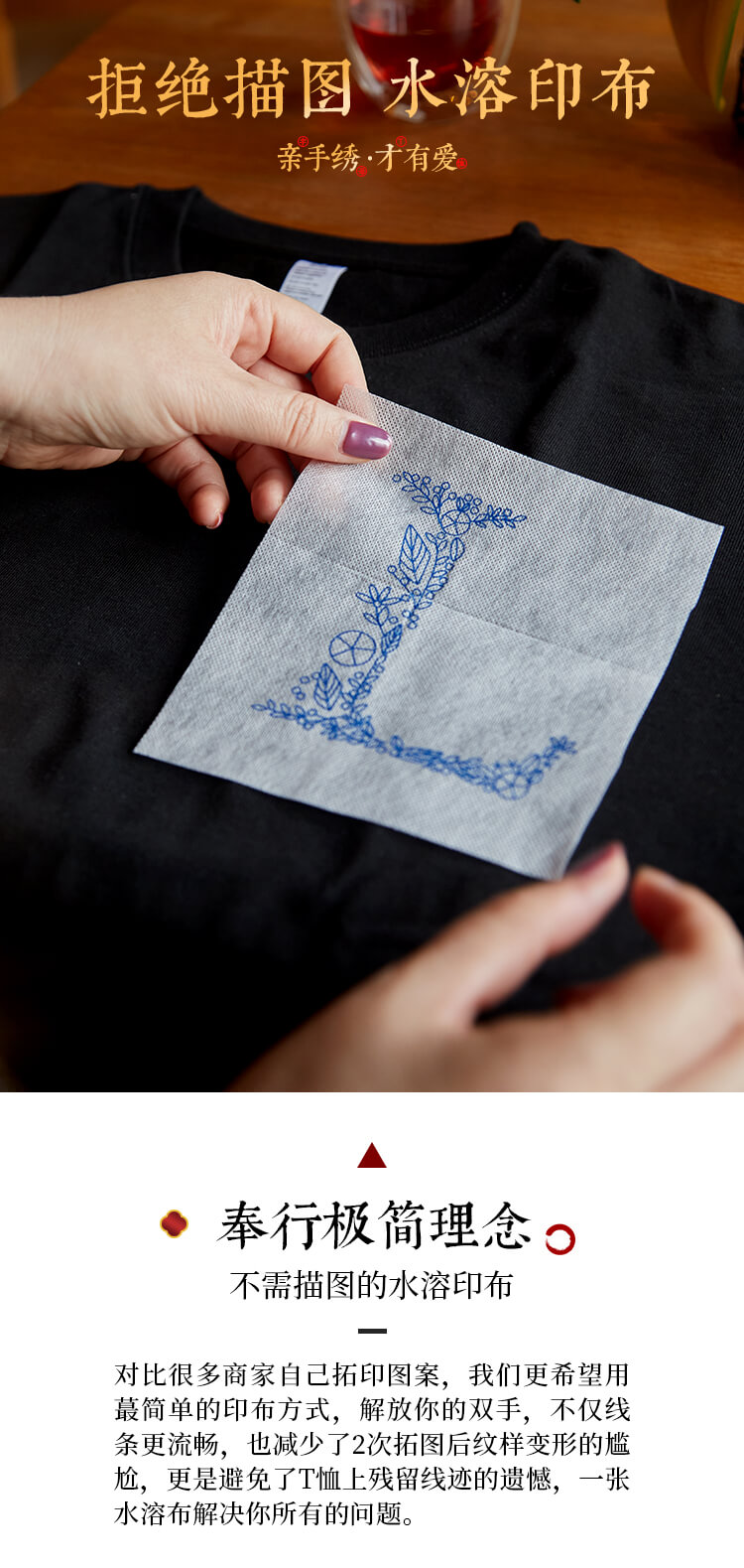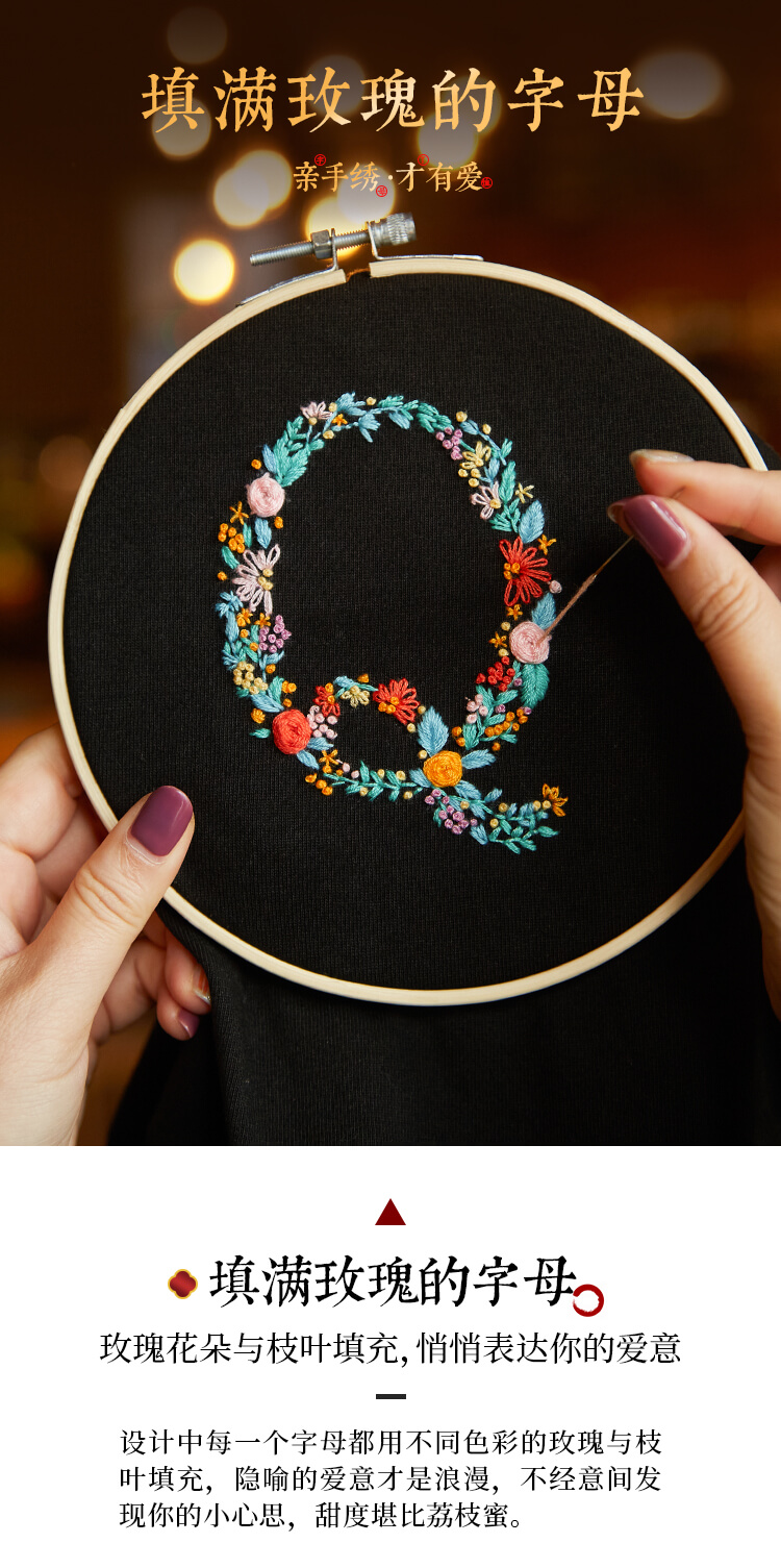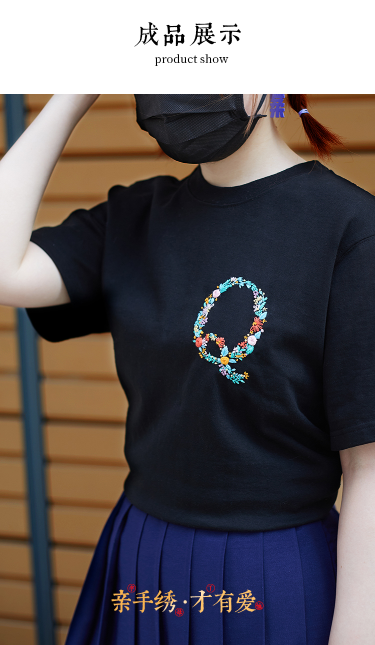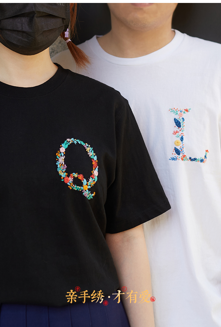 『繁花字母材料包』水溶布印图案方便刺绣 T恤短袖衣服diy